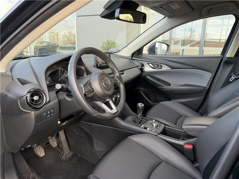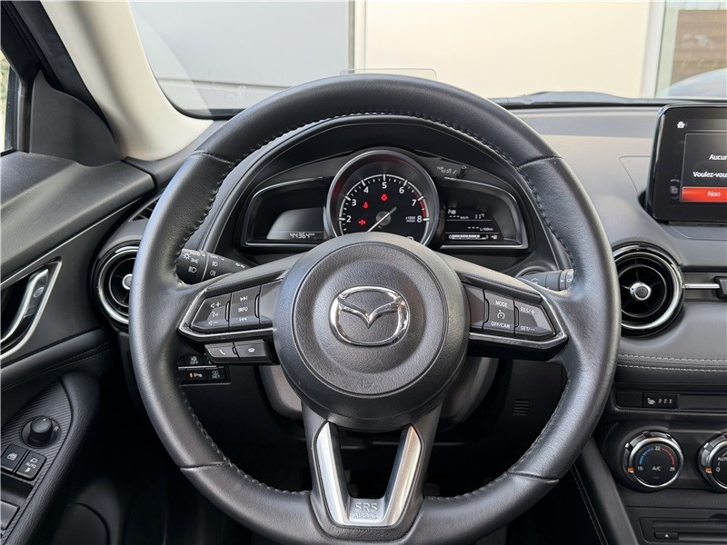 Accoudoirs AV et AR et repose-genoux rouge foncé avec surpiqûres / Aide au freinage intelligent en mode urbain (SCBS avancé) avec détection des piétons / Antenne type "Requin" / Boîte de vitesses manuelle 6 rapport / Cache-bagages / Casquette de tableau de bord spécifique effet cuir avec surpiqûres / Gestion automatique des feux de route (HBCS) / Ordinateur de bord avec alarme de vitesse / Ouverture/fermeture des portes à télécommande / Ouverture/fermeture intelligente des portes / Pare-soleil avec miroir de courtoisie côté conducteur et passager et range-ticket côté conducteur / Reconnaissance active d'obstacles en marche AR (RCTA) / Sièges AV avec réglage manuel de la longueur et inclinaison / Système audio avec radio AM/FM, lecteur CD/MP3 6HP, prises AUX et 2 ports USB / Système Bluetooth avec commandes au volant / Système "G-Vectoring Control" (GVC) / Système MZD Connect avec écran couleur 7", interface à commandes multiples HMI et système de / Vitres électriques AV et AR avec commande à impulsion pour la vitre conducteur / Volant et pommeau de levier gainés de cuir
