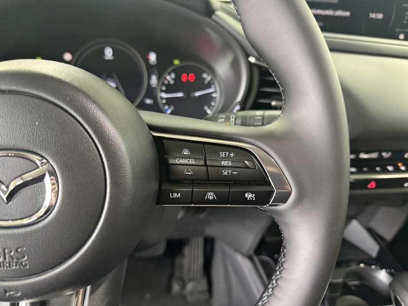Pack Driver Assistance - Aide au freinage intelligent avec détection des piétons et fonction de freinage en intersection en marche arrière (SBSR) - Reconnaissance active d?obstacles mobiles en marche avant (FCTA) - Système d?alerte du conducteur (DAA) avec caméra - Système d?aide au trafic (CTS) - Caméra 360° - Système audio Bose® à 12 haut-parleurs (style « Black Gloss ») / Caméra 360° / Système d'aide au trafic (CTS) / Rétroviseur extérieur côté conducteur photochromatique / Système d'alerte du conducteur (DAA) avec caméra / Système de reconnaissance active d'obstacles mobiles en marche AV (FCTA) / Système audio Bose à 12 HP (style Black Gloss) / Aide au freinage intelligent avec détection des piétons et fonction de freinage en intersection en marche AR (SBSR) / Aide au freinage intelligent avec reconnaissance des piétons (SBS) / Apple CarPlay et Android Auto sans fil (visualisation de la navigation sur l'affichage tête haute couleur) / Boîte automatique 6 rapports / Eclairage d'ambiance intérieur à LED / Gestion automatique des feux de route (HBC) / Jantes alliage 18 Silver (215/55/R18) / Phares AV à LED avec fonction antibrouillard intégrée et lave-phares / Rétroviseurs extérieurs couleur carrosserie / chauffants réglable électrique et à rabattage automatique / Volant et pommeau de levier de vitesses gainé de cuir / 2 ports USB Type C et 1 prise 12 V / 2 télécommandes / Affichage tête haute couleur (ADD) projeté / airbags AV et AR et airbag genou côté conducteur / Antenne intégrée à la lunette AR / Assistance vocale Alexa / Avertisseur de franchissement de ligne (LDWS) et système de maintien de trajectoire (LKA) / Becquet de toit noir / Ciel de pavillon gris / Clignotants Kodo Turn / Compteur numérique TFT 7'' / Contrôle de la traction (TCS) / Contrôle dynamique de stabilité (DSC) / Ecran central TFT couleur 10 / 25 / Frein à main électrique (EPB) avec fonction Autohold / Grille de calandre Black Gloss / Interface à commandes multiples (HMI) / Kit de réparation anti-crevaison / Limiteur de vitesse avec adaptation intelligente de la vitesse (ISA) couplé à la reconnaissance des des panneaux de signalisation (TSR) / Moulures inférieures de vitres chromées / Ordinateur de bord avec alarme de vitesse / Ouverture/fermeture intelligente des portes / Pare-soleil avec miroir de courtoisie et lumière côtés conducteur et passager + rangement côté conducteur / Porte-gobelets sans couvercle / Rétroviseur intérieur photochromatique (avec cadre) / Services connectés MyMazda avec fonction allumage des feux / Signature de calandre chromée / Siège conducteur réglable manuellement 8 voies / Siège passager réglable manuellement 6 voies / Smart Cargo System / Système Auto Door Locking (ADL) / Système G-Vectoring Control Plus (GVC+) / Système Bluetooth avec commandes au volant / Système d'alerte anti-fatigue du conducteur (DAA) sans caméra / Système d'appel d'urgence E-Call avancé / Système de surveillance des angles morts (BSM) et reconnaissance active d'obstacles mobiles en marche AR (RCTA) / Système Mazda Connect avec écran couleur 10 / 25'' TFT / Vitres électriques AV et AR avec commande à impulsion pour chaque vitre / Volant chauffant
