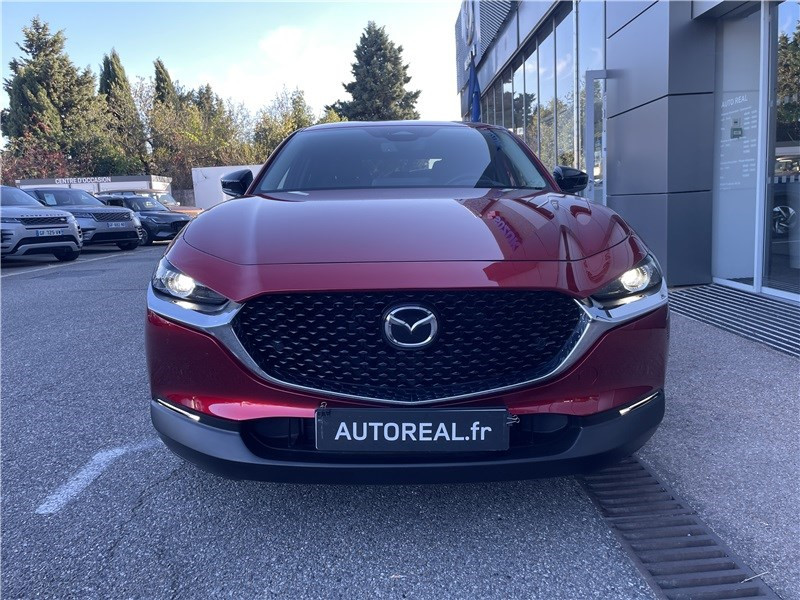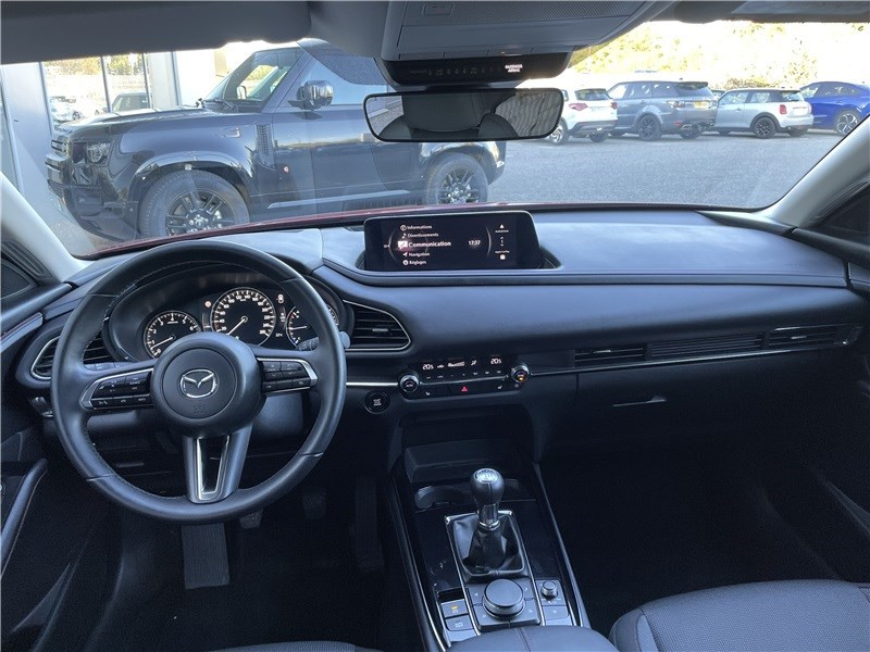 2 prises USB-C et 1 prise 12 V / 8 HP / Aide au freinage intelligent (SBS) avec reconnaissance des piétons / Apple CarPlay sans fil/ Android Auto sans fil avec affichage du sysème de navigation sur l'affichage / Becquet de toit noir / Boutons de commande au volant de couleur noire / Ciel de pavillon gris / Clignotants à impulsion lumineuse "Kodo Turn" / Compteur numérique 7'' / Coques de rétroviseurs extérieurs noirs / Démarrage par bouton " Start/Stop" / Eclairage d'ambiance intérieur à LED / Frein à main électrique (EPB) avec fonction "Autohold" / Gestion automatique des feux de route (HBCS) / Grille de calandre plastique mat / Kit de réparation anti-crevaison / Limiteur de vitesse avec adaptation intelligente de la vitesse (ISA) coupléà la reconnaissance des / Montants de portes extérieurs "Piano Black" / Moulures des vitres latérales chromées / Ouverture/fermeture intelligente des portes / Ouverture sans clé / Pare-soleil avec miroir de courtoisie et éclairage côtés conducteur et passager + rangement côté / Peinture Arctic White / Phares à LED avec fonction antibrouillard intégrée / Porte-gobelets avec couvercle / Rangement au dos du siège passager / Reconnaissance active d'obstacles mobiles en marche AR (RCTA) / Régulateur de vitesse adaptatif Mazda (MRCC) et aide au freinage intélligent (SBS) / Rétroviseur intérieur photochromatique / Rétroviseurs réglables électriquement, à fermeture automatique et chauffants / Sellerie tissu noir avec surpiqûres rouges / Siège passager réglable manuellement 6 voies / Système audio avec radio AM/FM/DAB / Système "Auto Door Locking" (ADL) / Système Bluetooth avec commandes au volant / Système d'alerte de franchissement de ligne (LDWS) avec maintien de trajectoire (LKA) / Système d'alerte du conducteur (DAA) / Système d'appel d'urgence "E-Call" / Système "G-Vectoring Control Plus" (GVC+) / Système Mazda Connect avec écran couleur 10,25'' TFT / Volant et pommeau de levier de vitesses gainé de cuir