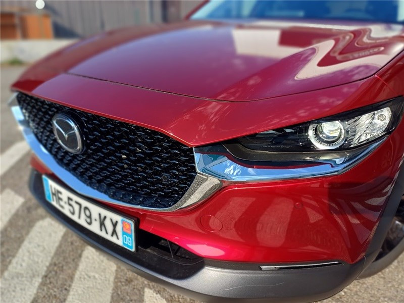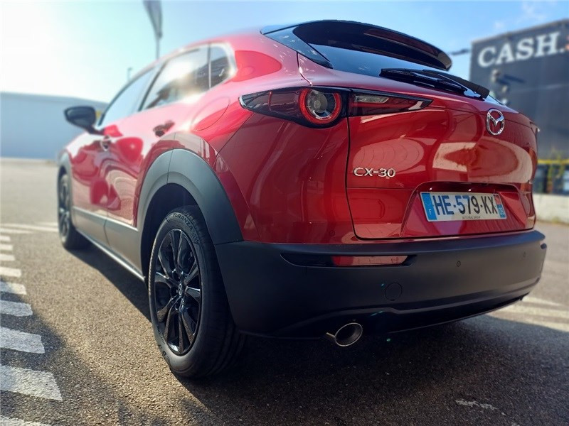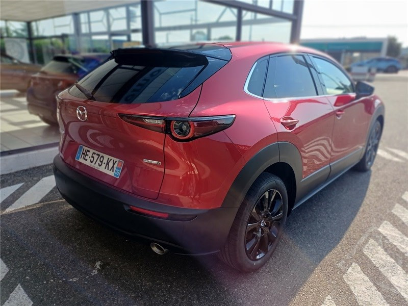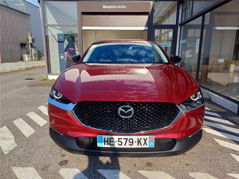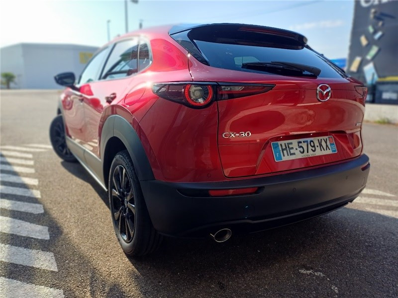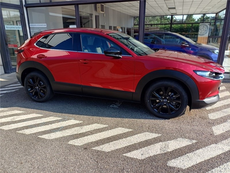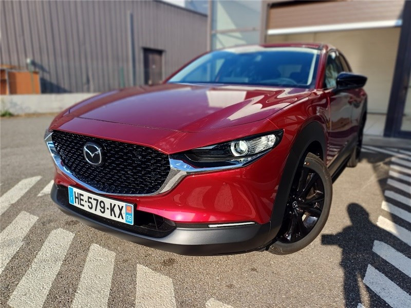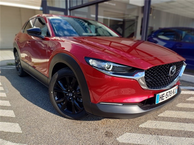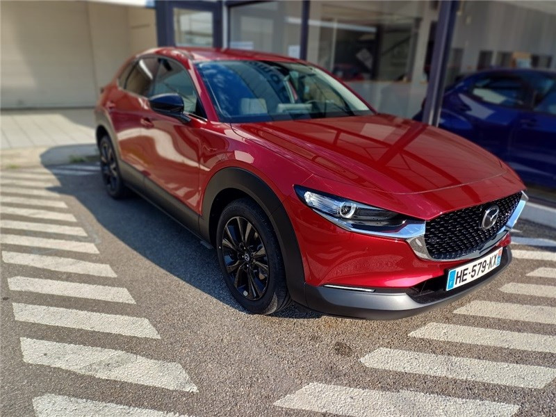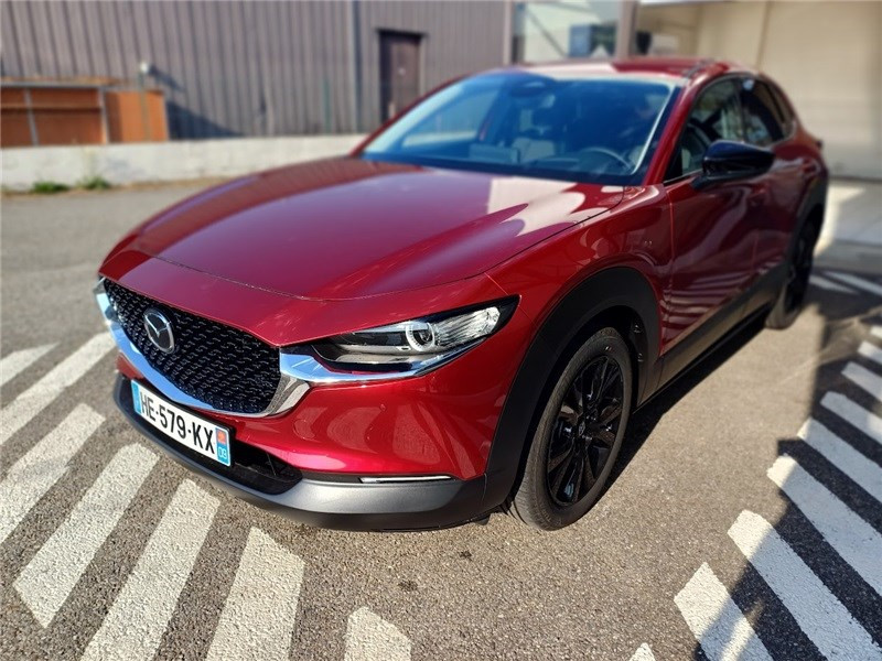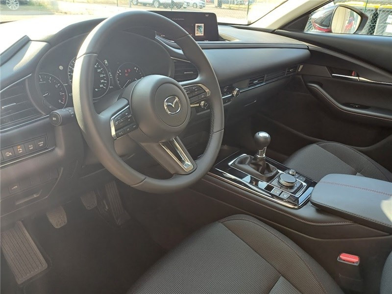 2 ports USB Type C et 1 prise 12 V / 8 HP / Affichage tête haute couleur (ADD) projeté / Alerte de distance et de vitesse (DSA) : affichage et assistance au freinage / Apple CarPlay et Android Auto sans fil (visualisation de la navigation sur l'affichage tête haute couleur) / Cache bagages / Compteur numérique 7'' / Contrôle dynamique de stabilité (DSC) + système « G-Vectoring Control » (GVC) / Coques de rétroviseurs extérieurs noirs / Eclairage d'ambiance à l'AV et à l'AR avec plafonnier (tous à LED, y compris l'éclairage du / Ecran central TFT couleur 10,25" / Fonction de géolocalisation du véhicule ajoutée à l'application MyMazda / Frein de stationnement électronique + fonction « Auto Hold » avec aide au démarrage en côte (HLA) / Gestion automatique des feux de route (HBC) / Hayon à ouverture/fermeture électrique / Jantes alliage 18" noires (215/45/R18) / Kit de réparation anti-crevaison / Ouverture/fermeture intelligente des portes / Phares AV à LED avec fonction antibrouillard intégrée et lave-phares / Régulateur de vitesse adaptatif Mazda MRCC avec adaptation intelligente de la vitesse (ISA) / Rétroviseurs extérieurs chauffants à rabattage automatique et à réglage électrique / Smart Cargo System / Système "Auto Door Locking" (ADL) / Système d'aide au freinage intelligent (SBS) avec assistance au freinage en milieu urbain (SCBS avancé) avec détection des piétons / Système d'alerte anti-fatigue du conducteur (DAA) sans caméra / Système d'appel d'urgence "E-Call" avec GPS / Système de navigation obligatoire pour la reconnaissance des panneaux de signalisation (TSR) (points d?'intérêt en ligne, mode Off-Road - Évolution 2024 : système de navigation hybride) / Système de surveillance des angles morts (BSM) et reconnaissance active d'obstacles mobiles en marche AR (RCTA) / Système Mazda Connect avec écran couleur 10,25'' TFT / Volant et pommeau de levier de vitesses gainé de cuir