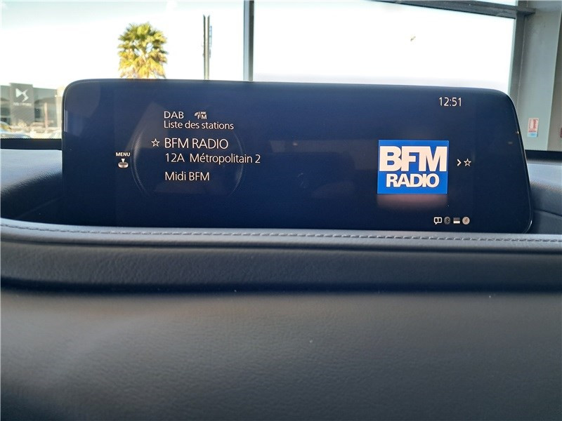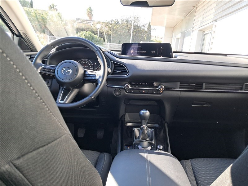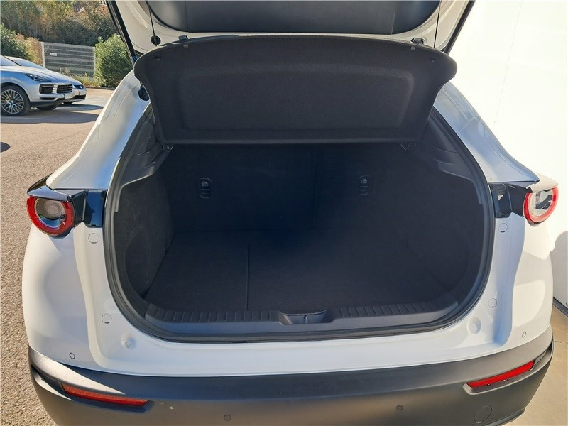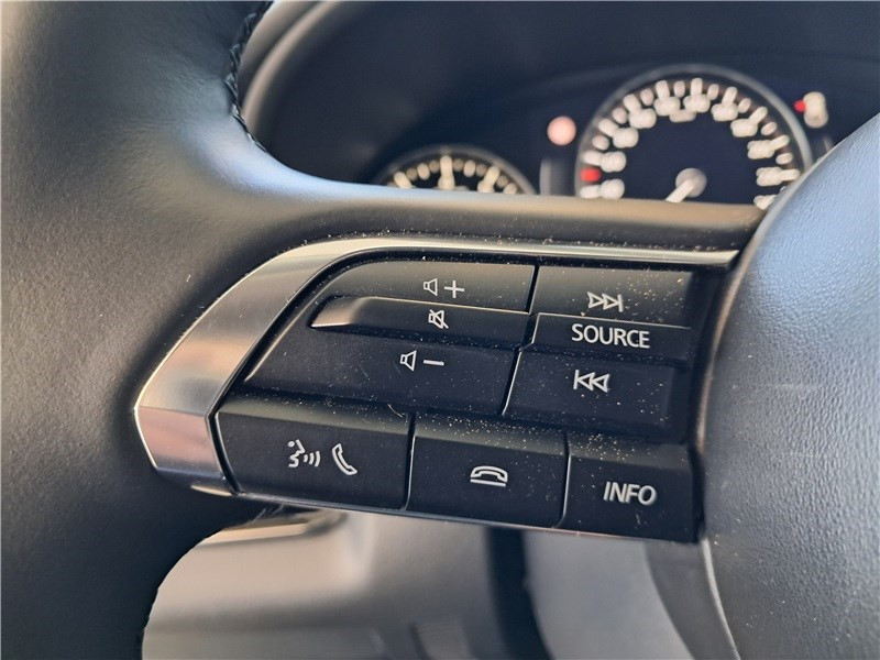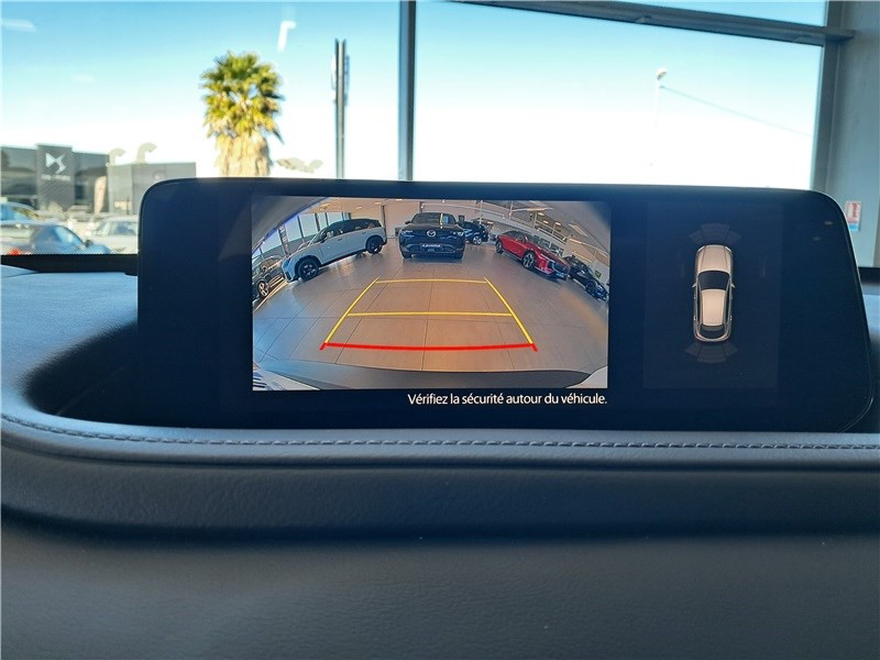 2 ports USB Type C et 1 prise 12 V / 2 télécommandes / 8 HP / Affichage tête haute couleur (ADD) projeté / Airbags frontaux (x2), airbags latéraux à l'AV, airbags AV et AR et airbag genou côté conducteur / Alarme anti-effraction sans capteur d'intrusion et système "Super Lock" / Alerte de distance et de vitesse (DSA) : affichage et assistance au freinage / Antenne intégrée à la lunette AR / Apple CarPlay et Android Auto sans fil (visualisation de la navigation sur l'affichage tête haute couleur) / Assistance vocale Alexa / Avertisseur de franchissement de ligne (LDWS) et système de maintien de trajectoire (LAS) / Becquet de toit noir / Cache bagages / Calandre AV couleur carrosserie / Ciel de pavillon gris / Cire anticorrosion / Clignotants "Kodo Turn" / Compteur numérique 7'' / Contrôle dynamique de stabilité (DSC) + système « G-Vectoring Control » (GVC) / Eclairage d'ambiance à l'AV et à l'AR avec plafonnier (tous à LED, y compris l'éclairage du / Eclairage de la boîte à gants / Ecran central TFT couleur 10,25" / Essuie-glaces dégivrants / Essuie-glaces dissimulés avec buse de lave-glace intégrée / Fonction de géolocalisation du véhicule ajoutée à l'application MyMazda / Frein de stationnement électronique + fonction « Auto Hold » avec aide au démarrage en côte (HLA) / Gestion automatiques des feux de route (HBC) / Interface à commandes multiples (HMI) / Jantes alliage 18" "Silver" (215/55/R18) / Kit de réparation anti-crevaison / Moulures de vitres latérales chromées / Ordinateur de bord avec alarme de vitesse / Ouverture/fermeture intelligente des portes / Pare-soleil avec miroir de courtoisie et éclairage côtés conducteur et passager + rangement côté conducteur / Peinture opaque / Phares AV à LED avec fonction antibrouillard intégrée et lave-phares / Porte-gobelets avec couvercle / Radio (amélioration du logiciel) / Régulateur de vitesse adaptatif Mazda MRCC avec adaptation intelligente de la vitesse (ISA) / Rétroviseur intérieur photochromatique (avec cadre) / Rétroviseurs extérieurs chauffants à rabattage automatique et à réglage électrique / Rétroviseurs extérieurs couleur carrosserie / Sellerie tissu gris foncé / Siège conducteur réglable en hauteur (manuellement) + inclinaison (8 réglages possibles) / Siège passager réglable en hauteur (6 réglages possibles) / Smart Cargo System / Système "Auto Door Locking" (ADL) / Système d'aide au freinage intelligent (SBS) avec assistance au freinage en milieu urbain (SCBS avancé) avec détection des piétons / Système d'alerte anti-fatigue du conducteur (DAA) sans caméra / Système d'appel d'urgence "E-Call" avec GPS / Système de navigation obligatoire pour la reconnaissance des panneaux de signalisation (TSR) (points d?'intérêt en ligne, mode Off-Road - Évolution 2024 : système de navigation hybride) / Système de surveillance des angles morts (BSM) et reconnaissance active d'obstacles mobiles en marche AR (RCTA) / Système d'immobilisation / Système Mazda Connect avec écran couleur 10,25'' TFT / Vitres électriques AV et AR avec commande à impulsion pour chaque vitre / Volant chauffant / Volant et pommeau de levier de vitesses gainé de cuir