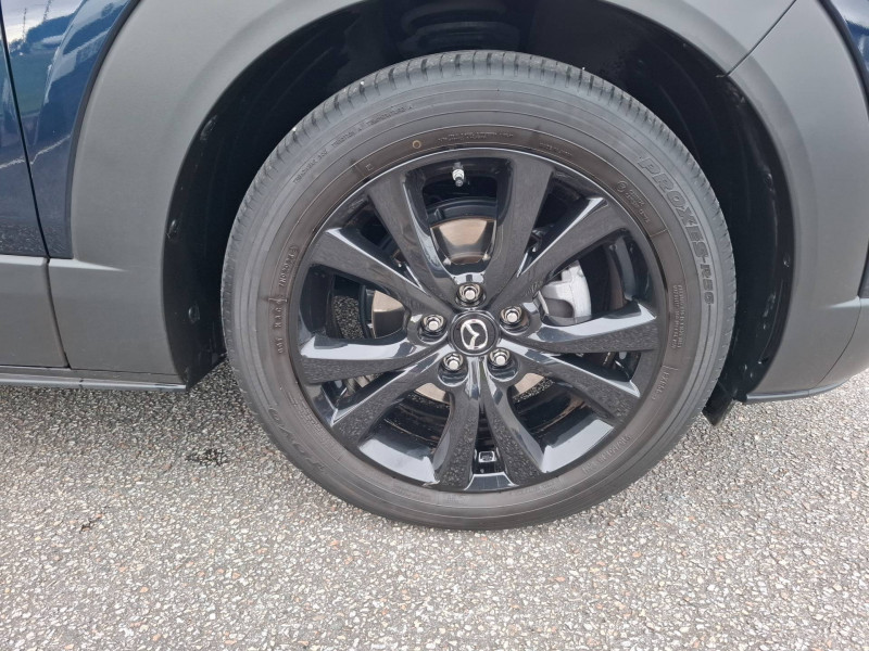 2 ports USB Type C et 1 prise 12 V / 2 télécommandes / 8 HP / Affichage tête haute couleur (ADD) projeté / Airbags frontaux (x2), airbags latéraux à l'AV, airbags AV et AR et airbag genou côté conducteur / Alarme anti-effraction sans capteur d'intrusion et système "Super Lock" / Alerte de distance et de vitesse (DSA) : affichage et assistance au freinage / Antenne intégrée à la lunette AR / Apple CarPlay et Android Auto sans fil (visualisation de la navigation sur l'affichage tête haute couleur) / Assistance vocale Alexa / Avertisseur de franchissement de ligne (LDWS) et système de maintien de trajectoire (LAS) / Becquet de toit noir / Cache bagages / Caches pour montants B/C "Piano Black" / Calandre AV couleur carrosserie / Calandre avec aile emblématique "Bright Silver" / Calandre AV "Piano Black" / Ciel de pavillon gris / Cire anticorrosion / Clignotants "Kodo Turn" / Compteur numérique 7'' / Contrôle dynamique de stabilité (DSC) + système « G-Vectoring Control » (GVC) / Coques de rétroviseurs extérieurs noirs / Eclairage d'ambiance à l'AV et à l'AR avec plafonnier (tous à LED, y compris l'éclairage du / Eclairage de la boîte à gants / Ecran central TFT couleur 10,25" / Essuie-glaces dissimulés avec buse de lave-glace intégrée / Fonction de géolocalisation du véhicule ajoutée à l'application MyMazda / Frein de stationnement électronique + fonction « Auto Hold » avec aide au démarrage en côte (HLA) / Gestion automatique des feux de route (HBC) / Hayon à ouverture/fermeture électrique / Interface à commandes multiples (HMI) / Jantes alliage 18" noires (215/45/R18) / Kit de réparation anti-crevaison / Moulures de vitres latérales chromées / Ordinateur de bord avec alarme de vitesse / Ouverture/fermeture intelligente des portes / Pare-soleil avec miroir de courtoisie et éclairage côtés conducteur et passager + rangement côté conducteur / Peinture opaque / Phares AV à LED avec fonction antibrouillard intégrée et lave-phares / Porte-gobelets avec couvercle / Radio (amélioration du logiciel) / Régulateur de vitesse adaptatif Mazda (MRCC avancé) et limiteur de vitesse / Rétroviseur intérieur photochromatique (avec cadre) / Rétroviseurs extérieurs chauffants à rabattage automatique et à réglage électrique / Siège conducteur réglable en hauteur (manuellement) + inclinaison (8 réglages possibles) / Siège passager réglable en hauteur (6 réglages possibles) / Sièges en tissu noir, tableau de bord, accoudoir, etc., avec surpiqûres rouges / Smart Cargo System / Système "Auto Door Locking" (ADL) / Système d'aide au freinage intelligent (SBS) avec assistance au freinage en milieu urbain (SCBS avancé) avec détection des piétons / Système d'alerte anti-fatigue du conducteur (DAA) sans caméra / Système d'appel d'urgence "E-Call" avec GPS / Système de navigation obligatoire pour la reconnaissance des panneaux de signalisation (TSR) (points d''intérêt en ligne, mode Off-Road - Évolution 2024 : système de navigation hybride) / Système de surveillance des angles morts (BSM) et reconnaissance active d'obstacles mobiles en marche AR (RCTA) / Système d'immobilisation / Système Mazda Connect avec écran couleur 10,25'' TFT / Vitres électriques AV et AR avec commande à impulsion pour chaque vitre / Volant et pommeau de levier de vitesses gainé de cuir