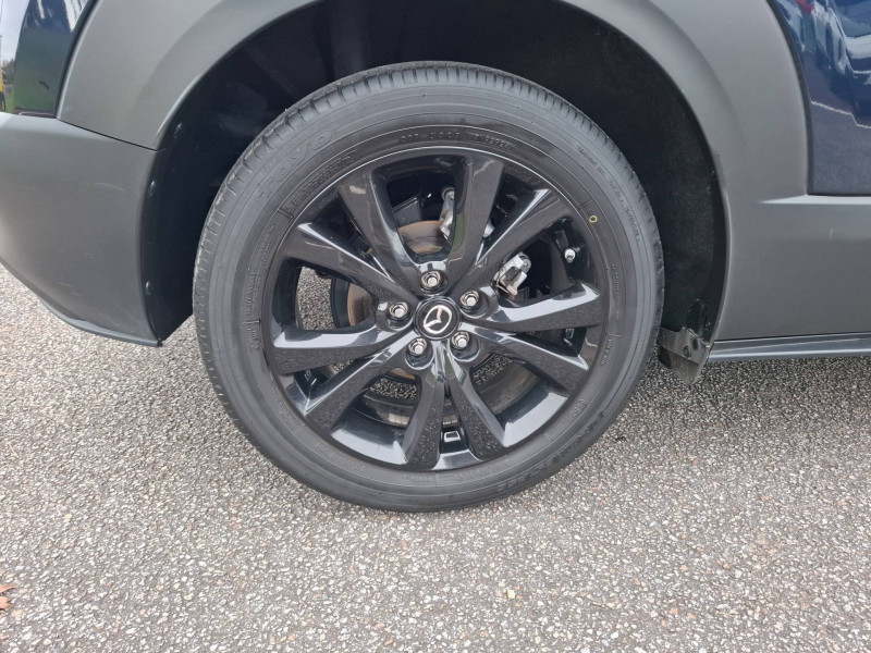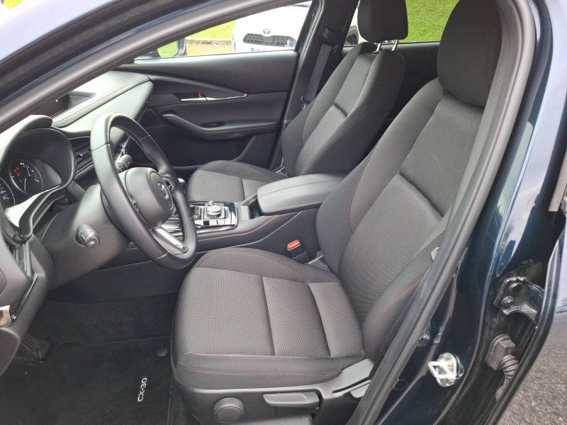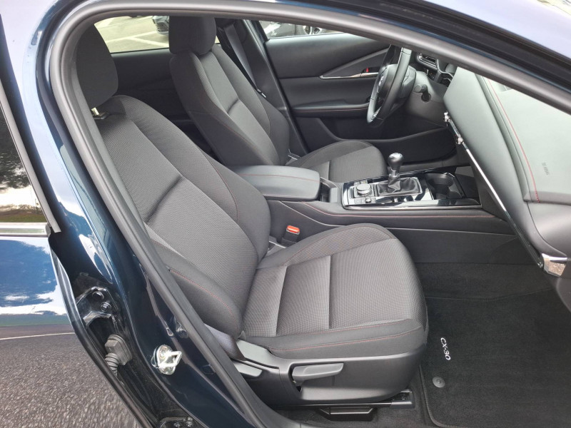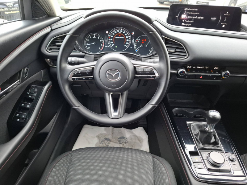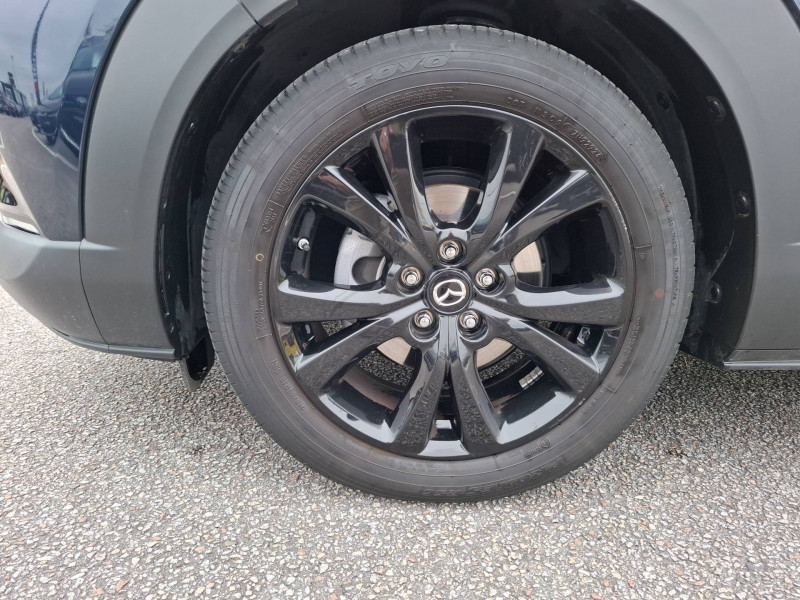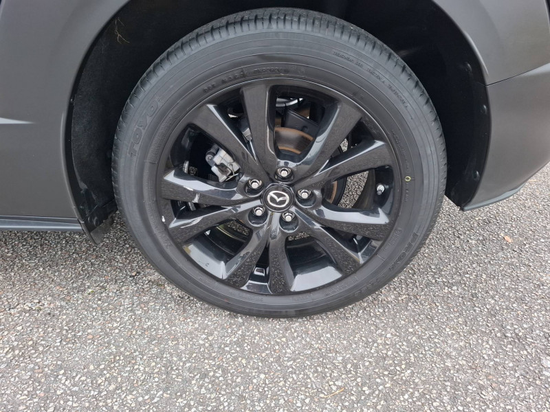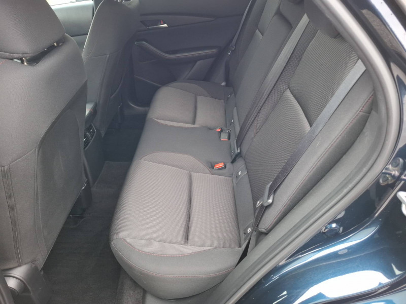 2 ports USB Type C et 1 prise 12 V / 2 télécommandes / Affichage tête haute couleur (ADD) projeté / Aide au freinage intelligent avec reconnaissance des piétons (SBS) / Airbags frontaux (x2), airbags latéraux à l'AV, airbags AV et AR et airbag genou côté conducteur / Antenne intégrée à la lunette AR / Apple CarPlay et Android Auto sans fil (visualisation de la navigation sur l'affichage tête haute couleur) / Assistance vocale Alexa / Avertisseur de franchissement de ligne (LDWS) et système de maintien de trajectoire (LKA) / Becquet de toit noir / Boîte manuelle 6 rapports / Calandre avec aile emblématique "Bright Silver" / Ciel de pavillon gris / Clignotants "Kodo Turn" / Compteur numérique TFT 7'' / Contrôle de la traction (TCS) / Coques de rétroviseurs extérieurs noirs / Eclairage d'ambiance intérieur à LED / Ecran central TFT couleur 10,25" / Frein à main électrique (EPB) avec fonction "Autohold" / Gestion automatique des feux de route (HBC) / Grille de calandre "Black Gloss" / Hayon à ouverture/fermeture électrique / Interface à commandes multiples (HMI) / Jantes alliage 18" noires (215/45/R18) / Kit de réparation anti-crevaison / Limiteur de vitesse avec adaptation intelligente de la vitesse (ISA) coupléà la reconnaissance des des panneaux de signalisation (TSR) / Montants de portes extérieurs "Piano Black" / Moulures inférieures de vitres chromées / Ordinateur de bord avec alarme de vitesse / Ouverture/fermeture intelligente des portes / Pare-soleil avec miroir de courtoisie et lumière côtés conducteur et passager + rangement côté conducteur / Peinture opaque / Phares AV à LED avec fonction antibrouillard intégrée et lave-phares / Porte-gobelets sans couvercle / Rétroviseur intérieur photochromatique (avec cadre) / Rétroviseurs extérieurs couleur carrosserie, chauffants réglable électrique et à rabattage automatique / Services connectés MyMazda avec fonction allumage des feux / Siège passager réglable manuellement 6 voies / Sièges en tissu noir, tableau de bord, accoudoir, etc., avec surpiqûres rouges / Signature de calandre chromée / Smart Cargo System / Système "Auto Door Locking" (ADL) / Système Bluetooth avec commandes au volant / Système d'alerte anti-fatigue du conducteur (DAA) sans caméra / Système d'appel d'urgence "E-Call" avancé / Système de surveillance des angles morts (BSM) et reconnaissance active d'obstacles mobiles en marche AR (RCTA) / Système "G-Vectoring Control Plus" (GVC+) / Système Mazda Connect avec écran couleur 10,25'' TFT / Vitres électriques AV et AR avec commande à impulsion pour chaque vitre / Volant et pommeau de levier de vitesses gainé de cuir
