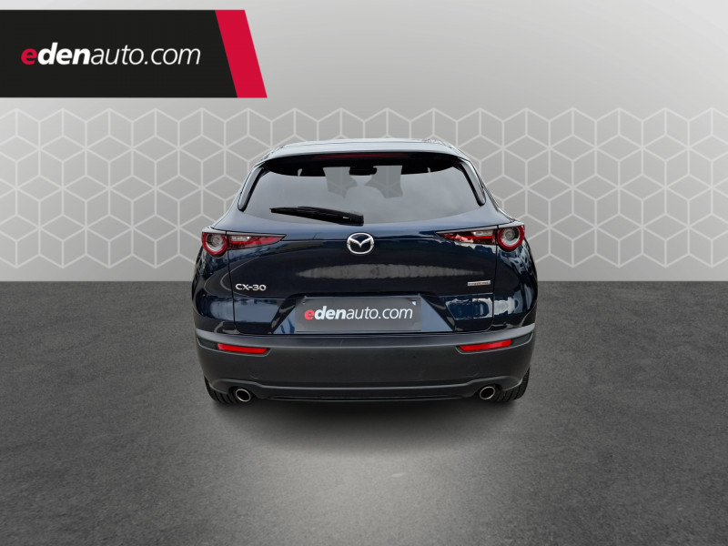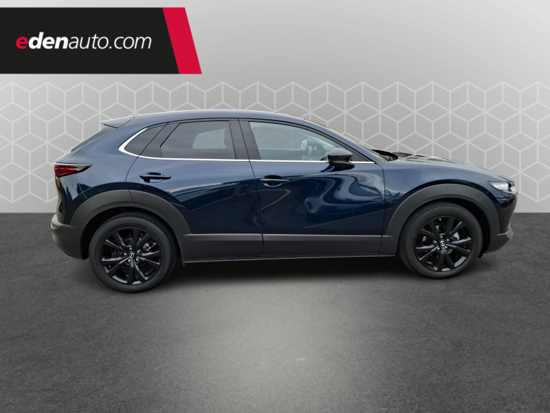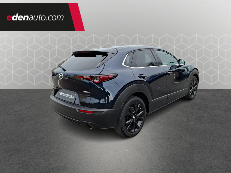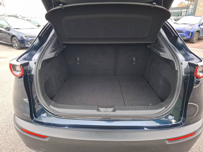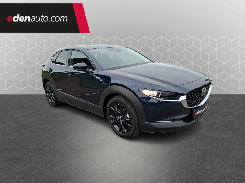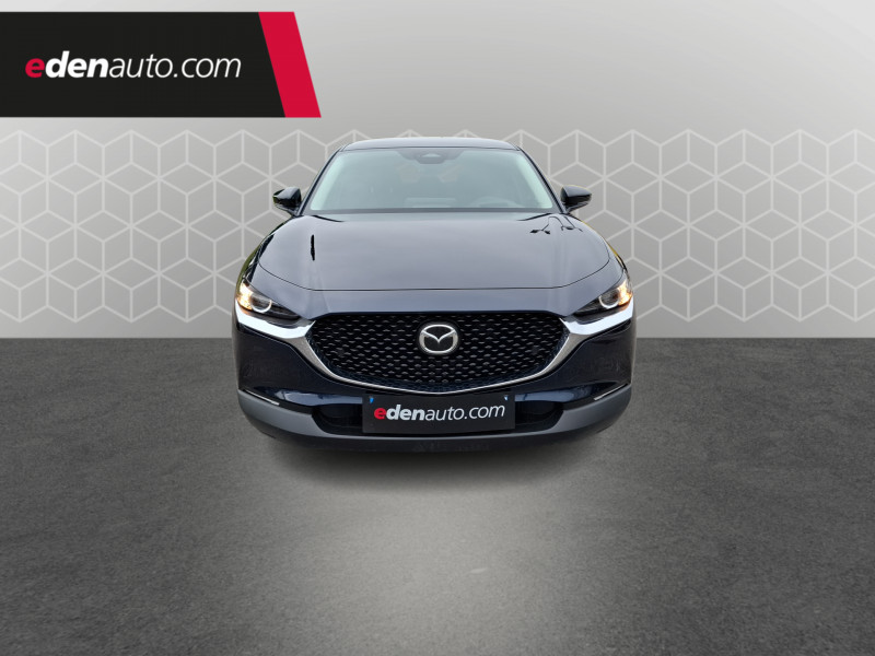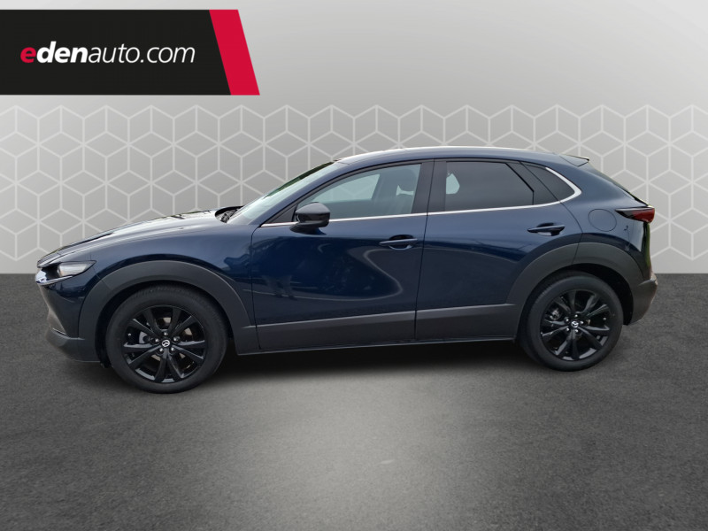 2 ports USB Type C et 1 prise 12 V / 2 télécommandes / Affichage tête haute couleur (ADD) projeté / Aide au freinage intelligent avec reconnaissance des piétons (SBS) / Airbags frontaux (x2), airbags latéraux à l'AV, airbags AV et AR et airbag genou côté conducteur / Antenne intégrée à la lunette AR / Apple CarPlay et Android Auto sans fil (visualisation de la navigation sur l'affichage tête haute couleur) / Assistance vocale Alexa / Avertisseur de franchissement de ligne (LDWS) et système de maintien de trajectoire (LKA) / Becquet de toit noir / Boîte manuelle 6 rapports / Calandre avec aile emblématique "Bright Silver" / Ciel de pavillon gris / Clignotants "Kodo Turn" / Compteur numérique TFT 7'' / Contrôle de la traction (TCS) / Coques de rétroviseurs extérieurs noirs / Eclairage d'ambiance intérieur à LED / Ecran central TFT couleur 10,25" / Frein à main électrique (EPB) avec fonction "Autohold" / Gestion automatique des feux de route (HBC) / Grille de calandre "Black Gloss" / Hayon à ouverture/fermeture électrique / Interface à commandes multiples (HMI) / Jantes alliage 18" noires (215/45/R18) / Kit de réparation anti-crevaison / Limiteur de vitesse avec adaptation intelligente de la vitesse (ISA) coupléà la reconnaissance des des panneaux de signalisation (TSR) / Montants de portes extérieurs "Piano Black" / Moulures inférieures de vitres chromées / Ordinateur de bord avec alarme de vitesse / Ouverture/fermeture intelligente des portes / Pare-soleil avec miroir de courtoisie et lumière côtés conducteur et passager + rangement côté conducteur / Peinture opaque / Phares AV à LED avec fonction antibrouillard intégrée et lave-phares / Porte-gobelets sans couvercle / Rétroviseur intérieur photochromatique (avec cadre) / Rétroviseurs extérieurs couleur carrosserie, chauffants réglable électrique et à rabattage automatique / Services connectés MyMazda avec fonction allumage des feux / Siège passager réglable manuellement 6 voies / Sièges en tissu noir, tableau de bord, accoudoir, etc., avec surpiqûres rouges / Signature de calandre chromée / Smart Cargo System / Système "Auto Door Locking" (ADL) / Système Bluetooth avec commandes au volant / Système d'alerte anti-fatigue du conducteur (DAA) sans caméra / Système d'appel d'urgence "E-Call" avancé / Système de surveillance des angles morts (BSM) et reconnaissance active d'obstacles mobiles en marche AR (RCTA) / Système "G-Vectoring Control Plus" (GVC+) / Système Mazda Connect avec écran couleur 10,25'' TFT / Vitres électriques AV et AR avec commande à impulsion pour chaque vitre / Volant et pommeau de levier de vitesses gainé de cuir