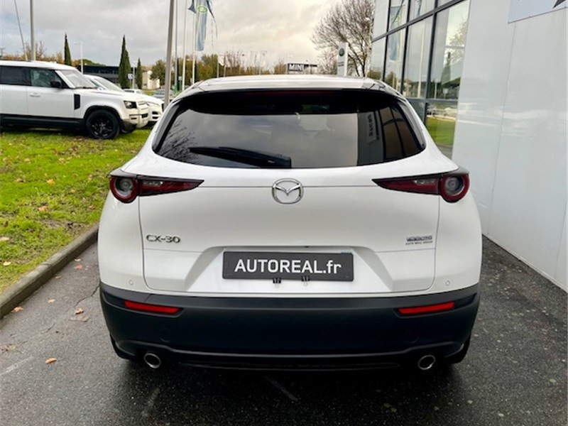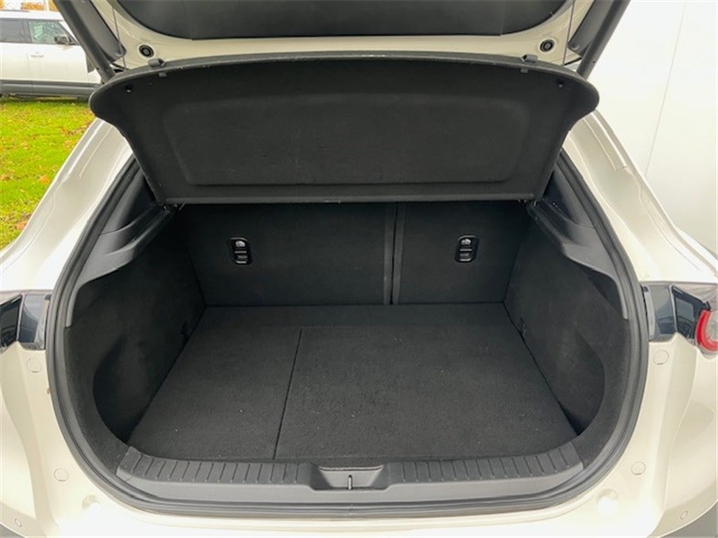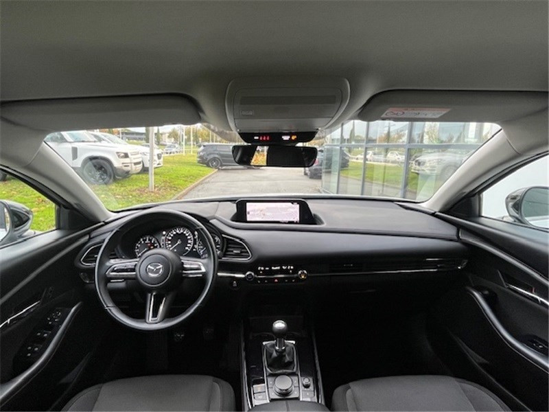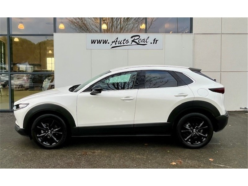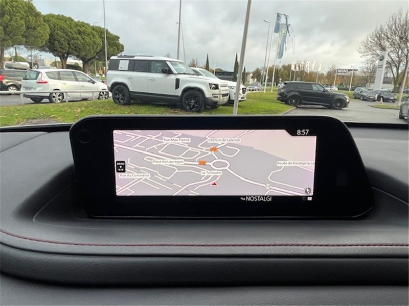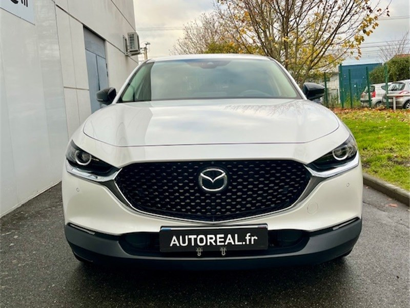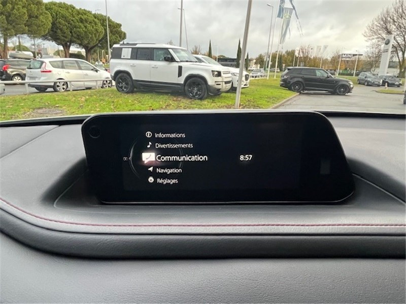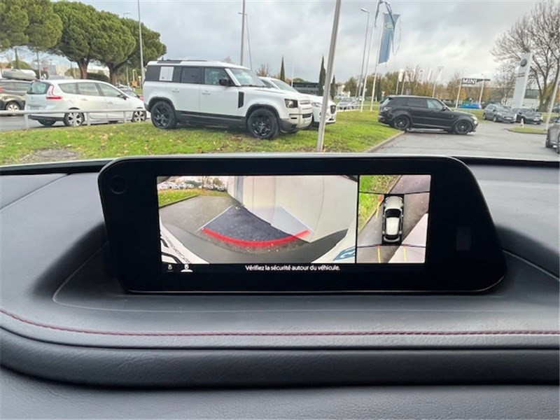 8 HP / Aide au freinage intelligent en mode urbain (SCBS avancé) avec reconnaissance des piétons / Bas de caisse inférieur AR "Black Gloss" / Cache bagages / Caméra 360° / Ciel de pavillon gris / Clignotants à impulsion lumineuse "Kodo Turn" / Compteur numérique 7'' avec ordinateur de bord couleur / Coques de rétroviseurs extérieurs noirs / Démarrage par bouton " Start/Stop" / Eclairage d'ambiance intérieur à LED / Eclairage de plaque AR à LED / Essuie-glaces avec buse de lave-glace intégrée / Fonction "Coming / Leaving home" / Frein à main électrique (EPB) avec fonction "Autohold" et système de freinage d'urgence / Gestion automatique des feux de route (HBCS) / Grille de calandre "Piano Black" / Inserts décoratifs noirs sur planche de bord et liserés d'aérateurs "Silver" / Kit de réparation anti-crevaison / Limiteur de vitesse avec adaptation intelligente de la vitesse (ISA) coupléà la reconnaissance des / Montants de portes extérieurs "Piano Black" / Moulures superieure des vitres latérales chromées / Ouverture/fermeture intelligente des portes / Pare-soleil avec miroir de courtoisie et éclairage côtés conducteur et passager + rangement côté / Peinture Arctic White / Phares AV à LED avec fonction antibrouillard intégrée / Reconnaissance active d'obstacles mobiles en marche AR (RCTA) avec fonction freinage (RCTB) / Reconnaissance active d'obstacles mobiles en marche AV (FCTA) / Régulateur de vitesse adaptatif Mazda (MRCC) avec système d'aide au trafic (CTS) / Rétroviseur intérieur photochromatique / Sellerie tissu avec surpiqûres rouges sur les sièges, le tableau de bord et l'accoudoir / Siège passager réglable manuellement 6 voies / Signature de calandre chromée / Système audio avec radio AM/FM/DAB / Système "Auto Door Locking" (ADL) / Système Bluetooth avec commandes au volant / Système d'alerte du conducteur (DAA) avec caméra / Système d'appel d'urgence "E-Call" / Système "G-Vectoring Control Plus" (GVC+) / Système Mazda Connect avec écran couleur 8,8'' TFT et système de navigation / Vitres électriques AV et AR avec commande à impulsion pour chaque vitre / Volant et pommeau de levier de vitesses gainé de cuir