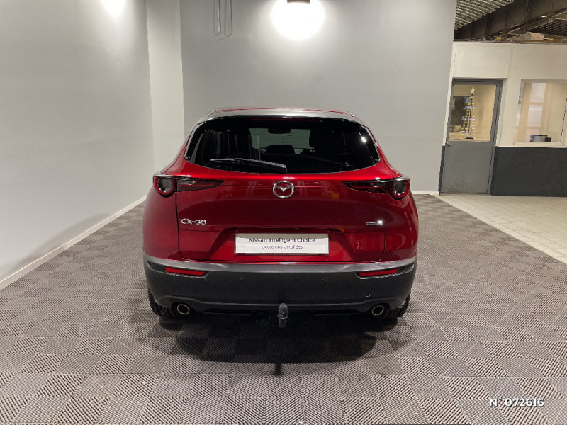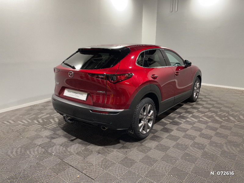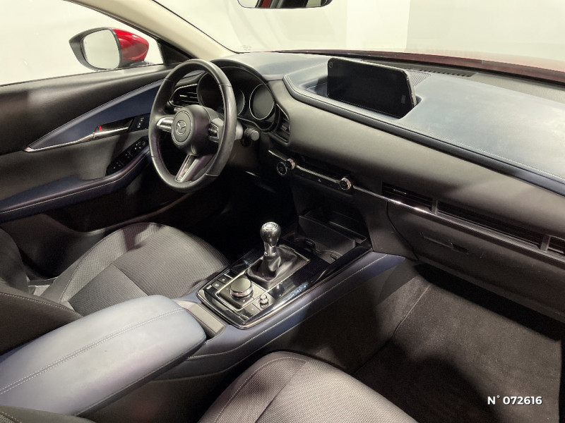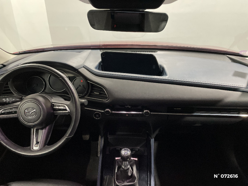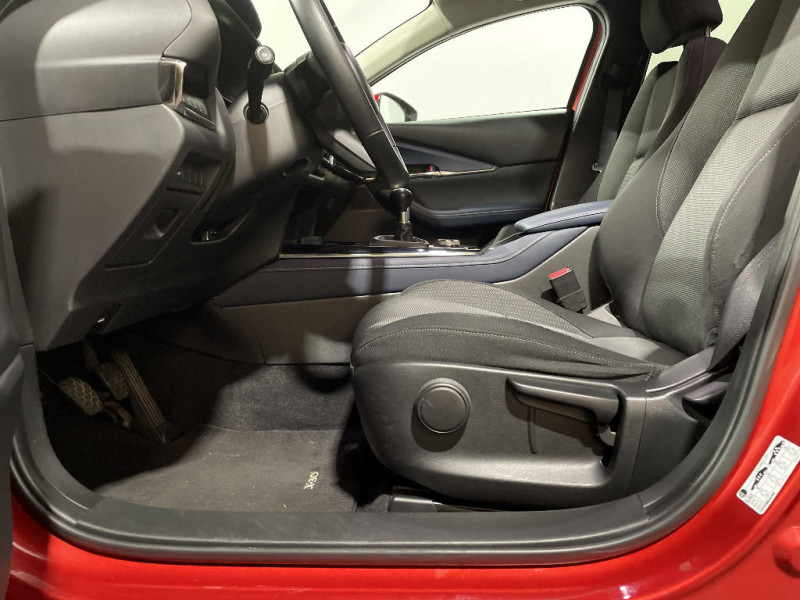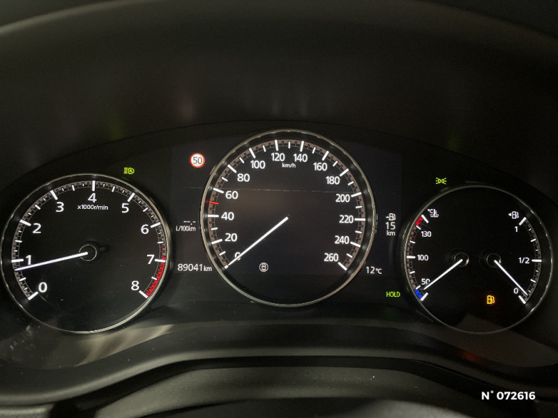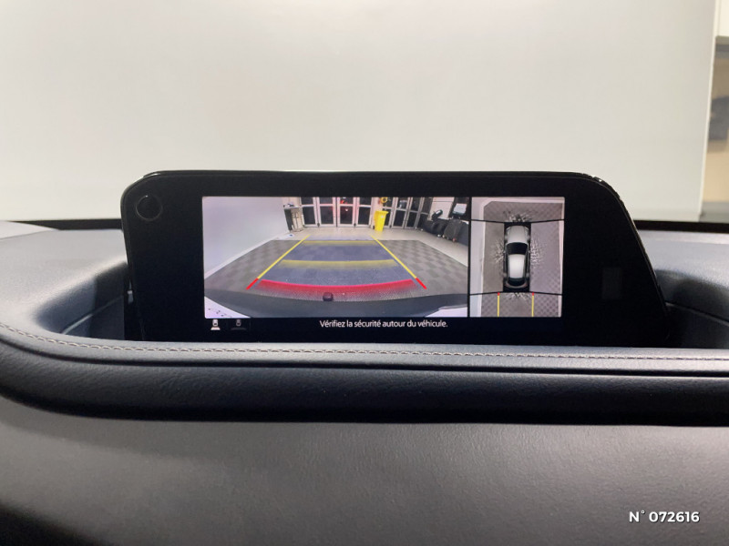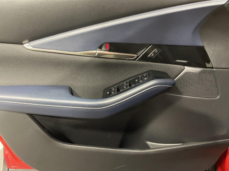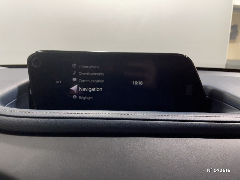 Rétroviseurs extérieurs chauffants, réglables électriquement et à rabattage automatique (à l'ouverture et fermeture des portes) / Rétroviseurs extérieurs couleur carrosserie / Sellerie tissu noir avec décoration intérieure "Blue Navy" / Siège passager réglable manuellement 6 voies / Signature de calandre chromée / Système audio avec radio AM/FM/DAB et 8 haut-parleurs / Système "Auto Door Locking" (ADL) / Système Bluetooth avec commandes au volant / Système d'alerte du conducteur (DAA) / Système d'appel d'urgence "E-Call" / Accoudoir central AV coloris bleu "Navy" avec rangements / Aide au freinage intelligent en mode urbain (SCBS avancé) avec reconnaissance des piétons / Système "G-Vectoring Control Plus" (GVC+) / Système Mazda Connect avec écran couleur 8,8'' TFT et système de navigation / Cache bagages / Ciel de pavillon gris / Clignotants à impulsion lumineuse "Kodo Turn" / Compteur numérique 7'' avec ordinateur de bord couleur / Démarrage par bouton " Start/Stop" / Eclairage d'ambiance intérieur à LED / Eclairage de plaque AR à LED / Essuie-glaces avec buse de lave-glace intégrée / Fonction "Coming / Leaving home" / Frein à main électrique (EPB) avec fonction "Autohold" et système de freinage d'urgence / Gestion automatique des feux de route (HBCS) / Grille de calandre plastique mat / Inserts décoratifs de planche de bord et liserés d'aérateurs "Chromé Satiné" / Inserts décoratifs de planche de bord et liserés d'aérateurs "Silver" / Kit de réparation anti-crevaison / Limiteur de vitesse avec adaptation intelligente de la vitesse (ISA) coupléà la reconnaissance des panneaux de signalisation (TSR) / Moulures superieure des vitres latérales chromées / Pare-soleil avec miroir de courtoisie et éclairage côtés conducteur et passager + rangement côté conducteur / Peinture unie / Phares à LED avec fonction antibrouillard intégrée / Reconnaissance active d'obstacles mobiles en marche AR (RCTA) / Régulateur de vitesse adaptatif (MRCC) (0-200 km/h) et aide au freinage intélligent (SBS) / Volant et pommeau de levier de vitesses gainé de cuir