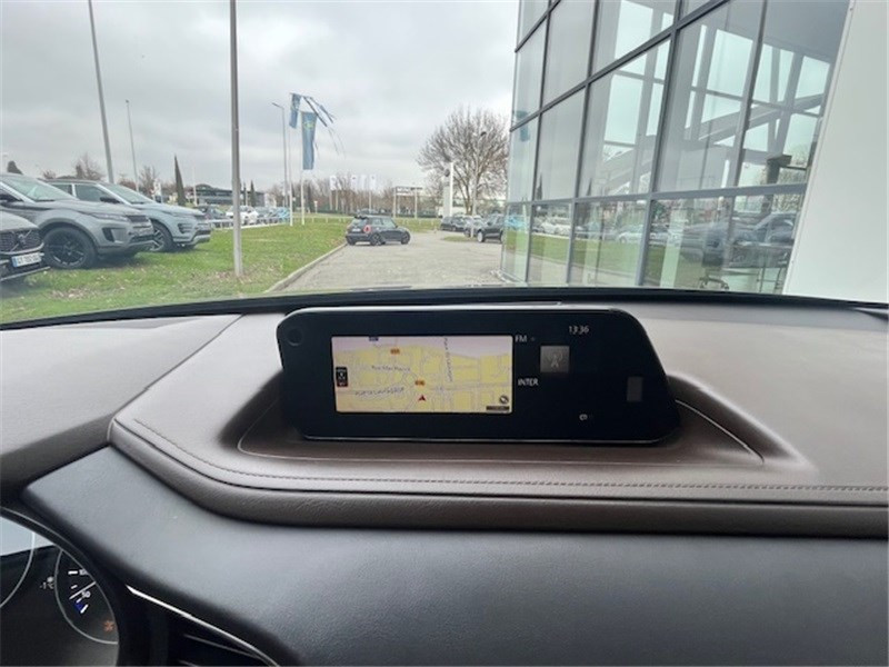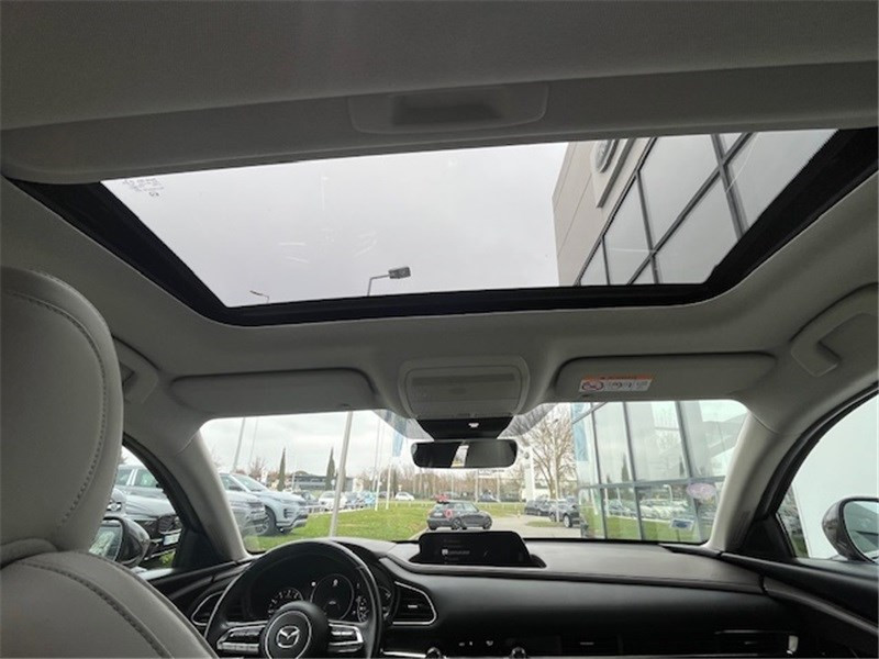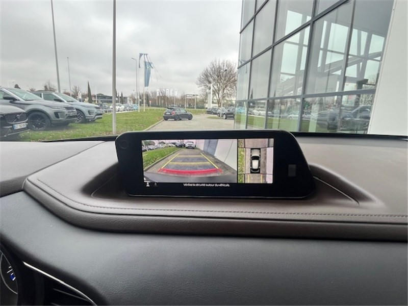 Aide au freinage intelligent en marche AR (SCBS AR) / Aide au freinage intelligent en mode urbain (SCBS avancé) avec reconnaissance des piétons / Bouton "Start" avec cerclage chromé / Cache bagages / Caméra 360° / Canules d'échappement plus larges (90mm) / Ciel de pavillon gris / Clignotants à impulsion lumineuse "Kodo Turn" / Compteur numérique 7'' avec ordinateur de bord couleur / Démarrage par bouton " Start/Stop" / Eclairage d'ambiance intérieur à LED / Eclairage de plaque AR à LED / Essuie-glaces AV dégivrants / Essuie-glaces avec buse de lave-glace intégrée / Fonction "Coming / Leaving home" / Frein à main électrique (EPB) avec fonction "Autohold" et système de freinage d'urgence / Gestion automatique des feux de route (HBCS) / Grille de calandre plastique mat / Inserts décoratifs de planche de bord et liserés d'aérateurs "Chromé Satiné" / Jantes alliage 18" "Bright Silver" / Kit de réparation anti-crevaison / Limiteur de vitesse avec adaptation intelligente de la vitesse (ISA) coupléà la reconnaissance des / Montants de portes extérieurs "Piano Black" / Moulures superieure des vitres latérales chromées / Ouverture/fermeture intelligente des portes / Pare-soleil avec miroir de courtoisie et éclairage côtés conducteur et passager + rangement côté / Peinture Snowflake White Pearl Mica / Peinture unie / Phares à LED avec fonction antibrouillard intégrée / Poignée de boîte à gants chromée / Porte-gobelets AV / Reconnaissance active d'obstacles mobiles en marche AR (RCTA) avec fonction freinage (RCTB) / Reconnaissance active d'obstacles mobiles en marche AV (FCTA) / Régulateur de vitesse adaptatif Mazda (MRCC) (0-200 km/h) avec fonction Stop&Go et système d'aide au / Régulateur de vitesse adaptatif (MRCC) (0-200 km/h) et aide au freinage intélligent (SBS) / Rétroviseur intérieur photochromatique / Rétroviseur intérieur sans cadre / Rétroviseurs extérieurs avec fonction "marche AR" / Rétroviseurs extérieurs couleur carrosserie / Rétroviseurs extérieurs et affichage tête haute projeté avec fonction de mémorisation / Rétroviseurs extérieurs photochromatiques / Sellerie en cuir noir perforé avec surpiqûres / Siège conducteur avec réglages électriques 8 voies avec fonction de mémorisation / Signature de calandre chromée / Signature lumineuse spécifique à l'AV et à l'AR à LED / Système audio Bose avec 12 HP / Système "Auto Door Locking" (ADL) / Système Bluetooth avec commandes au volant / Système d'alerte du conducteur (DAA) avec caméra / Système d'appel d'urgence "E-Call" / Système "G-Vectoring Control Plus" (GVC+) / Système Mazda Connect avec écran couleur 8,8'' TFT et système de navigation / Volant avec cerclage chromé / Volant chauffant / Volant et pommeau de levier de vitesses gainé de cuir
