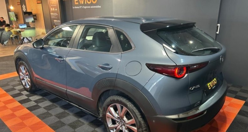 Mazda CX-30 2.0 E-SKYACTIV-G 120 HYBRID MHEV INSPIRATION 2WD BVA crossover, suv, gris, 6 cv, 5 portes, première mise en circulation le 03/10/2019. - NOS SERVICES ET PRESTATIONS COMPLÉMENTAIRES - - Visite virtuelle : avant de vous déplacer, visualisez votre futur véhicule sous toutes ses coutures . Contactez-nous pour en voir plus ! - Extension de garantie jusqu'à 60 mois. - Solutions de Financement de 12 à 84 mois. - Livraison dans toute la France métropolitaine (sur devis). - Reprise possible de votre ancien véhicule. - Les informations délivrées par cette annonce sont non contractuelles et données à titre indicatif. Packs disponibles (véhicules éligibles au Label) - Pack Clés en Main - 691 € TTC(¹)(²) Démarches (hors carte grise) | 1/4 de carburant | Nettoyage First | Garantie 6 mois | Label inclus? - Pack Sérénité - 891 € TTC(¹)(²) Démarches (hors carte grise) | 1/2 de carburant | Nettoyage Confort | Garantie 12 mois | Label inclus? - Pack Prestige - 1.091 € TTC(¹)(²) Démarches (hors carte grise) | Plein complet | Nettoyage Prestige | Garantie 12 mois | Label inclus? + Surprise du chef - (¹) Les véhicules non éligibles au Label bénéficient de tarifs préférentiels. Veuillez contacter votre conseiller pour obtenir les conditions tarifaires applicables. (²) Tarif pour les véhicules deux roues motrices dont la valeur de vente est inférieure à 60 000 € TTC. - Véhicule visible sur rendez vous 5 places OPTIONS ET ÉQUIPEMENTS : Audio - Télécommunications : - Bluetooth - commandes vocales - radio numérique Conduite : - Essuies glaces automatiques - Frein de parking électrique - Line assist - allumage automatique des feux - clé mains-libres - démarrage sans clé - régulateur de vitesse Extérieur : - Capteurs d'aide au stationnement arrière - Capteurs d'aide au stationnement avant - Hayon électrique - Rétroviseurs latéraux électriques - Caméra AV + AR - camera 360 - jantes : aluminium - jantes alliage - système d'aide au stationnement Intérieur : - Accoudoir central AV - Sièges AV électriques - Volant alu/cuir - Porte gobelet avant - accoudoir central - accoudoir central arrière - direction assistée - fermeture centralisée - vitres électriques Pack : - Boîte de vitesse automatique - Mode sport - Tableau de bord cuir - détecteur de lumière - nombre de rapports : 6 vitesses - volant multifonctions Sellerie : - Sellerie Simili-Cuir Sécurité : - Airbags - Alerte franchissement de lignes - avertisseur d'angle mort - phares antibrouillard Autres équipements et informations : - Pleins phares auto - Puissance kilowatt : 90 kw - puissance réelle : 122 ch - émission CO2 : 126 g/km Référence annonce : d159511