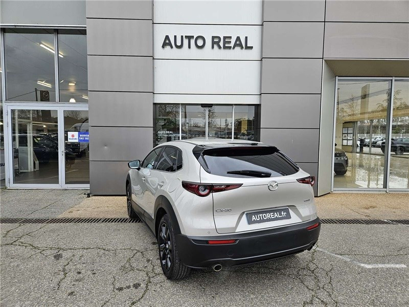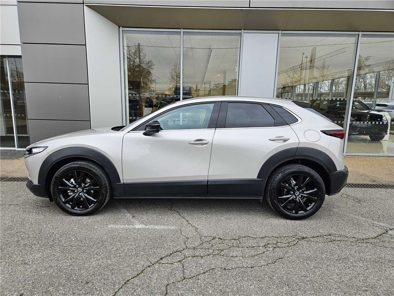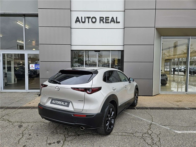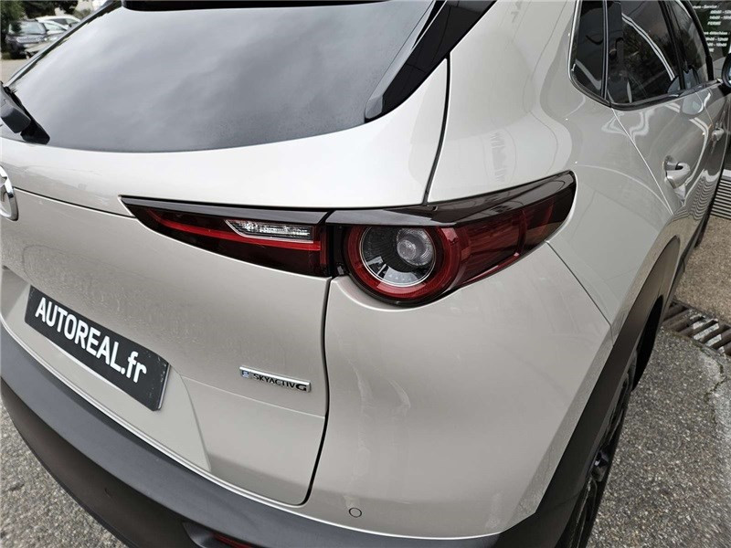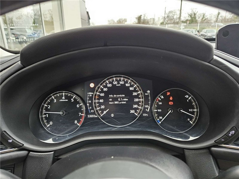 8 HP / Aide au freinage intelligent en mode urbain (SCBS avancé) avec reconnaissance des piétons / Bas de caisse inférieur AR "Black Gloss" / Cache bagages / Caméra 360° / Ciel de pavillon gris / Clignotants à impulsion lumineuse "Kodo Turn" / Compteur numérique 7'' avec ordinateur de bord couleur / Coques de rétroviseurs extérieurs noirs / Démarrage par bouton " Start" / Eclairage d'ambiance intérieur à LED / Eclairage de plaque AR à LED / Essuie-glaces avec buse de lave-glace intégrée / Fonction "Coming / Leaving home" / Frein à main électrique (EPB) avec fonction "Autohold" et système de freinage d'urgence / Gestion automatiques des feux de route (HBCS) / Grille de calandre "Piano Black" / Inserts décoratifs noirs sur planche de bord et liserés d'aérateurs "Silver" / Kit de réparation anticrevaison / Limiteur de vitesse avec adaptation intelligente de la vitesse (ISA) coupléà la reconnaissance des panneaux de signalisation (TSR) / Montants de portes extérieurs "Piano Black" / Moulures superieure des vitres latérales chromées / Ouverture/fermeture intelligente des portes / Pare-soleil avec miroir de courtoisie et éclairage côtés conducteur et passager + rangement côté conducteur / Peinture Arctic White / Phares AV à LED avec fonction antibrouillard intégrée / Reconnaissance active d'obstacles mobiles en marche AR (RCTA) avec fonction freinage (RCTB) / Reconnaissance active d'obstacles mobiles en marche AV (FCTA) / Régulateur de vitesse adaptatif Mazda (MRCC) avec système d'aide au trafic (CTS) / Rétroviseur intérieur photochromatique / Rétroviseurs extérieurs chauffants, réglables électriquement et à rabattage automatique (à l'ouverture et fermeture des portes) / Sellerie tissu avec surpiqûres rouges sur les sièges, le tableau de bord et l'accoudoir / Siège passager réglable manuellement 6 voies / Signature de calandre chromée / Système audio avec radio AM/FM/DAB / Système "Auto Door Locking" (ADL) / Système Bluetooth avec commandes au volant / Système d'alerte du conducteur (DAA) avec caméra / Système d'appel d'urgence "E-Call" / Système "G-Vectoring Control Plus" (GVC+) / Système Mazda Connect avec écran couleur 8,8'' TFT et système de navigation / Vitres électriques AV et AR avec commande à impulsion pour chaque vitre / Volant et pommeau de levier de vitesses gainé de cuir