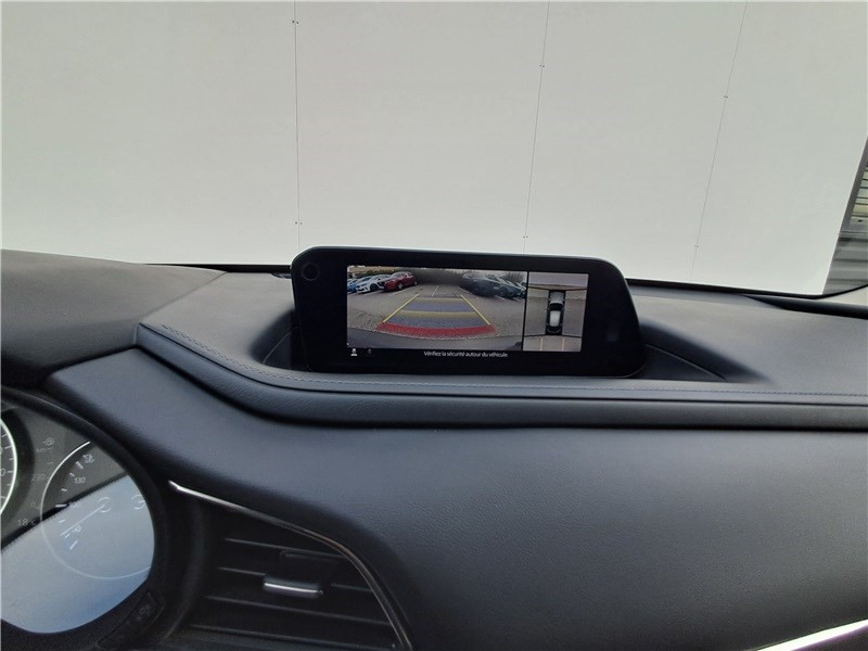 Aide au freinage intelligent en marche AR (SCBS AR) / Aide au freinage intelligent en mode urbain (SCBS avancé) avec reconnaissance des piétons / Bas de caisse inférieur AR "Black Gloss" / Boîte automatique 6 rapports Skyactiv-Drive / Bouton de sélection du mode de conduite / Bouton "Start" avec cerclage chromé / Cache bagages / Caméra 360° / Canules d'échappement plus larges (90mm) / Ciel de pavillon gris / Clignotants à impulsion lumineuse "Kodo Turn" / Compteur numérique 7'' avec ordinateur de bord couleur / Démarrage par bouton " Start" / Eclairage d'ambiance intérieur à LED / Eclairage de plaque AR à LED / Essuie-glace AV dégivrants / Essuie-glaces avec buse de lave-glace intégrée / Fonction "Coming / Leaving home" / Frein à main électrique (EPB) avec fonction "Autohold" et système de freinage d'urgence / Gestion automatiques des feux de route (HBCS) / Grille de calandre "Piano Black" / Inserts décoratifs de planche de bord et liserés d'aérateurs "Chromé Satiné" / Kit de réparation anticrevaison / Limiteur de vitesse avec adaptation intelligente de la vitesse (ISA) coupléà la reconnaissance des panneaux de signalisation (TSR) / Montants de portes extérieurs "Piano Black" / Moulures superieure des vitres latérales chromées / Ouverture/fermeture intelligente des portes / Pare-soleil avec miroir de courtoisie et éclairage côtés conducteur et passager + rangement côté conducteur / Peinture Arctic White / Phares AV à LED avec fonction antibrouillard intégrée / Poignée de boîte à gants chromée / Porte-gobelets AV / Reconnaissance active d'obstacles mobiles en marche AR (RCTA) avec fonction freinage (RCTB) / Reconnaissance active d'obstacles mobiles en marche AV (FCTA) / Régulateur de vitesse adaptatif Mazda (MRCC) avec fonction Stop&Go et système d'aide au trafic (CTS) / Rétroviseur intérieur photochromatique / Rétroviseur intérieur sans cadre / Rétroviseurs extérieurs chauffants, réglables électriquement et à rabattage automatique (à l'ouverture et fermeture des portes) / Rétroviseurs extérieurs couleur carrosserie / Rétroviseurs extérieurs photochromatiques / Siège passager réglable manuellement 6 voies / Signature de calandre chromée / Signature lumineuse spécifique à l'AV et à l'AR à LED / Système audio avec radio AM/FM/DAB / Système "Auto Door Locking" (ADL) / Système Bluetooth avec commandes au volant / Système d'alerte du conducteur (DAA) avec caméra / Système d'appel d'urgence "E-Call" / Système "G-Vectoring Control Plus" (GVC+) / Système Mazda Connect avec écran couleur 8,8'' TFT et système de navigation / Vitres électriques AV et AR avec commande à impulsion pour chaque vitre / Volant avec cerclage chromé / Volant chauffant / Volant et pommeau de levier de vitesses gainé de cuir
