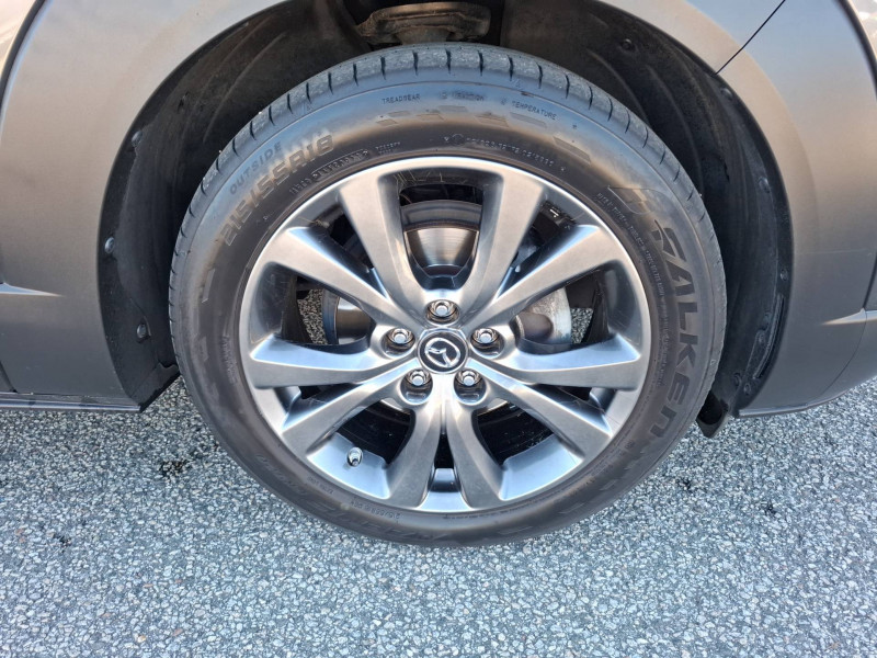 Accoudoir central AV coloris bleu "Navy" avec rangements / Aide au freinage intelligent en marche AR (SCBS AR) / Aide au freinage intelligent en mode urbain (SCBS avancé) avec reconnaissance des piétons / Bouton "Start" avec cerclage chromé / Cache bagages / Caméra 360° / Canules d'échappement plus larges (90mm) / Clignotants à impulsion lumineuse "Kodo Turn" / Compteur numérique 7'' avec ordinateur de bord couleur / Démarrage par bouton " Start/Stop" / Eclairage d'ambiance intérieur à LED / Eclairage de plaque AR à LED / Essuie-glaces AV dégivrants / Fonction "Coming / Leaving home" / Frein à main électrique (EPB) avec fonction "Autohold" et système de freinage d'urgence / Gestion automatique des feux de route (HBCS) / Grille de calandre plastique mat / Inserts décoratifs de planche de bord et liserés d'aérateurs "Chromé Satiné" / Jantes alliage 18" "Bright Silver" / Kit de réparation anti-crevaison / Limiteur de vitesse avec adaptation intelligente de la vitesse (ISA) coupléà la reconnaissance des panneaux de signalisation (TSR) / Montants de portes extérieurs "Piano Black" / Moulures superieure des vitres latérales chromées / Ouverture/fermeture intelligente des portes / Pare-soleil avec miroir de courtoisie et éclairage côtés conducteur et passager + rangement côté conducteur / Peinture unie / Phares à LED avec fonction antibrouillard intégrée / Poignée de boîte à gants chromée / Porte-gobelets AV / Reconnaissance active d'obstacles mobiles en marche AR (RCTA) avec fonction freinage (RCTB) / Reconnaissance active d'obstacles mobiles en marche AV (FCTA) / Régulateur de vitesse adaptatif Mazda (MRCC) (0-200 km/h) avec fonction Stop&Go et système d'aide au trafic (CTS) / Rétroviseur intérieur photochromatique / Rétroviseur intérieur sans cadre / Rétroviseurs extérieurs avec fonction "marche AR" / Rétroviseurs extérieurs chauffants, réglables électriquement et à rabattage automatique (à l'ouverture et fermeture des portes) / Rétroviseurs extérieurs couleur carrosserie / Rétroviseurs extérieurs et affichage tête haute projeté avec fonction de mémorisation / Rétroviseurs extérieurs photochromatiques / Sellerie en cuir noir perforé avec surpiqûres / Siège conducteur avec réglages électriques 8 voies avec fonction de mémorisation / Signature de calandre chromée / Signature lumineuse spécifique à l'AV et à l'AR à LED / Système audio Bose avec 12 HP / Système "Auto Door Locking" (ADL) / Système Bluetooth avec commandes au volant / Système d'alerte du conducteur (DAA) avec caméra / Système d'appel d'urgence "E-Call" / Système "G-Vectoring Control Plus" (GVC+) / Système Mazda Connect avec écran couleur 8,8'' TFT et système de navigation / Volant avec cerclage chromé / Volant chauffant / Volant et pommeau de levier de vitesses gainé de cuir