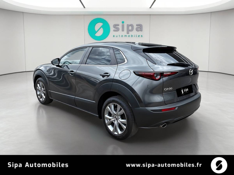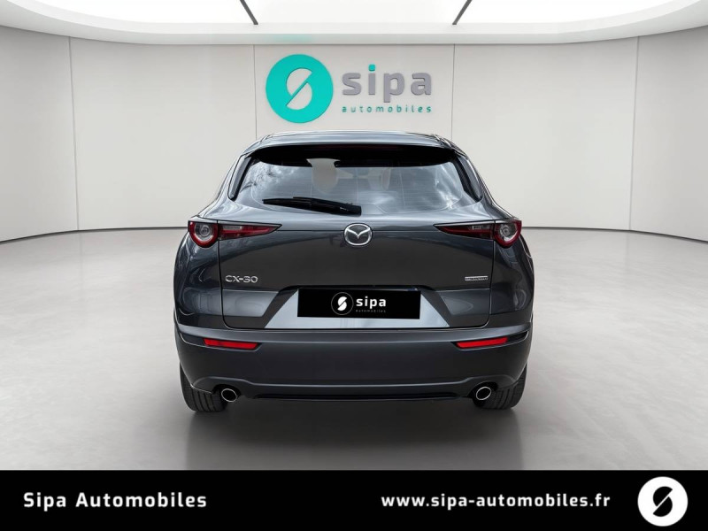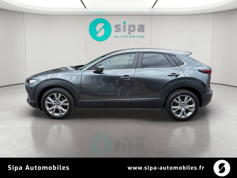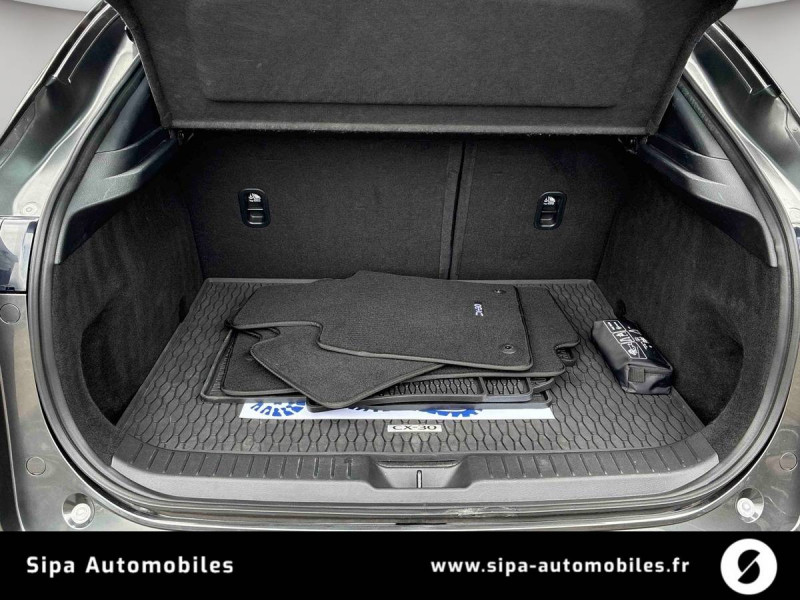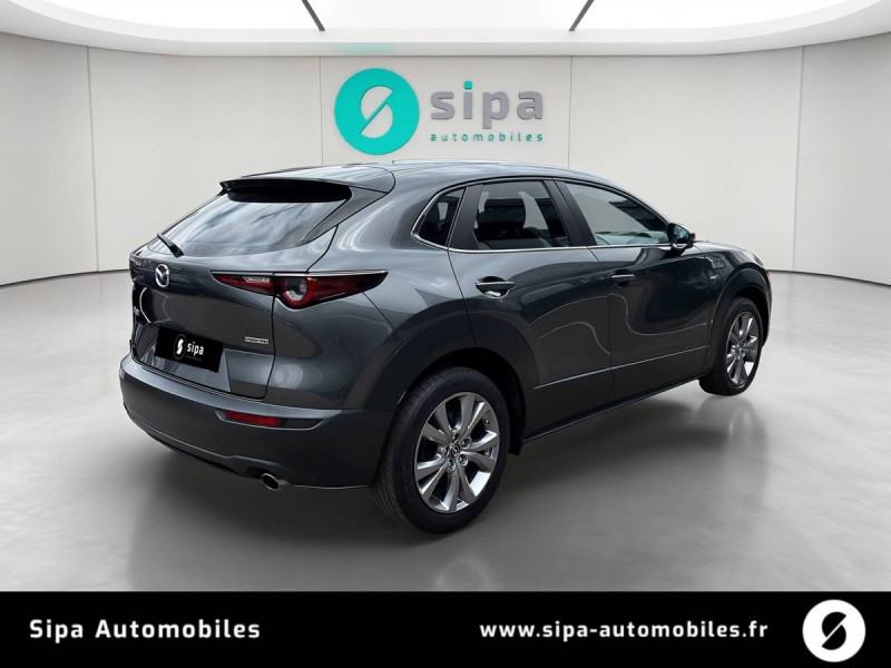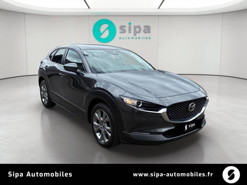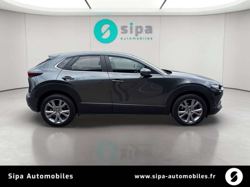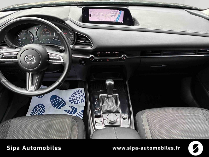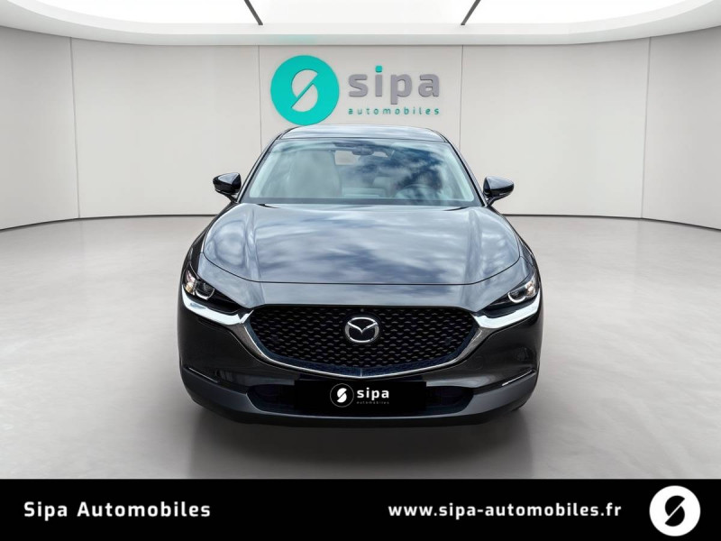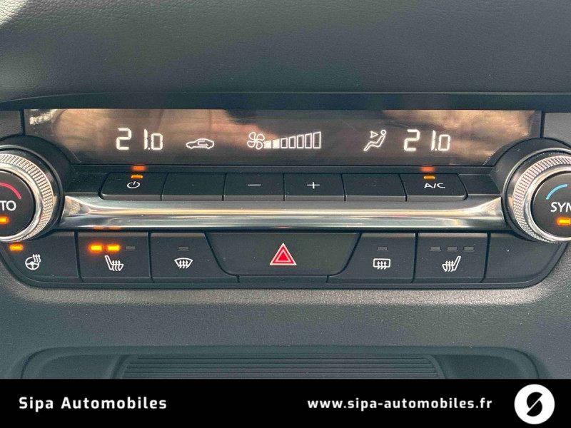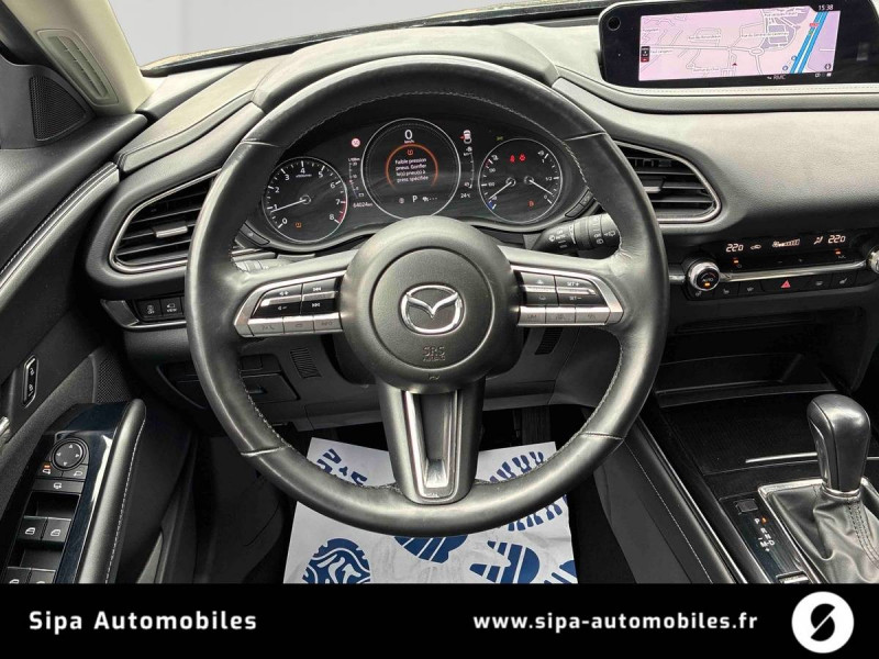 8 HP / Aide au freinage intelligent en marche AR (SCBS AR) / Aide au freinage intelligent en mode urbain (SCBS avancé) avec reconnaissance des piétons / Bas de caisse inférieur AR "Black Gloss" / Boîte automatique 6 rapports Skyactiv-Drive / Bouton de sélection du mode de conduite / Cache bagages / Caméra 360° / Ciel de pavillon gris / Clignotants à impulsion lumineuse "Kodo Turn" / Compteur numérique 7'' avec ordinateur de bord couleur / Démarrage par bouton " Start/Stop" / Eclairage d'ambiance intérieur à LED / Eclairage de plaque AR à LED / Essuie-glaces AV dégivrants / Essuie-glaces avec buse de lave-glace intégrée / Fonction "Coming / Leaving home" / Frein à main électrique (EPB) avec fonction "Autohold" et système de freinage d'urgence / Gestion automatique des feux de route (HBCS) / Grille de calandre plastique mat / Inserts décoratifs de planche de bord et liserés d'aérateurs "Chromé Satiné" / Kit de réparation anti-crevaison / Limiteur de vitesse avec adaptation intelligente de la vitesse (ISA) coupléà la reconnaissance des panneaux de signalisation (TSR) / Moulures superieure des vitres latérales chromées / Ouverture/fermeture intelligente des portes / Pare-soleil avec miroir de courtoisie et éclairage côtés conducteur et passager + rangement côté conducteur / Peinture Arctic White / Phares AV à LED avec fonction antibrouillard intégrée / Porte-gobelets AV / Reconnaissance active d'obstacles mobiles en marche AR (RCTA) avec fonction freinage (RCTB) / Reconnaissance active d'obstacles mobiles en marche AV (FCTA) / Régulateur de vitesse adaptatif Mazda (MRCC) avec fonction Stop&Go et système d'aide au trafic (CTS) / Rétroviseur intérieur photochromatique / Rétroviseurs extérieurs chauffants, réglables électriquement et à rabattage automatique (à l'ouverture et fermeture des portes) / Rétroviseurs extérieurs couleur carrosserie / Rétroviseurs extérieurs photochromatiques / Sellerie tissu noir avec surpiqûres couleur bronze / Siège passager réglable manuellement 6 voies / Signature de calandre chromée / Système audio avec radio AM/FM/DAB / Système "Auto Door Locking" (ADL) / Système Bluetooth avec commandes au volant / Système d'alerte du conducteur (DAA) avec caméra / Système d'appel d'urgence "E-Call" / Système "G-Vectoring Control Plus" (GVC+) / Système Mazda Connect avec écran couleur 8,8'' TFT et système de navigation / Vitres électriques AV et AR avec commande à impulsion pour chaque vitre / Volant chauffant / Volant et pommeau de levier de vitesses gainé de cuir