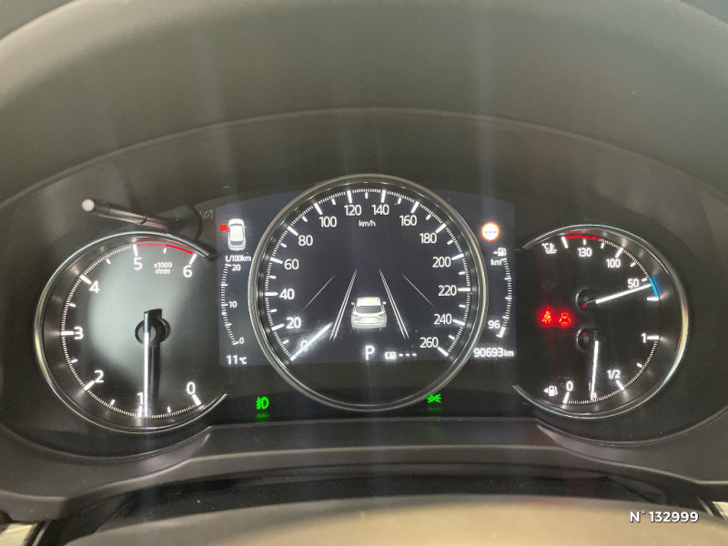 Prise jack auxiliaire + 4 ports USB dont 2 à l'AR / Radio AM/FM et lecteur CD/MP3 + 6HP / Affichage tête haute couleur (ADD) avec reconnaissance des panneaux de signalisation (TSR) / Réglage de l'inclinaison des sièges AR / Régulateur de vitesse adaptatif (MRCC) équipé de la fonction Stop & GO / Régulateur de vitesse et limiteur de vitesse réglable / Repose-genoux et accoudoirs central et latéraux avec revêtement vinyle et surpiqûres / Rétroviseur intérieur photochromatique / Rétroviseurs extérieurs à rabattage automatique (à l'ouverture et fermeture des portes) / Sellerie Cuir Noir perforé / Siège conducteur avec réglage électrique de la longueur, hauteur, profondeur, inclinaison (avec fonction de mémorisation) et des supports lombaires / Siège conducteur avec réglage manuel des supports des lombaires / Siège passager AV avec réglage électrique de la longueur, hauteur et inclinaison / Sièges AR avec accoudoir central contenant 2 porte-gobelets / Sièges AR (droite et gauche) chauffants / Système audio BOSE avec 10 HP / Système Auto Door Locking (ADL) / Système Bluetooth avec commandes au volant / Système d'alerte du conducteur (DAA) / Système d'antiblocage des roues au freinage (ABS) / Système de signalisation d'arrêt d'urgence (ESS) / Système de surveillance des angles morts (BSM) et système de reconnaissance active d'obstacles mobiles en marche AR (RCTA) / Système "G-Vectoring Control" (GVC) / Système MZD Connect avec écran couleur 7", interface à commandes multiples HMI et système de navigation / Vitres électriques AV et AR avec commande à impulsion pour la vitre conducteur / Aide au freinage intelligent en marche AR (SCBS AR) / Aide au freinage intelligent en mode urbain (SCBS avancé) avec détection des piétons / Aide au freinage intelligent (SBS) / Antenne type "Requin" / Avertisseur d'obstacle frontal (FOW) / Cache-bagages "Karakuri" / Caméra 360° / Capteur de pluie (activation automatique des essuie-glaces AV) / Climatisation automatique Bi-zone avec grilles de ventilation à l'AR / Compteur numérique 7" / Décoration de planche de bord "Metal Wood" / Démarrage avec bouton "start" / Détection des piétons de nuit / Eclairage d'ambiance intérieur LED (portes AV et AR, espace aux pieds AV et AR, coffre et miroir de courtoisie) / Eclairage de plaque à LED / Essuie-glace dégivrants / Fonction "Coming/Leaving Home" / Frein à main électrique (EPB) avec fonction "Autohold" et système de freinage d'urgence / Gestion automatique des feux de route (HBCS) / Hayon à ouverture/fermeture électrique / Kit de réparation anti-crevaison / Mode Off -Road (TCS OFF) / Ordinateur de bord couleur TFT- LCD avec alarme de vitesse / Ouverture/fermeture des portes à télécommande / Ouverture/fermeture intelligente des portes / Pare-soleil avec miroir de courtoisie côté conducteur et passager + rangement côté conducteur / Phares à LED avec lave-phares / Volant chauffant / Volant et pommeau de levier gainés de cuir