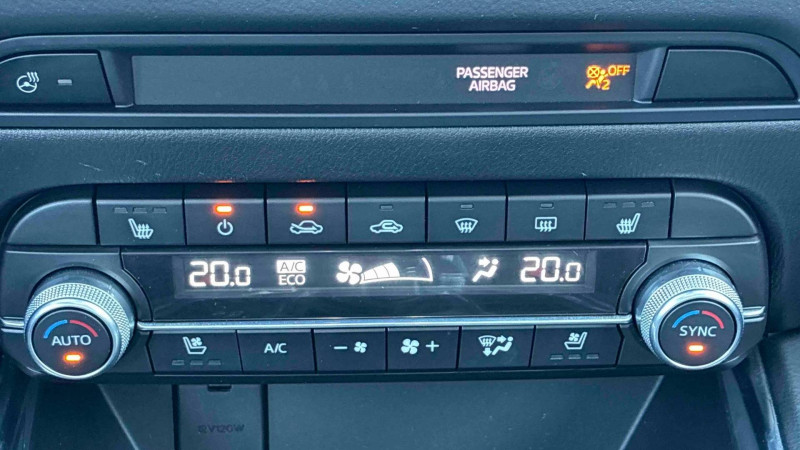 4 ports USB dont 2 à l'AR / 6 HP / Aide au freinage intelligent (SBS) / Antenne type "Requin" / Avertisseur d'obstacle frontal (FOW) / Cache-bagages "Karakuri" / Capteur de pluie (activation automatique des essuie-glaces AV) / Climatisation automatique Bi-zone avec grilles de ventilation à l'AR / Décoration de planche de bord "Metal Wood" / Démarrage avec bouton "start" / Essuie-glace dégivrants / Fonction "Coming/Leaving Home" / Frein à main électrique (EPB) avec fonction "Autohold" / Gestion automatique des feux de route (HBCS) / Hayon à ouverture/fermeture électrique / Jantes alliage 19" Gun Metal bi-ton / Kit de réparation anti-crevaison / Lève-vitres électriques AV et AR avec commande à impulsion pour chaques vitres / Ouverture/fermeture intelligente des portes / Pare-soleil avec miroir de courtoisie et lumière côté conducteur et passager + rangement côté conducteur / Peinture Arctic White / Phares à LED avec lave-phares / Prise jack auxiliaire / Reconnaissance active d'obstacles en marche AR (RCTA) / Réglage de l'inclinaison des sièges AR / Régulateur de vitesse adaptatif (MRCC) équipé de la fonction Stop & GO / Repose genoux avec revêtement vinyle et surpiqûres / Rétroviseur intérieur photochromatique / Rétroviseurs extérieurs à rabattage automatique (à l'ouverture et fermeture des portes) / Sellerie Cuir Noir perforé / Siège conducteur avec réglage électrique de la longueur, hauteur, profondeur, inclinaison (avec fonction de mémorisation) et des supports lombaires / Siège passager AV avec réglage électrique de la longueur, hauteur et inclinaison / Sièges AR avec accoudoir central contenant 2 porte-gobelets / Sièges AR (droite et gauche) chauffants / Sièges AV avec réglage manuel de la longueur, hauteur et inclinaison / Système audio BOSE avec 10 HP / Système Auto Door Locking (ADL) / Système Bluetooth avec commandes au volant / Système d'alerte du conducteur (DAA) / Système d'antiblocage des roues au freinage (ABS) / Système de signalisation d'arrêt d'urgence (ESS) / Système "G-Vectoring Control" (GVC) / Système MZD Connect avec écran couleur 7", interface à commandes multiples HMI et système de navigation / Volant chauffant / Volant et pommeau de levier gainés de cuir