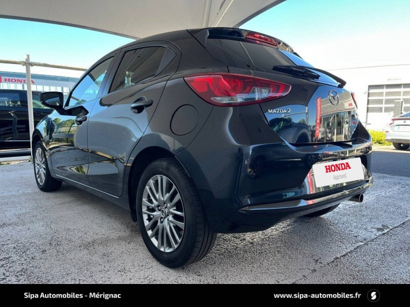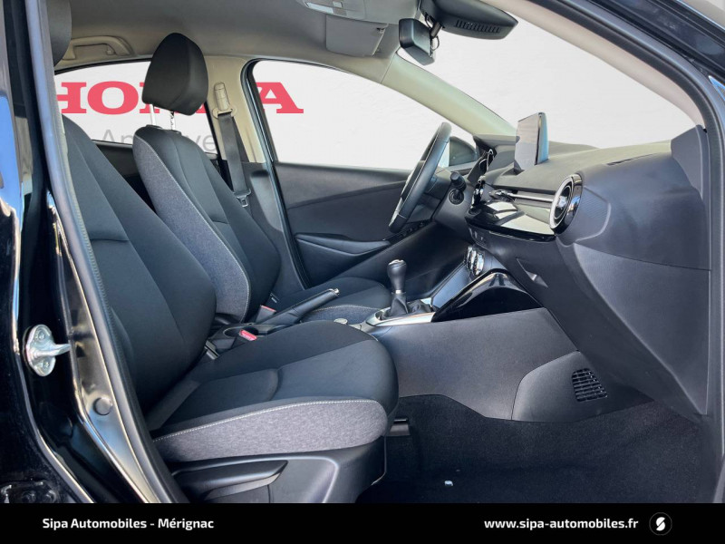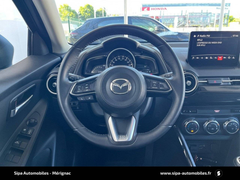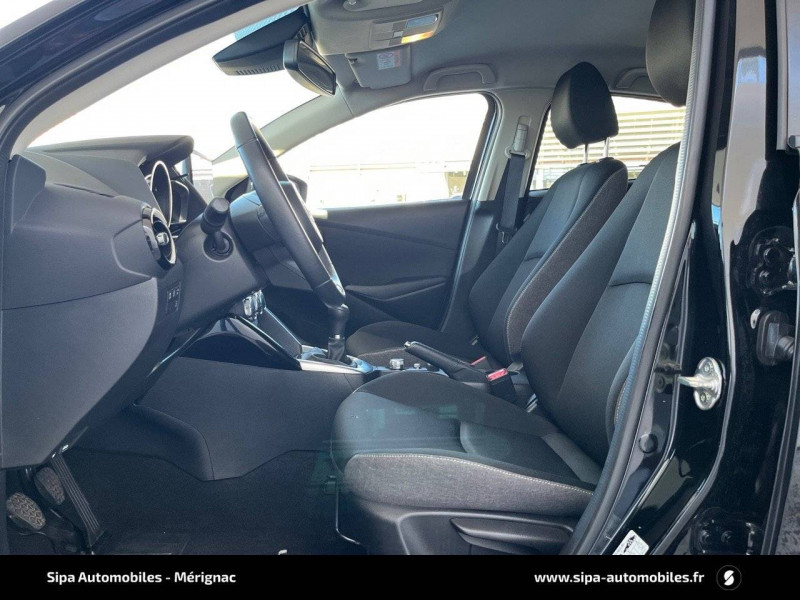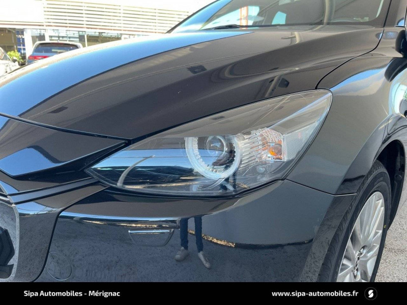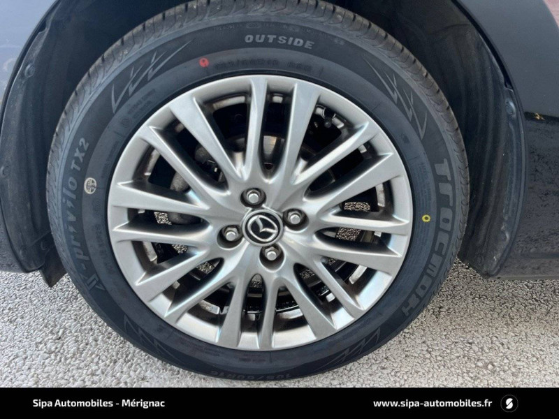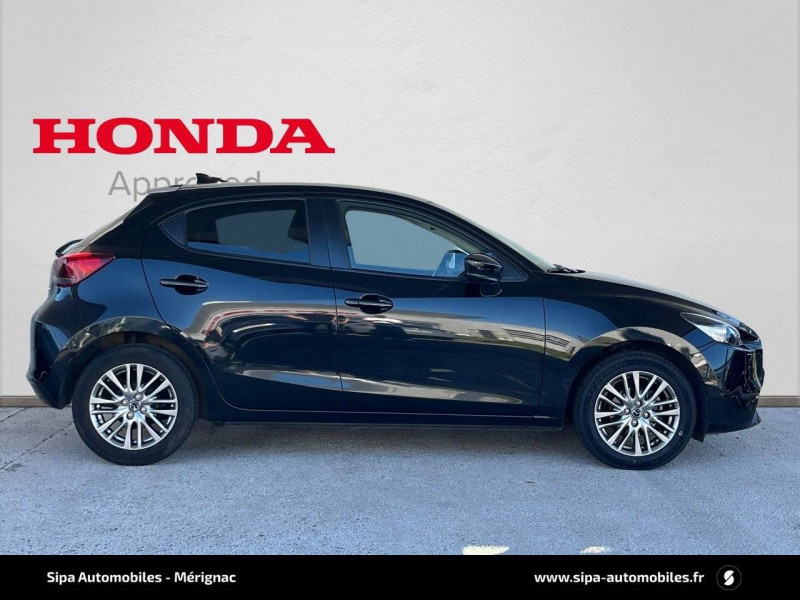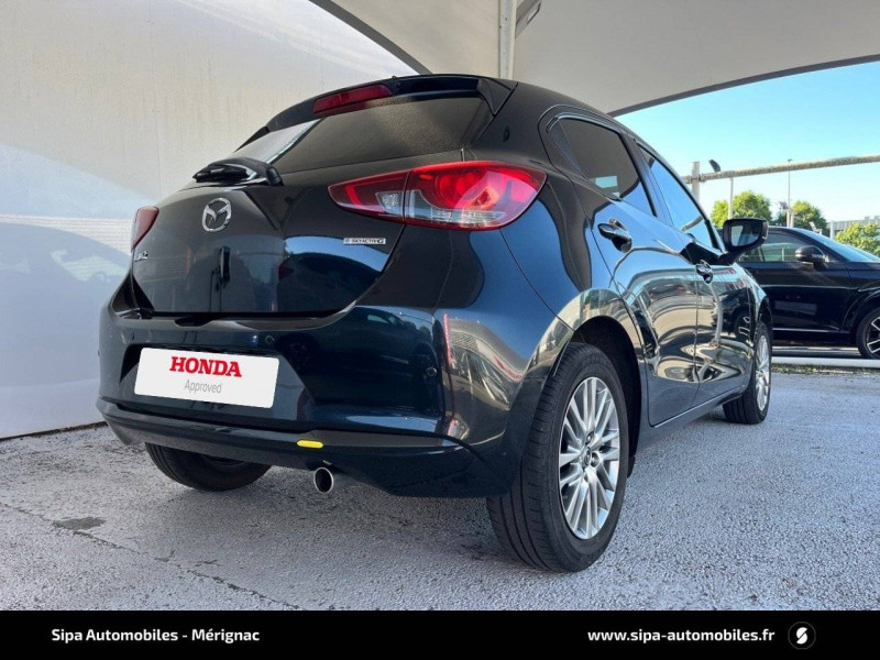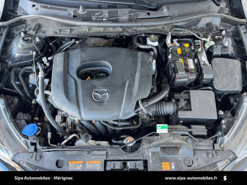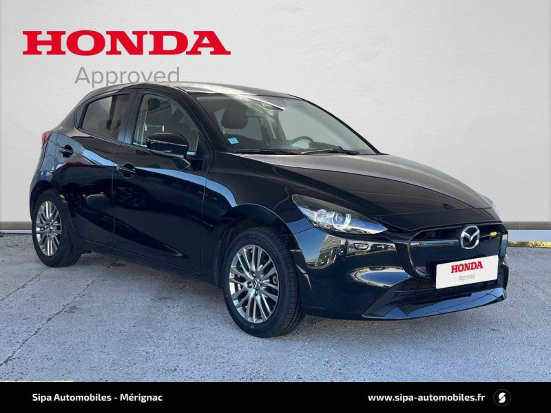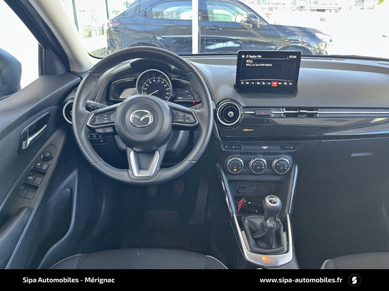 Aide au freinage intelligent en mode urbain (SCBS avancé) avec reconnaissance des piétons / Antenne type "requin" "Black" / Badges de couleur jaune AV et AR / Cache bagages / Coques de rétroviseurs extérieurs "Black" / Démarrage par bouton " Start/Stop" / Essuie-glace AV automatique à détecteur de pluie / Feux de jour automatique / Fonction "Coming / Leaving home" / Grille de calandre et partie inférieure du bouclier AR peints / Interface à commandes multiples HMI avec écran couleur 8" / Ouverture/fermeture des portes à télécommande / Ouverture/fermeture intelligente des portes / Pare-soleil avec miroir de courtoisie / Peinture Arctic White / Poignées de portes extérieures couleur carrosserie / Prise auxiliaire, 12V et USB / Projecteurs à LED avec fonction antibrouillard intégrée / Régulateur et limiteur de vitesse réglable / Rétroviseur intérieur photochromatique / Sellerie en tissu noir avec surpiqûres / Siège AV avec réglage manuel de la longueur et inclinaison / Siège conducteur et passager avec réglage manuel de la hauteur / Signature lumineuse spécifique à LED / Sortie d'échappement chromée / Système audio avec radio numérique DAB, 6 HP et commandes au volant / Système Bluetooth avec commandes au volant / Système d'alerte d'angles morts (BSM) avec reconnaissance active d'obstacles mobiles en marche AR (RSTA) / Système d'alerte de franchissement de ligne (LDWS) avec maintien de trajectoire (LKA) / Système d'antiblocage des roues au freinage (ABS) / Système de signalisation d'arrêt d'urgence (ESS) / Système "G-Vectoring Control Plus" (GVC+) / Système Mazda M Hybrid / Volant chauffant / Volant et pommeau de levier de vitesses gainé de cuir