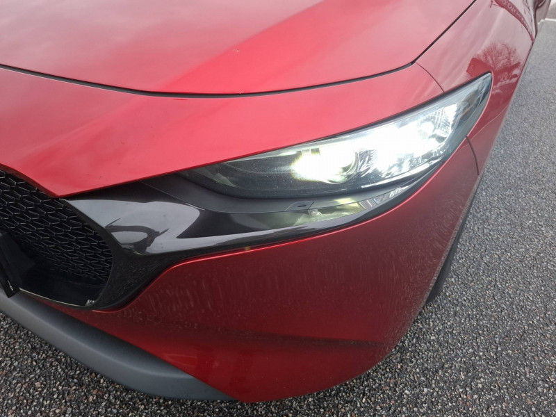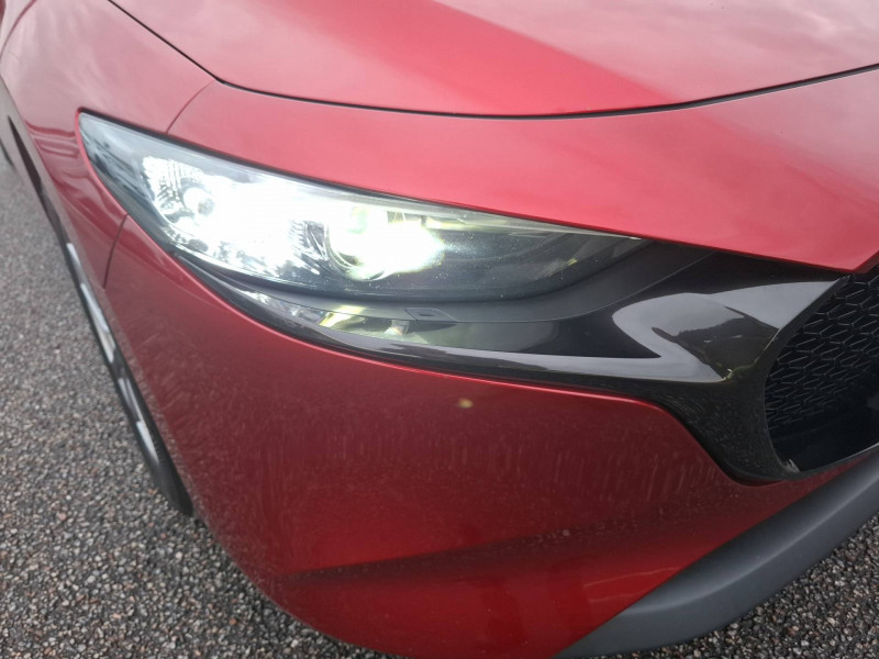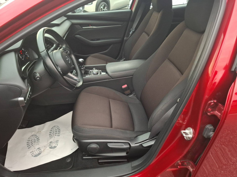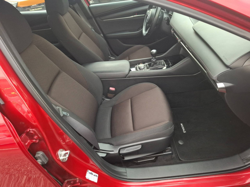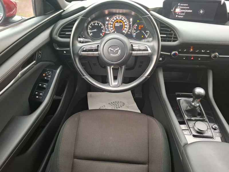 Aide au freinage intelligent en mode urbain (SCBS avancé) avec reconnaissance des piétons / Bas de caisse inférieur AR "Black Gloss" / Cache bagages / Ciel de pavillon noir / Compteur numérique 7'' avec ordinateur de bord couleur / Démarrage par bouton " Start/Stop" / Eclairage d'ambiance intérieur à LED / Eclairage de plaque AR à LED / Essuie-glaces avec buse de lave-glace intégrée / Fonction "Coming / Leaving home" / Frein à main électrique (EPB) avec fonction "Autohold" et système de freinage d'urgence / Gestion automatique des feux de route (HBCS) / Grille de calandre "Black Gloss" / Inserts décoratifs de planche de bord et liserés d'aérateurs "Silver" / Kit de réparation anti-crevaison / Limiteur de vitesse avec adaptation intelligente de la vitesse (ISA) coupléà la reconnaissance des panneaux de signalisation (TSR) / Moulures superieure des vitres latérales chromées / Pare-soleil avec miroir de courtoisie et éclairage côtés conducteur et passager + rangement côté conducteur / Peinture Arctic White / Phares à LED avec fonction antibrouillard intégrée / Porte-gobelets AV / Reconnaissance active d'obstacles mobiles en marche AR (RCTA) / Régulateur de vitesse adaptatif (MRCC) et aide au freinage intélligent (SBS) / Rétroviseurs extérieurs chauffants, réglables électriquement et à rabattage automatique (à l'ouverture et fermeture des portes) / Rétroviseurs extérieurs couleur carrosserie / Sellerie tissu noir avec surpiqûres couleur bronze / Siège passager réglable manuellement 6 voies / Signature de calandre "Dark Metallic" / Système audio avec radio AM/FM/DAB et 8 haut-parleurs / Système "Auto Door Locking" (ADL) / Système Bluetooth avec commandes au volant / Système d'alerte du conducteur (DAA) / Système d'appel d'urgence "E-Call" / Système de micro-hybridation Mazda M Hybrid / Système "G-Vectoring Control Plus" (GVC+) / Système Mazda Connect avec écran couleur 8,8'' TFT et système de navigation / Volant et pommeau de levier de vitesses gainé de cuir