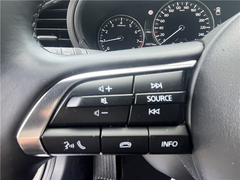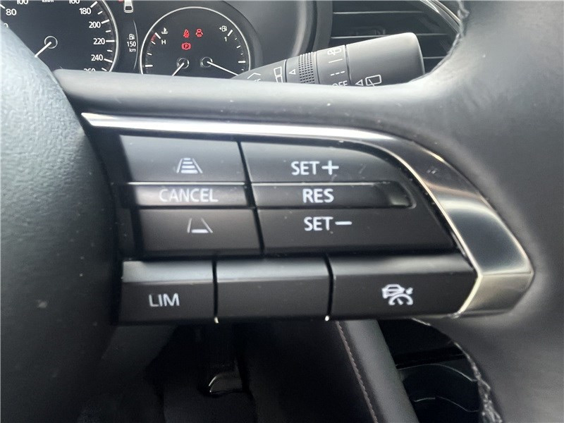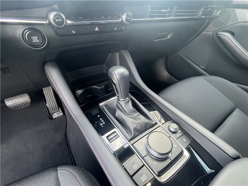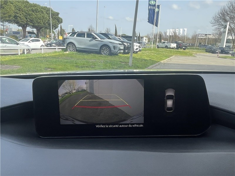 2 prises USB-C et 1 prise 12 V / Aide au freinage intelligent (SBS) avec reconnaissance des piétons / Alerte de franchissement de ligne (LDWS) avec système de maintien de trajectoire (LKA) / Bas de caisse inférieur AR "Black Gloss" / Boîte automatique 6 rapports / Cache bagage dans le coffre / Ciel de pavillon noir / Clignotants à impulsion lumineuse "Kodo Turn" / Compteur numérique 7'' avec ordinateur de bord / Contrôle de la traction (TCS) / Démarrage par bouton " Start/Stop" / Eclairage d'ambiance intérieur à LED / Eclairage de plaque AR à LED / Fonction "Coming / Leaving home" / Frein à main électrique (EPB) avec fonction "Autohold" et système de freinage d'urgence / Gestion automatique des feux de route (HBC) / Gestion automatique des feux de route (HBCS) / Grille de calandre "Black Gloss" / Inserts décoratifs de planche de bord et liserés d'aérateurs "Silver" / Kit de réparation anti-crevaison / Limiteur de vitesse avec adaptation intelligente de la vitesse (ISA) coupléà la reconnaissance des / Montants de portes extérieurs "Piano Black" / Moulures inférieures de vitres chromées / Ouverture/fermeture intelligente des portes / Pare-soleil avec miroir de courtoisie et éclairage côtés conducteur et passager + rangement côté / Phares AV à LED avec fonction antibrouillard intégrée / Porte-gobelets AV / Reconnaissance active d'obstacles mobiles en marche AR (RCTA) / Régulateur de vitesse adaptatif Mazda (MRCC) et aide au freinage intélligent (SBS) / Rétroviseur intérieur photochromatique / Sellerie tissu noir avec surpiqûres rouges / Services connectés MyMazda avec fonction allumage des feux / Siège passager réglable manuellement 6 voies / Signature de calandre chromée / Signature de calandre "Dark Metallic" / Système "Auto Door Locking" (ADL) / Système Bluetooth avec commandes au volant / Système d'alerte du conducteur (DAA) / Système d'appel d'urgence "E-Call" avancé / Système de micro-hybridation Mazda M Hybrid / Système de reconnaissance vocale Alexa / Système "G-Vectoring Control Plus" (GVC+) / Système Mazda Connect avec écran couleur 10,25'' TFT et système de navigation connecté / Vitres électriques AV et AR avec commande à impulsion pour chaque vitre / Volant et pommeau de levier de vitesses en cuir