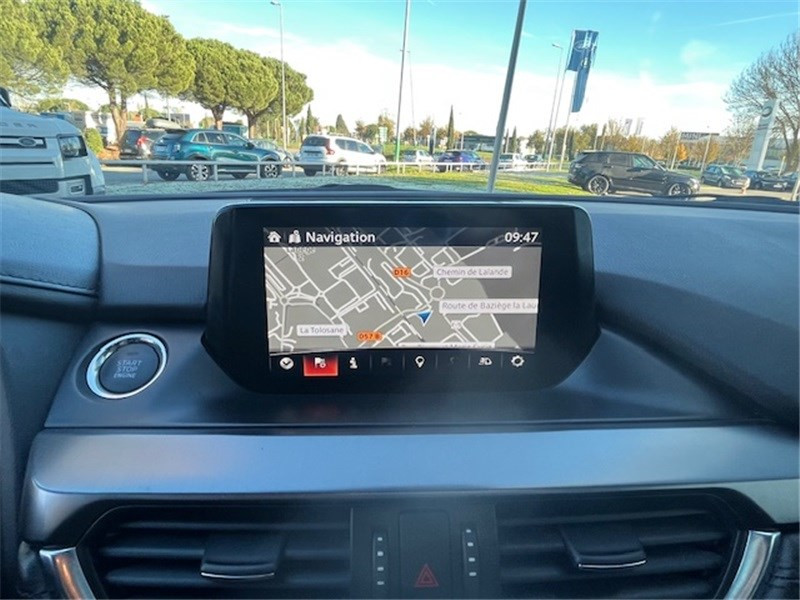 Accoudoir central coulissant entre les sièges AV / Aide au freinage intelligent en mode urbain avec reconnaissance des piétons (SCBS) / Climatisation automatique bi-zone avec grilles de ventilation à l'AR / Démarrage par bouton " Start" / Double sortie d'échappement / Essuie-glace AV automatique à détecteur de pluie / Feux de jour automatique / Fonction "Coming / Leaving home" / Frein à main électrique / Kit de réparation anticrevaison / Ouverture/fermeture des portes à télécommande / Pare-soleil avec miroir de courtoisie et éclairage côtés conducteur et passager + rangement côté conducteur / Phares à LED avec système AFLS (Adaptative Front Lighting System) / Phares anti-brouillards à LED avec contour Silver / Rétroviseur intérieur photochromatique / Siège conducteur réglable en longueur, en hauteur, inclinaison avec réglage manuel des supports lomb aires / Siège passager réglable en longueur, en hauteur et en inclinaison / Signature visuelle spécifique sur les feux AR à LED / Système audio avec radio AM/FM, lecteur CD/MP3, prise "jack" auxiliaire et 2 ports USB / Système d'alerte de véhicule en approche (RVM) er de détection d'obstacle en marche AR (RCTA) / Système de signalisation d'arrêt d'urgence (ESS) / Système MZD Connect + Interface à commandes multiples HMI avec écran couleur 7" / Vitres électriques AV et AR avec commande à impulsion pour la vitre conducteur / Volant et pommeau de levier de vitesses gainé de cuir