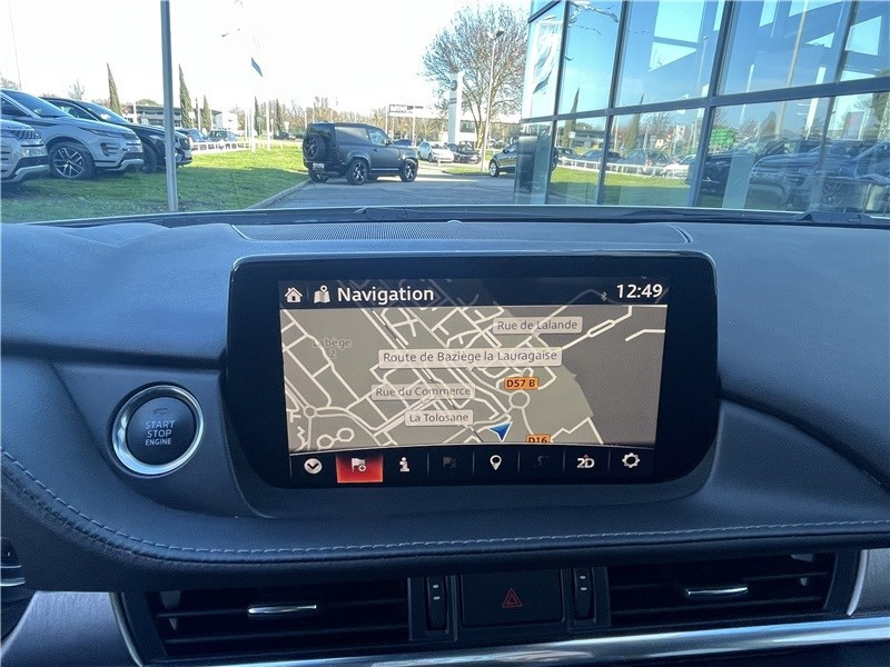 Affichage tête haute projeté (ADD) avec reconnaissance des panneaux de signalisation (TSR) / Aide au freinage intelligent en mode urbain (SCBS avancé) avec reconnaissance des piétons / Antenne type "requin" / Assistance automatique de la position de conduite / Barres de toit couleur argent / Cache bagages Karakuri / Climatisation automatique bi-zone avec grilles de ventilation à l'AR / Démarrage par bouton " Start" / Double sortie d'échappement / Essuie-glace AV automatique à détecteur de pluie / Essuie-glaces avec fonction dégivrage / Feux de jour automatique / Fonction "Coming / Leaving home" / Frein à main électrique (EPB) avec fonction "Autohold" / Kit de réparation anti-crevaison / Limiteur de vitesse avec adaptation intelligente de la vitesse (ISA) / Ouverture/fermeture des portes à télécommande / Pare-soleil avec miroir de courtoisie et éclairage côtés conducteur et passager + rangement côté conducteur / Phares à LED avec lave-phares et antibrouillard intégrés / Phares à LED avec système (AFLS) (Adaptative Front Lighting System) / Prise 12V dans le coffre / Prise Jack auxiliaire / Régulateur de vitesse adaptatif (MRCC) et aide au freinage intélligent (SBS) / Rétroviseur intérieur photochromatique / Siège conducteur réglable en longueur, en hauteur, inclinaison avec réglage manuel des supports lomb aires / Siège passager réglable en longueur, en hauteur et en inclinaison / Signature visuelle spécifique sur les feux AR à LED / Système audio avec radio AM/FM, lecteur CD/MP3, 6 HP / Système d'antiblocage des roues au freinage (ABS) / Système de signalisation d'arrêt d'urgence (ESS) / Système de surveillance des angles morts (BSM) et reconnaissance active d'obstacles mobiles en marche AR (RCTA) / Système "G-Vectoring Control" (GVC) / Système MZD Connect + Interface à commandes multiples HMI avec écran couleur 8" / Volant et pommeau de levier de vitesses en cuir