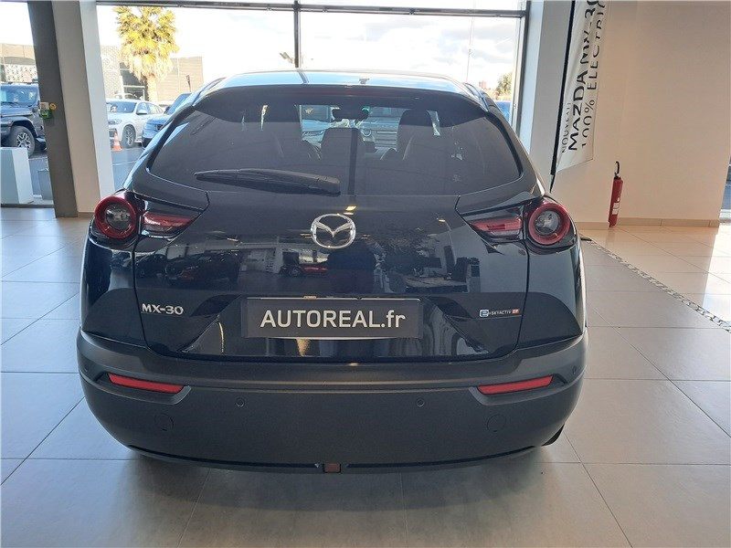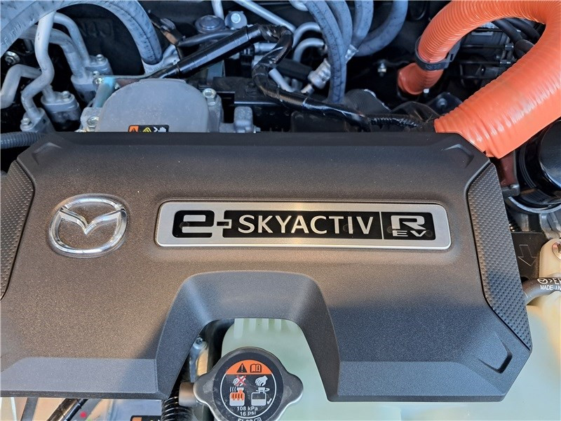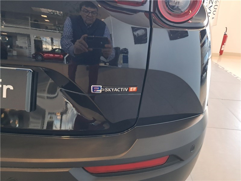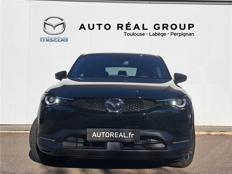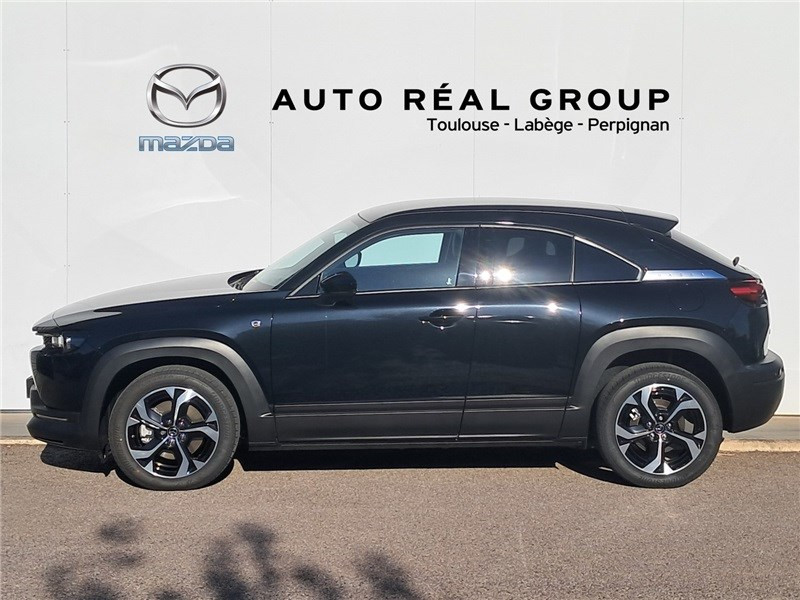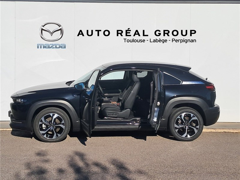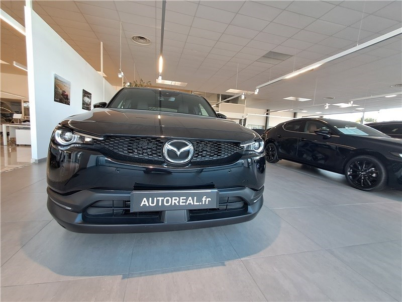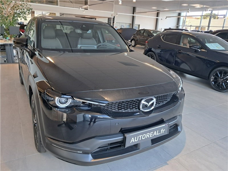 3 modes de conduite (EV / Normal / Charge) / Adaptateur CCS pour charge rapide en courant continu / Aide au freinage intelligent (SBS) avec reconnaissance des piétons et fonction de freinage en intersection / Badge e-Skyactiv R-EV à l'AR / Badge moteur rotatif à l'AV / Bouton "Start" avec cerclage chromé / Câble de recharge Type 2 / Mode 2 (recharge sur prise domestique renforcée) / Câble de recharge Type 2 / Mode 3 (wallbox) / Cache bagages / Charge DC possible jusqu'à 36 kW / Chargeur embarqué 11 kW triphasé / Ciel de pavillon noir / Clignotants "Kodo Turn" / Coques de rétroviseurs extérieurs noirs / Démarrage par bouton " Start" / Eclairage d'ambiance intérieur à LED / Eclairage de plaque AR à LED / Essuie-glaces AV dégivrants / Essuie-glaces avec buse de lave-glace intégrée / Fonction de mémorisation des réglages des rétroviseurs extérieurs et de l'affichage tête haute (ADD) / Frein à main électrique (EPB) avec fonction "Autohold" et système de freinage d'urgence / Inserts de console centrale en liège véritable / Inserts des poignées de portes en liège véritable / Jantes alliage 18" "Black Machining" / Kit de réparation anti-crevaison / Montants de portes "Piano Black" avec insert "Satiné" sur montants AR / Ouverture/fermeture intelligente des portes / Palettes au volant (niveaux de freinage régéneratif) / Pare-soleil avec miroir de courtoisie + rangement côté conducteur / Phares à LED adaptatifs (ALH) avec signature lumineuse spécifique / Phares AV à LED avec fonction antibrouillard intégrée / Poignée de boîte à gants chromée / Portes "Freestyle" / Prise 1500 W dans le coffre / Rétroviseur intérieur photochromatique (sans cadre) / Rétroviseurs extérieurs chauffants, réglables électriquement et à rabattage automatique (à l'ouverture et fermeture des portes) et photochromatique côté conducteur / Sellerie "Urban Expression" / Siège conducteur avec réglages électriques 8 voies avec fonction de mémorisation / Siège passager réglable manuellement 6 voies / Système "Auto Door Locking" (ADL) / Système "G-Vectoring Control Plus" associé au moteur électrique (e-GVC+) / Volant avec cerclage chromé / Volant chauffant / Volant et pommeau de levier de vitesses gainé de cuir