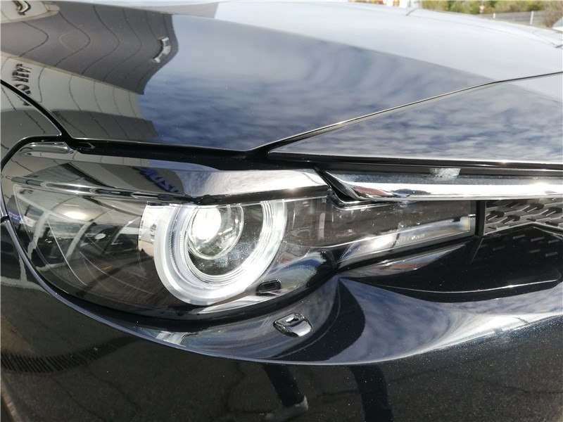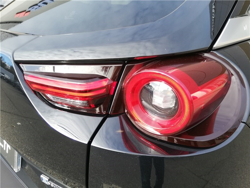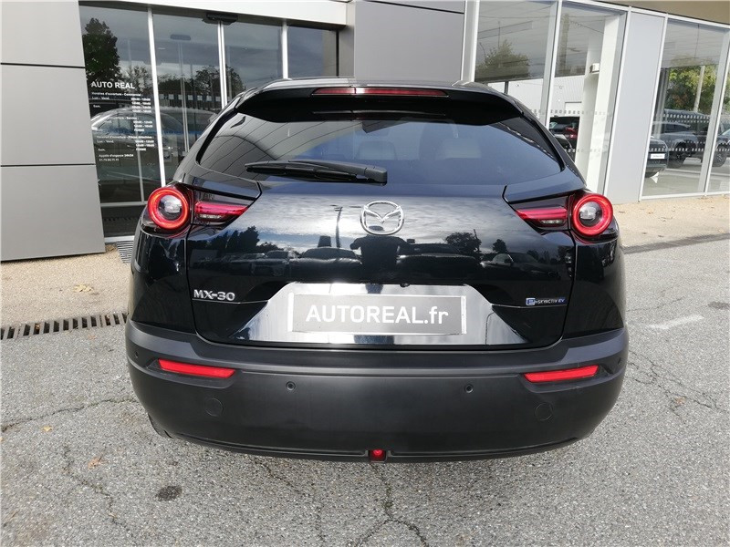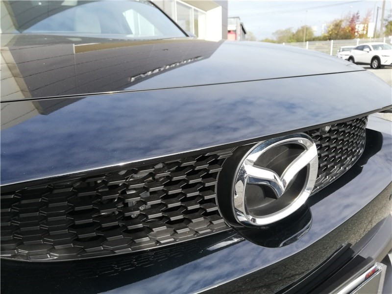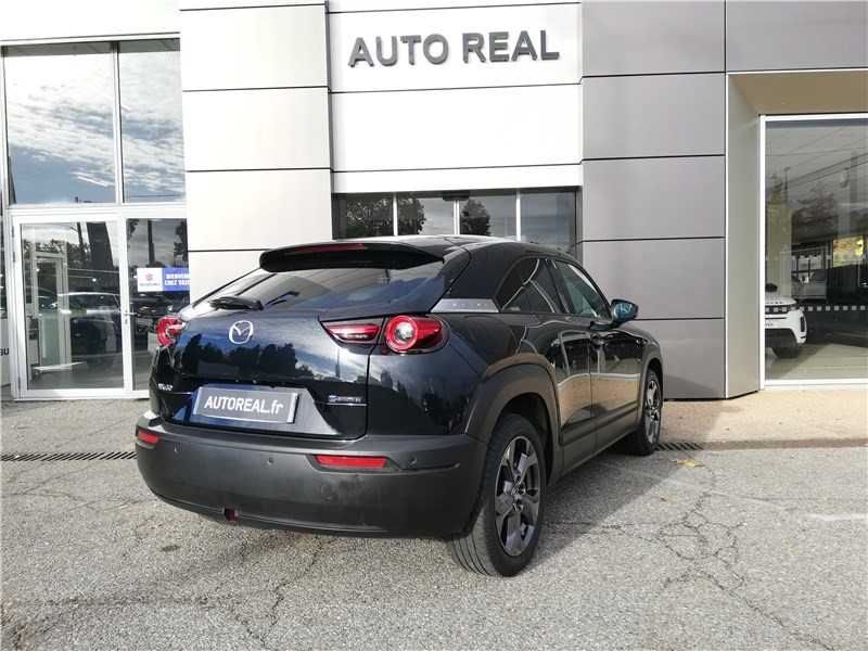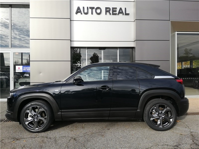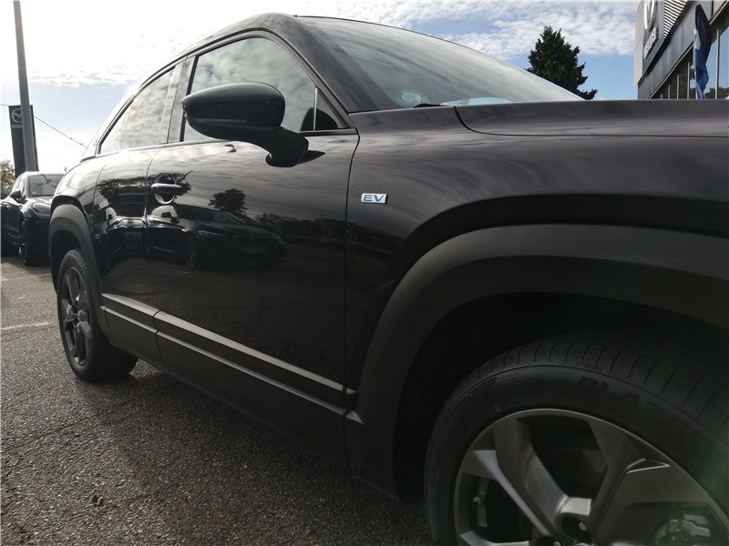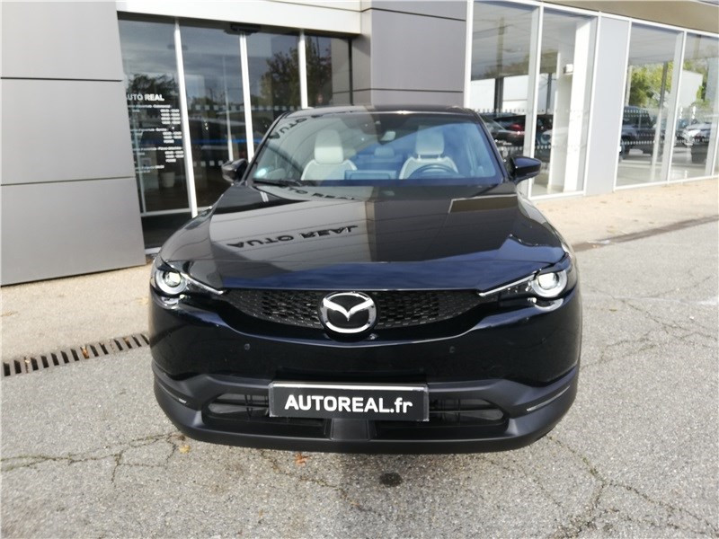 Adaptateur CCS pour charge rapide en courant continu / Aide au freinage intelligent (SBS) avec reconnaissance des piétons et fonction de freinage en / Bouton "Start" avec cerclage chromé / Câble de recharge Type 2 / Mode 2 (recharge sur prise domestique renforcée) / Câble de recharge Type 2 / Mode 3 (wallbox) / Cache bagages / Ciel de pavillon noir / Clignotants "Kodo Turn" / Compteur numérique 7'' avec ordinateur de bord couleur / Coques de rétroviseurs extérieurs noirs / Démarrage par bouton " Start/Stop" / Eclairage d'ambiance intérieur à LED / Eclairage de plaque AR à LED / Ecran secondaire tactile 7" pour réglages de la climatisation / Emulateur de son de moteur thermique / Essuie-glaces AV dégivrants / Essuie-glaces avec buse de lave-glace intégrée / Fonction "Coming / Leaving home" / Fonction de réglage automatique du siège conducteur, de l'affichage tête haute et des rétroviseurs / Frein à main électrique (EPB) avec fonction "Autohold" et système de freinage d'urgence / Inserts de console centrale en liège véritable / Inserts des poignées de portes en liège véritable / Kit de réparation anti-crevaison / Limiteur de vitesse avec adaptation intelligente de la vitesse (ISA) coupléà la reconnaissance des / Montants de portes "Piano Black" avec insert "Satiné" sur montants AR / Ouverture/fermeture intelligente des portes / Pack Premium / Palettes au volant (pour ajuster le niveau de décélération) / Pare-soleil avec miroir de courtoisie + rangement côté conducteur / Phares à LED adaptatifs (ALH) avec signature lumineuse spécifique / Phares AV à LED avec fonction antibrouillard intégrée / Poignée de boîte à gants chromée / Pompe à chaleur / Portes "Freestyle" / Reconnaissance active d'obstacles mobiles en marche AR (RCTA) / Rétroviseur intérieur photochromatique (sans cadre) / Rétroviseurs extérieurs chauffants, à rabattage automatique (à l'ouverture et fermeture des portes) / Sellerie "Modern Confidence" / Siège conducteur avec réglages électriques 8 voies avec fonction de mémorisation / Siège passager réglable manuellement 6 voies / Système audio avec radio AM/FM/DAB et 8 haut-parleurs / Système "Auto Door Locking" (ADL) / Système Bluetooth avec commandes au volant / Système d'alerte du conducteur (DAA) / Système d'appel d'urgence "E-Call" / Système de surveillance des angles morts (BSM) avec correction de trajectoire automatique (BSA) / Système "G-Vectoring Control Plus" associé au moteur électrique (e-GVC+) / Système Mazda Connect avec écran couleur 8,8'' TFT et système de navigation / Volant avec cerclage chromé / Volant chauffant / Volant et pommeau de levier de vitesses en cuir