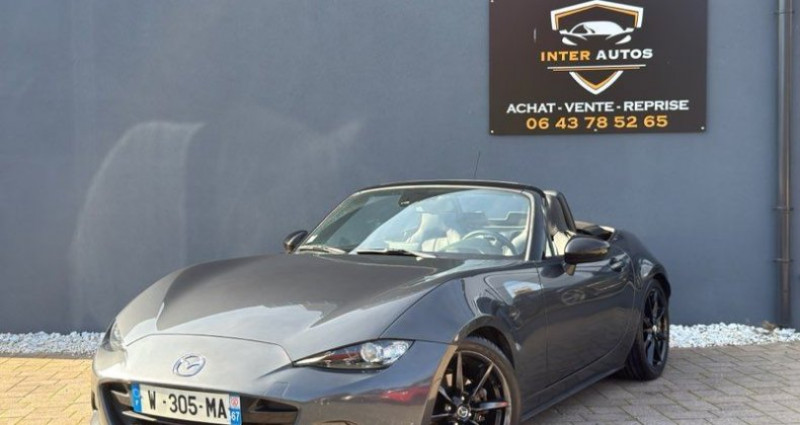 Mazda Mx5 Nd 2.0 skyactiv 160 ch technology bvm, cabriolet, 9 cv, 2 portes mise en circulation: 04/2016 Kilométrage : 135000 OPTIONS ET ÉQUIPEMENTS : Audio - Télécommunications : Tableau de bord cuir Avertisseur franchissement de ligne Siège chauffant Intérieur cuir sur piqûre rouge Système de navigation Téléphone Bluetooth? Radar de stationnement arrière Phare xénon LED Démarrage sans clés Sièges cuir noir surpiqûres rouge Ecran tactile GPS Radar de recul Climatisation Avertisseur de franchissement de ligne Châssis sport Détecteur de pluie Limiteur de vitesse Régulateur de vitesse Système de démarrage sans clés Rétroviseurs dégivrants Rétroviseurs électriques - fermeture centralisée Ordinateur de bord Pack cuir Accoudoir central Rétroviseur interieur electrochrome Volant multifonctions Jantes alliage, 17 pouces Commande vocale Prise USB Prise ?AUX Porte Goblets Isofix Double. Des clés ABS ESP S.R S. Airbag …? Véhicule en très bon état, rien à prévoir Tous nos véhicules bénéficient d'une garantie (moteur ,pont ,boite) Extension de Garantie de 12 à 36 mois Contrôle technique moins de 6 mois Échange , Reprise ou achat de votre ancien véhicule est possible Pour les démarches administratives veuillez vous munir des pièces suivantes - Pièces d’identité - Permis de conduire - Justificatif de domicile moins de 6 mois Sauf erreurs de saisies Pour plus d'infos veuillez nous joindre au [Coordonnées masquées] OU [Coordonnées masquées] Inter autos 25 Rue de Haguenau 67240 Bischwiller Visible sur RDV