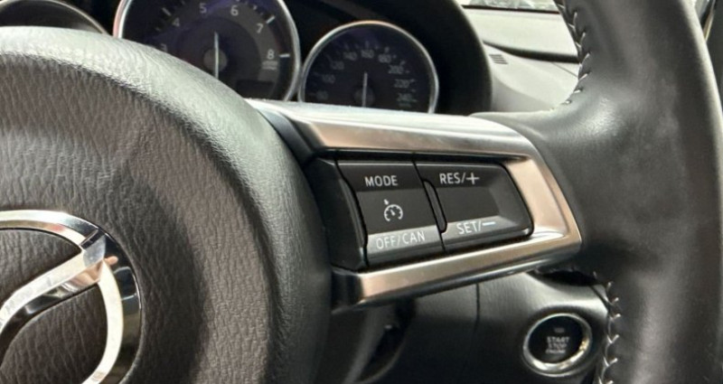 Cylindrée : 1496 cm3 EQUIPEMENTS Porte/gobelets, Vitres électriques, Contrôle dynamique de stabilité (DSC), Répartiteur électronique de freinage (EBD), Système de signalisation d'arrêt d'urgence (ESS), Démarrage par bouton Start/Stop, Rétroviseurs extérieurs chauffants et réglables électriquement, Revêtement d'arceau Piano black, Système de récupération d'énergie au freinage i/ELOOP, Système de surveillance de pression de pneus (TPMS), Système d'antidémarrage, Commandes audio et Bluetooth au volant, Ouverture/fermeture des portes à télécommande, Capot actif (protection des piètons), Apple CarPlay sans fil, Système d'antiblocage des roues au freinage (ABS), Pommeau de levier de vitesses et levier de frein à main gainés de cuir, Système de stabilité en courbe (KPC), Airbags frontaux et latéraux, Aide au freinage d'urgence (EBA), Système de coupure et redémarrage automatique du moteur à l'arrêt i/Stop, Antipatinage électronique (TCS), Assistance au démarrage en côte (HLA), Garnitures centrales de portes cuir vinyle noir avec surpiqûres grises, Jantes 16 Black Metallic, Pare/soleil côtés conducteur et passager avec miroir de courtoisie et range/ticket, Sièges tissu noir avec surpiqûres grises, Volant réglable en hauteur et en profondeur (sur 3 cm), Système MZD Connect avec écran couleur 7 et interface à commandes multiples HMI, Poignées de portes extérieures couleur carrosserie, Siège AV avec réglage manuel de la longueur et inclinaison, Fonction Coming / Leaving home, Verrouillage centralisé des portes, Feux de jour à LED, Régulateur et limiteur de vitesse, Garnitures supérieures de portes couleur carrosserie, Poignées de portes intérieures couleur argent brillant, Siège conducteur avec réglage manuel de la profondeur, Volant gainé de cuir avec branches couleur argent brillant, Radio AM/FM avec 6 hauts parleurs, Prise AUX et 2 ports USB, Radio numérique DAB, Rétroviseurs extérieurs Piano Black, Système Bluetooth, Climatisation manuelle, Peinture métallisée Soul Red Crystal,