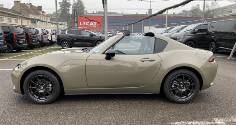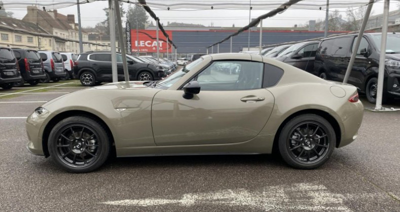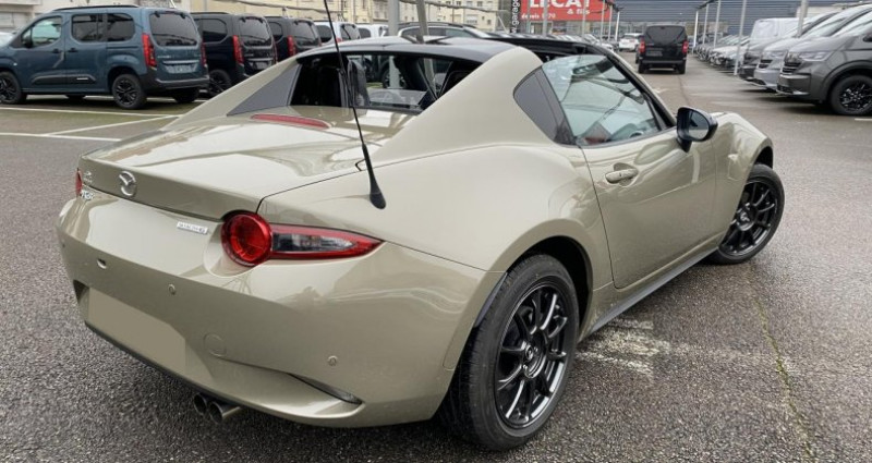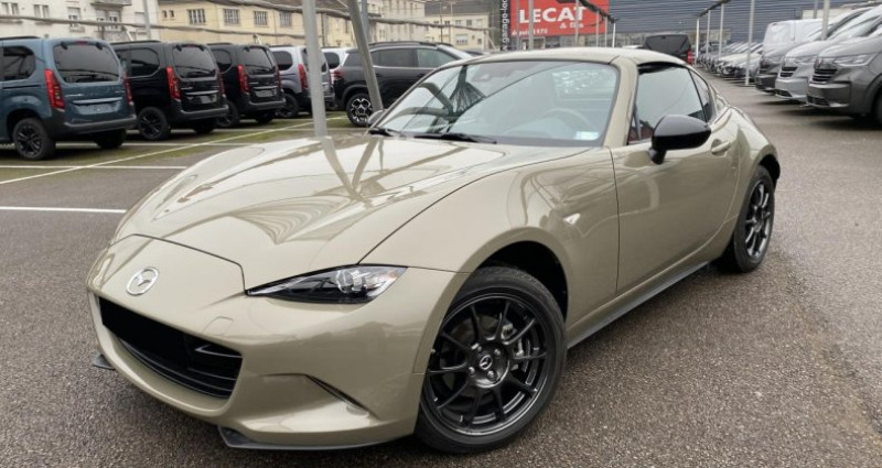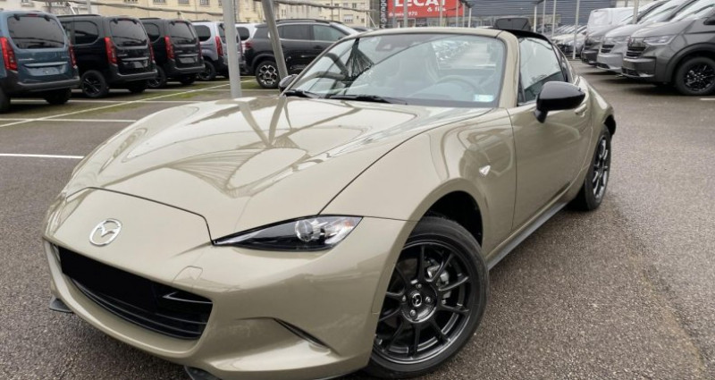 ======= OPTIONS ======= Peinture Zircon Zand ======= EQUIPEMENTS DE SERIE ======= Aide au stationnement arrière Apple Carplay sans fil Android Auto Caméra de recul Climatisation manuelle Commandes audio et Bluetooth au volant Contrôle de pression des pneus ( TPMS ) Contrôle dynamique de stabilité (DSC) et antipatinage électronique (TCS) Jantes en alliage Rays 16 Ordinateur de bord avec écran couleur LCD 4,6 Ordinateur de bord avec alarme de vitesse Ouverture fermeture des portes à télécommande Ouverture fermeture intelligente des portes Phares avant à LED Régulateur et limiteur de vitesse Rétroviseurs extérieurs chauffants et réglables électriquement Reconnaissance active d'obstacles mobiles en marche arrière (RCTA) Sièges conducteur et passager avant avec réglage manuel de la longueur et inclinaison Sièges cuir noir avec surpiqûres grises Sièges Recaro Système Bluetooth Système de surveillance d'angle mort Système MZD Connect avec écran couleur 7 et interface à commandes multiples HMI Toit rigide amovible couleur carrosserie Vitres électriques Volant gainé de cuir avec branches couleur « Argent brillant » Volant réglable en hauteur et en profondeur Nb. Vitesses : 6 Conso Mixte : l/100
