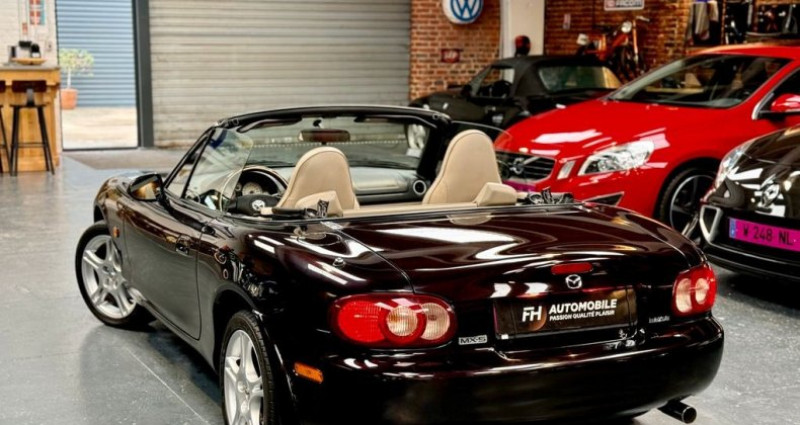 Mazda MX-5 NBFL Memories de deuxième main, suivie et dans une superbe condition de conservation. Véhicule vendu avec une garantie mécanique de 6 mois Motorisation: 1.6L 4 cylindres en ligne atmosphérique essence Puissance fiscale: 7 cv Puissance Din: 110 ch Mise en circulation: 02/2005 Kilométrage d’origine certifié: 104 975 kms (sur factures, carnet d’entretien et vérifications faites) Nombre d’anciens propriétaires: 2 Nombre de portes: 2 Nombre de places: 2 Boite de vitesses: Manuelle 5 vitesses Equipements: Extérieur et Châssis Jantes alu 16 Lunette arrière dégivrante Peinture métallisée Rétroviseurs électriques Sorties d'échappement chromées Intérieur Allume cigare Baguettes de seuil de porte alu Direction assistée Fermeture électrique Pack bois Prise 12V Sièges chauffants Système audio CD Tapis de sol Vitres électriques Volant 3 branches bois Compteurs blanc Intérieur cuir Sécurité 3e feu stop ABS Airbags Projecteurs antibrouillard Autre Carnet d'entretien Factures d'entretien Non fumeur Roue de secours galette Configuration Série limitée Memories III Coloris Radiant Ebony Sellerie cuir beige Volant en bois Nardi à trois branches avec cerclage blanc, pommeaux de levier de vitesses et de frein à main en bois Entretien/état général: Cette Mazda MX-5 NBFL Memories est dans une excellente condition de conservation. Sa carrosserie, dans son coloris Radiant Ebony, est en très bel état. La peinture métallisée a gardé toute sa profondeur. Les jantes sont également dans une condition proche du neuf et ne présentent pas de défauts ou de frottements. L’intérieur, cuirs, boiseries, tissus et plastiques, affiche une très bonne conservation. Le compartiment moteur et l’ensemble du châssis, traverses, trains roulants, longerons, bas de caisses et passages de roues sont en excellent état et ne montrent pas de corrosion. Suivie, cette MX-5 dispose de son carnet d’entretien. Une révision comprenant le remplacement de la distribution est effectuée pour la vente. Contrôle technique de février 2026. Garantie professionnelle de minimum 6 mois. Possibilité d’extension de garantie sur certains véhicules, jusque 60 mois. Financement possible de 12 à 84 mois, avec accord en moins de 24h (Selon véhicule proposé à la vente) Réalisation des démarches administratives Reprise possible de votre ancien véhicule Visites uniquement sur rdv 6 jours sur 7 Nous contacter par téléphone pour prendre rendez-vous FH AUTOMOBILE 153 Rue Jean Jaurès, 59250 HALLUIN TEXTE SOUS RÉSERVE D'ERREURS TYPOGRAPHIQUES ET NON CONTRACTUEL