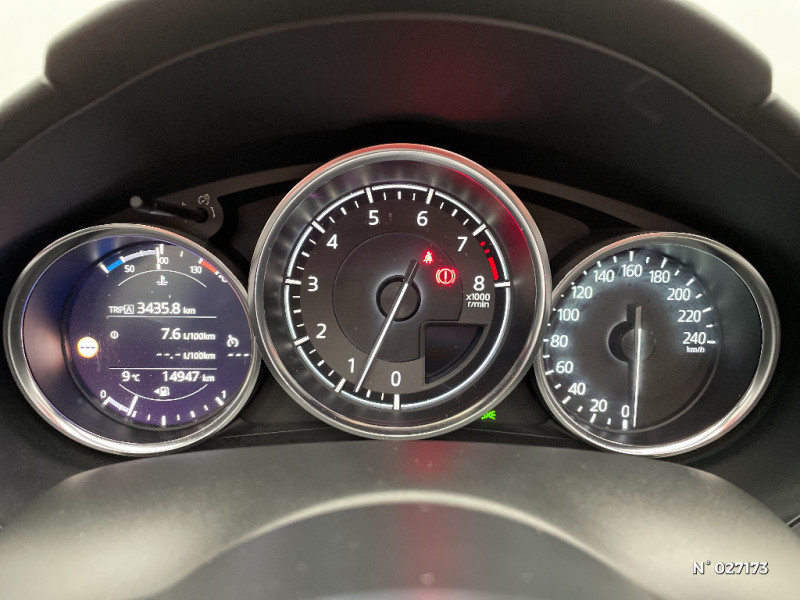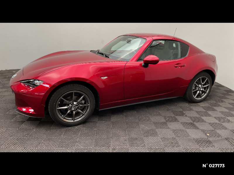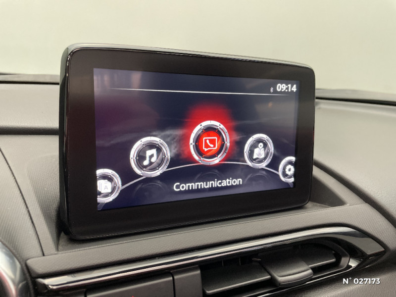 Démarrage par bouton " Start" / Essuie-glace AV automatique à détecteur de pluie / Avertisseur de changement de file (LDWS) / Phares AV à LED / Garnitures supérieures de portes couleur carrosserie / Poignées de portes intérieures couleur "argent brillant" / Ouverture/fermeture des portes à télécommande / Siège conducteur avec réglage manuel de la profondeur / Volant gainé de cuir avec branches couleur "argent brillant" / Prise AUX et 2 ports USB / Revêtement de couvercle de console centrale cuir vinyle noir / Siéges cuir noir avec surpiqures rouges / Climatisation automatique avec entourages de commandes couleur "argent brillant" / Entourage d'aérateurs couleur "Argent brillant" / Système d'antiblocage des roues au freinage (ABS) / Système d'alerte du conducteur (DAA) / Capot actif (protection des piètons) / Revêtement d'arceau couleur carrosserie / Bouton d'ouverture/fermeture du toit électrique / Système de surveillance des angles morts (BSM) et reconnaissance active d'obstacles mobiles en marche AR (RCTA) / Aide au freinage intelligent en mode urbain AV et AR (SCBS) / Jantes alliage 16" "Bright Dark" / Pommeau de levier de vitesses et levier de frein à main gainés de cuir / Ouverture/fermeture intelligente des portes / Poignées de portes extérieures couleur carrosserie / Siège AV avec réglage manuel de la longueur et inclinaison / Fonction "Coming / Leaving home" / Système de coupure et redémarrage automatique du moteur à l'arrêt i-Stop / Seuils de portes plastique avec insert alu / Décoration inférieure de tableau de bord cuir vinyle noir avec surpiqures grise (coté passager) / Garnitures centrales de portes cuir vinyle noir avec surpiqures grises / Pare-soleil côtés conducteur et passager, avec miroir de courtoisie et range-ticket / Système MZD Connect avec écran couleur 7" et interface à commandes multiples HMI / Porte-gobelets / Rétroviseurs extérieurs couleur carrosserie / Rétroviseur intérieur photochromatique / Système de signalisation d'arrêt d'urgence (ESS)