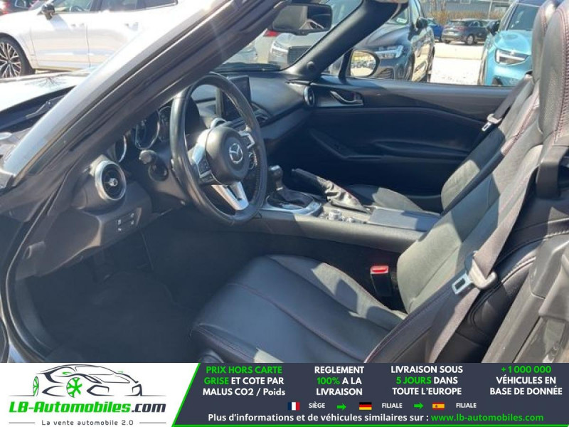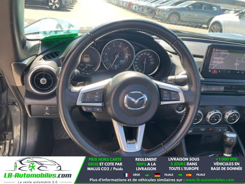 Référence : 1207544 Vos Avantages chez LB-AUTOMOBILES.com / Prix affiché TTC Livré hors carte grise / Livraison sous 10 jours dans toute la France hors 31 / Pas d?avance de frais paiement du véhicule 100% à la livraison par virement. Mazda MX-5 RF Neuf remisée, Mazda MX-5 RF Occasion Toulouse Beaupuy 31850, Mazda MX-5 RF Véhicule sorti de réseau collaborateur, Mazda MX-5 RF import, Mazda MX-5 RF importateur, Mazda MX-5 RF Livraison possible dans toute la France sous 5 jours, Mazda MX-5 RF, Mazda MX-5 RF Location Option Achat, Mazda MX-5 RF LLD, Mazda MX-5 RF Longue Durée, Mazda MX-5 RF TVA récupérable. Possibilité d'extension de garantie 12, 24,36 mois, Pour tout autres voitures import neufs ou occasions collaborateur fortement remisée, Mandataire Audi, Mandataire BMW, Mandataire Volkswagen, Mandataire Mercedes, Mandataire Peugeot Espagne, Mandataire Renault Espagne, Porsche import, Mandataire Citroën Espagne, Mandataire Seat Espagne, n'hésitez pas à nous contacter. « Sous réserve de vente préalable et erreur de saisie » Principaux équipements : - ABS - Accoudoir - Antidémarrage - Assistance de démarrage en côte - Assistant d'angle mort - Assistant feux de route - Avertisseur de franchissement de ligne - Bluetooth - Boîte de vitesses robotisée - Capteur de lumière - Capteur de pluie - Carnet d'entretien - Commande vocale - Contrôle de la pression des pneus - Direction assistée - Éclairage adaptatif de virage - Éclairage route non éblouissant - Écran tactile - ESP - Fermeture centralisée - Feux de jour LED - GPS - Isofix - Jantes alliage - Kit de réparation d'urgence des pneus - Kit mains libres - Ordinateur de bord - Phare antibrouillard - Phares LED - Pneus été - Port USB - Propulsion - Radio DAB - Régulateur de vitesse - Rétroviseur extérieur électrique - Rétroviseur intérieur anti-éblouissement automatique - Sièges chauffants - Sièges sport - Suspension sport - Système antipatinage - Système de limitation de la vitesse - Système de sonorisation - Système Stop & Start - Tuner/radio - Véhicule non-fumeur - Verrouillage centralisé sans clé - Vitres électriques - Volant en cuir - Volant multifonction - WLAN / point d'accès Wi-Fi