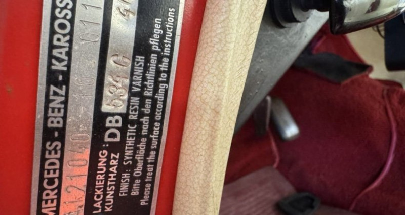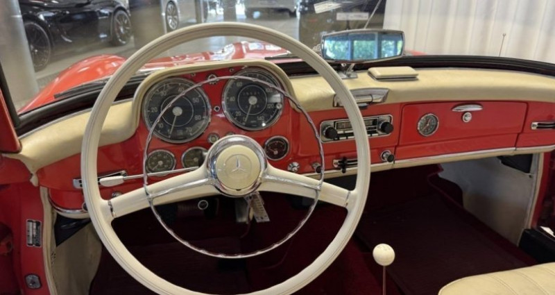 EQUIPEMENTS ================== - Un cabriolet d?exception - Véritable icône des années 60 - Alliant élégance intemporelle et plaisir de conduite. Importée des États-Unis en 2021 - cette 190 SL a bénéficié d?une restauration soignée et se présente aujourd?hui dans un très bel état de fonctionnement et de présentation. ? Année de mise en circulation : 1962 ? Modèle : 190 SL Cabriolet ? Moteur : 4 cylindres en ligne 1.9 L ? 105 ch ? - belle brillance ? Sellerie : Cuir beige + moquettes - bon état ? Capote : Beige + couvre-capote (état neuf) ? Kilométrage compteur : 5 219 miles ? Poids : 1 140 kg ? Places : 2 ? Carte grise : Collection ? Équipements et options : Feux de recul Chauffage Lave-glace Montre Kientzlé sur couvercle boîte à - sans trace d?oxydation apparente Chromes et vitrages en bon état Pont arrière hypoïde articulé et suspendu Freins hydrauliques assistés + 4 tambours ventilés Suspension à 4 roues indépendantes Pneumatiques BF Goodrich Silvertown (P 185/70 R13 85S) ? - parfaitement entretenue - bénéficiant d?une restauration réussie - dans un état de fonctionnement remarquable. Véhicule rare et recherché - idéal pour collectionneurs passionnés ou investissement patrimonial. ?? Véhicule visible sur rendez-vous. ?? FIRST AUTOMOBILE ? Spécialiste des automobiles de prestige et de collection.