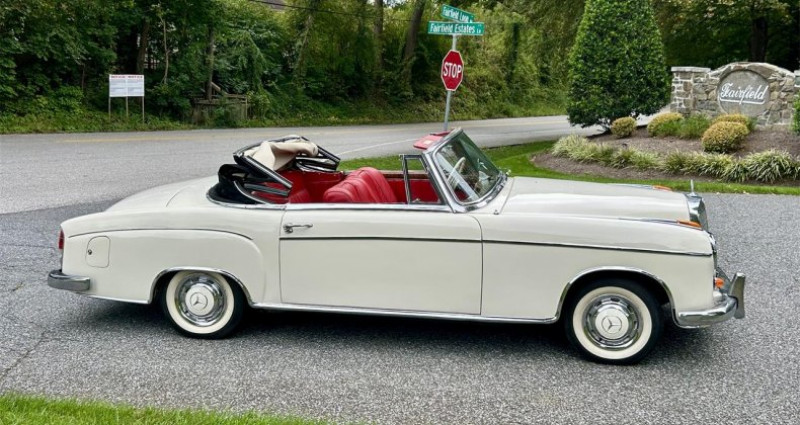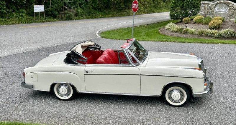 - Marque : Mercedes-Benz - Modèle : W128 220 SE - Année de production : 1960 - Type de carrosserie : Cabriolet - Moteur : 6 cylindres, 2.2 litres - Injection : Intake manifold - Production : 1112 unités - État général : Bon état, avec un petit déchirure dans le matériau du toit et un morceau de la bande de bordure arrière détaché - Titre : Titre Maryland (bien que le VIN indique 1960, le véhicule est titré comme 1959) - Localisation : Crownsville, MD, États-Unis. Provenance : Maryland, USA. Disponibilité : environ 7 semaines, clés en main. 81 500 € tout compris (import, taxes, procédure d'immatriculation). Annonce publiée le 03/12/2025