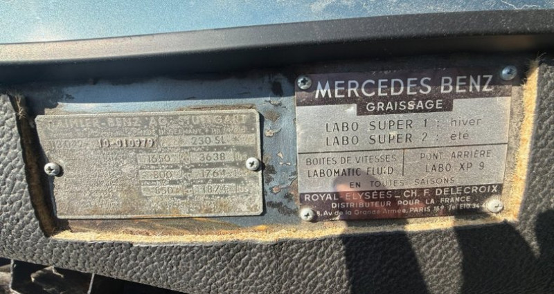 Belle Mercedes 230 SL d'origine française dans sa teinte d'origine Mittelblau (396G). Restauration mécanique et esthétique effectuée il y a trois ans. Son moteur, son capot, ses boiseries et son intérieur sont d'origine. Pas de corrosion, voiture saine. Boite mécanique, capote récente et hard top, direction assistée et troisième siège. Dans le cadre d'une évolution de ma collection, cette Pagode est vendue 49900 euros pour un amateur averti. Je privilégierai un échange simple et une décision rapide. Merci de me contacter si réel intérêt. Visible près de Fontainebleau chez Hervé Chauvin Collection