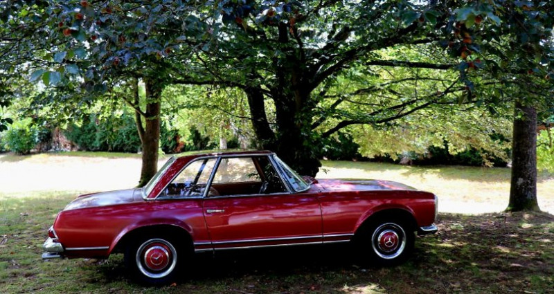 SARL EQUIPAUTO.63 Spécialiste véhicules de collection depuis 23 ans vous propose cette superbe et rare . MERCEDES 250 SL PAGODE CALIFORNIA du 01 juin 1967 avec 29800 km Restauration complète moteur / freins / amortisseurs/ trains roulants / faisceaux électriques/ échappement...etc chez le SPECIALISTE MERCEDES PAUL BRACQ HERITAGE en 2019 et 2022 à 27492 km ( factures) 30200.00 euros DOSSIER EXPERTISE chez CLASSIC EXPERT avec M BRACQ du véhicule avec dossier complet en 2019 Dossier Histovec du véhicule disponible sans problèmes Véhicule de Famille provenant d'un HERITAGE ( 3 propriétaires de la même Famille ) Contrôle technique valide et conforme Dossier Mercedes-Benz France ( certificat d'identification de la voiture ) le 04 juin 2020 RÉPONSE UNIQUEMENT PAR TÉLÉPHONE Dossier photos complet sur notre site EQUIPAUTO.63. COM Reprise de votre véhicule possible si entretien exemplaire . Merci de votre compréhension SARL EQUIPAUTO.63 depuis 23 ans M GOUTTEBARGE jean pierre Modèle emblématique de Mercedes-Benz, la Pagode est un cabriolet à toit rigide amovible devenu célèbre pour son design élégant et sa qualité de construction. Elle est aujourd’hui très appréciée des amateurs de voitures de collection et des passionnés d’automobile. Nous allons voir à travers cet article l’histoire de cette fascinante automobile. Présentée au public pour la première fois en 1963 lors du Salon de l’Automobile de Francfort, la Mercedes Pagode, du nom de code interne W113, remplace la précédente génération de cabriolets Mercedes, la 190 SL W121. Elle était appelée « Pagode » en référence à la forme distinctive de son toit rigide amovible, qui présente une courbure similaire à celle des toits de pagodes asiatiques. La Pagode a été produite pendant 8 ans, de 1963 à 1971, avec une production totale d’environ 49 000 exemplaires. Elle était disponible en trois versions, la 230 SL, 250 SL et la 280 SL ; 230 étant pour la cylindrée de 2,3L et SL signifiant « Sport Leicht », sport léger. La voiture a été conçue et dessinée par le designer français Paul Bracq, connu pour son travail chez la marque Mercedes-Benz, où il a pu concevoir plusieurs modèles célèbres. Considéré comme l’un des designers les plus importants de l’histoire de la marque, son travail a eu un impact majeur dans l’industrie de l’automobile. Elle fut créée par Paul Bracq, l'un des plus grands carrossiers de l'histoire automobile . Son nom, « Pagode », provient de la forme de son toit rigide, qui évoque les toits des pagodes asiatiques traditionnelles. Derrière cette élégante carrosserie se cachait un ensemble de technologies de pointe, et ZF y tenait une place de choix.14 nov. 2023