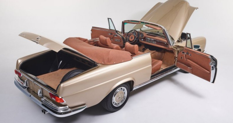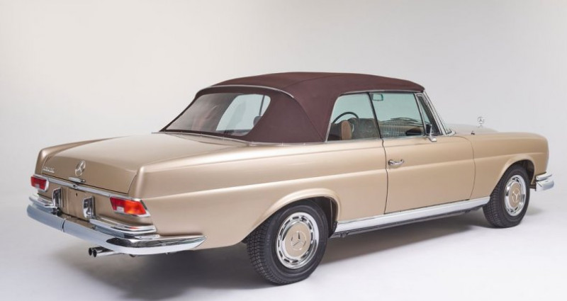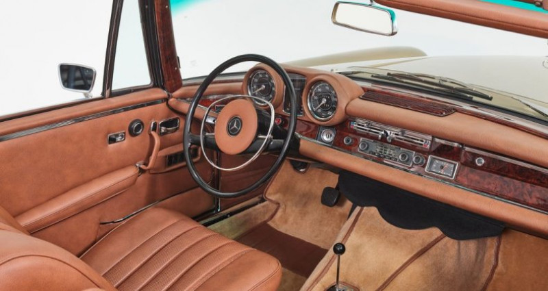 Découvrez le mariage parfait entre luxe, sophistication et plaisir de conduite avec cette Mercedes 280 SE Cabriolet de 1969. Ce magnifique cabriolet incarne l’élégance intemporelle et le savoir-faire de Mercedes-Benz, et il est proposé dans une combinaison de couleurs exquise : Tunis Beige pour l’extérieur et un intérieur en cuir marron chaleureux, vous offrant une expérience de conduite empreinte de confort et de raffinement. Description du véhicule : Extérieur : Ce cabriolet Mercedes-Benz 280 SE de 1969 arbore une teinte extérieure rare et élégante, le Tunis Beige. Cette couleur douce et délicate met en valeur les lignes classiques de la carrosserie W111, rappelant le charme intemporel des voitures de cette époque. Le cabriolet est synonyme de liberté, permettant aux passagers de profiter du soleil et du vent tout en roulant avec style. Intérieur : Ouvrez la porte et laissez-vous séduire par l’intérieur en cuir marron de première qualité. L’attention portée aux détails est omniprésente, avec des finitions en bois noble et une ambiance raffinée qui reflète le savoir-faire artisanal de Mercedes-Benz. Les sièges en cuir enveloppants assurent un confort optimal, invitant les occupants à voyager avec élégance. État et entretien : Cette Mercedes 280 SE Cabriolet de 1969 a été soigneusement restaurée d’origine par les équipes expérimentées de Top Classics. Elle affiche donc un état neuf tant sur le plan esthétique de mécanique. En tant que client de Top Classics, vous bénéficiez également d’une garantie de 24 mois, offrant une tranquillité d’esprit supplémentaire pour votre investissement. Vous pourrez ainsi profiter de cette Mercedes 280 SE (W111) en toute sérénité. Ne manquez pas l’opportunité de posséder cette Mercedes 280 SE (W111) de 1969 entièrement restaurée d’origine. Contactez-nous dès aujourd’hui chez Top Classics pour obtenir plus d’informations sur ce véhicule exceptionnel. Notre équipe expérimentée se fera un plaisir de répondre à toutes vos questions et de vous aider à réaliser votre passion automobile. Livraison dans toute l’Europe.