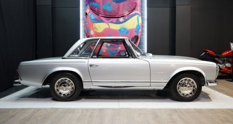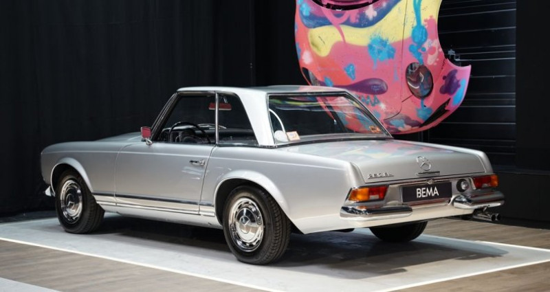 BEMA VITESSE vous propose aujourd’hui cette superbe Mercedes-Benz 280 SL “Pagode” de 1969, présentée dans l’élégante teinte Gris Argent métallisé, assortie à un intérieur gris raffiné et des moquettes noires chinées de gris. Conçue par le légendaire Paul Bracq, la 280 SL Pagode incarne le raffinement absolu de la marque à l’étoile : un design intemporel, une qualité de fabrication exemplaire et une élégance rare qui traversent les décennies sans prendre une ride. Cette Pagode n’a connu que trois propriétaires depuis sa livraison d’origine, et a bénéficié d’une restauration complète et méticuleuse, réalisée dans le strict respect de son authenticité. Carrosserie, sellerie, mécanique et détails intérieurs ont fait l’objet d’une remise à neuf complète, appuyée par un dossier photo détaillé retraçant chaque étape du travail effectué. Une expertise indépendante réalisée en 2021 confirme l’excellent état général du véhicule et la qualité des interventions réalisées. L’auto a seulement parcouru 2700 km depuis la restauration. Une icône de collection, prête à reprendre la route ou à rejoindre une collection prestigieuse. CONFIGURATION : Extérieur : Gris Argent métallisé Intérieur : Gris avec moquettes noires tachetées de gris - CARACTÉRISTIQUES PRINCIPALES : *Restauration complète carrosserie et mécanique *Sellerie et moquettes neuves *Moteur entièrement ré-étanchéifié *Allumage et durites de carburant remplacés *Freinage intégralement révisé *Expertise indépendante (2021) *Hard-top - HISTORIQUE : Cette Pagode n’a connu que trois propriétaires depuis sa mise en circulation et a toujours été traitée avec le plus grand soin. Elle a bénéficié d’une restauration complète et méticuleuse, menée dans le respect de l’authenticité du modèle. La voiture a été intégralement démontée et sablée, garantissant une remise à neuf en profondeur sur la carrosserie et les éléments mécaniques. Une expertise indépendante a été réalisée en 2021 à la demande du propriétaire, confirmant son excellent état général et la qualité des travaux effectués. Nous disposons également des photos prises lors de la restauration, témoignant de l’ampleur et du soin apporté à cette transformation. - FINANCEMENTS EN LOA | CRÉDIT BALLON | CRÉDIT CLASSIQUE Véhicule disponible en financement à partir de 1350€/mois. Pour toutes reprises, faire la demande par mail. Des erreurs peuvent se glisser dans l'annonce, merci de vous renseigner auprès d'un de nos commerciaux. Horaires d'ouverture: Lundi - Samedi de 10:00 à 19:00 Visites uniquement sur rendez-vous Site sous vidéosurveillance 7/24 En cas d'indisponibilité, merci de nous laisser un message. - Mots-clés : SL, Type E, 911, DB6, 512BB