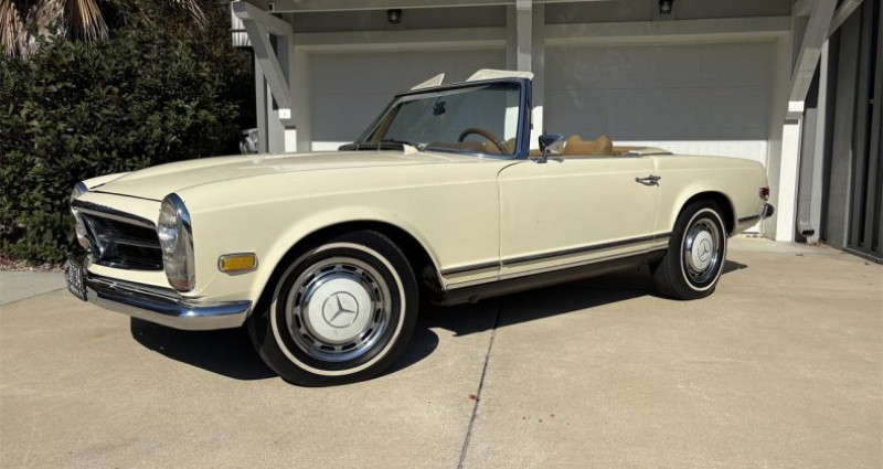 Châssis Mercedes-Benz W113, année modèle 1968, carrosserie 280SL, moteur 6-cylindres de 2, 8L, transmission automatique, 68 455 miles (jauge à carburant peut nécessiter réparation), une répaint dans les années 1970, freins et direction assistés, coffre, capot, ailes, tableau de bord, moteur et transmission d'origine conformes à la fiche technique de la fabrication.. Provenance : South Carolina, USA. Disponibilité : environ 7 semaines, clés en main. 63 500 € tout compris (import, taxes, procédure d'immatriculation). Annonce publiée le 01/12/2025