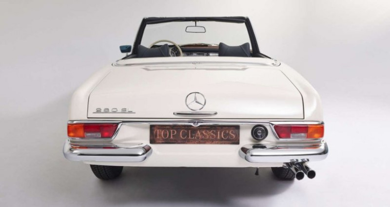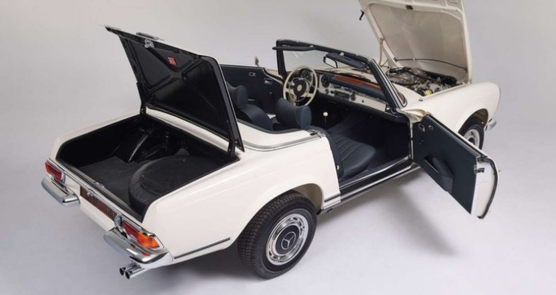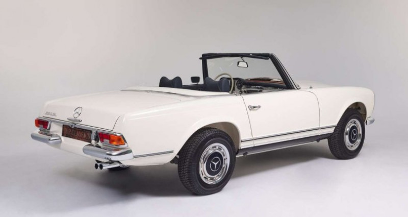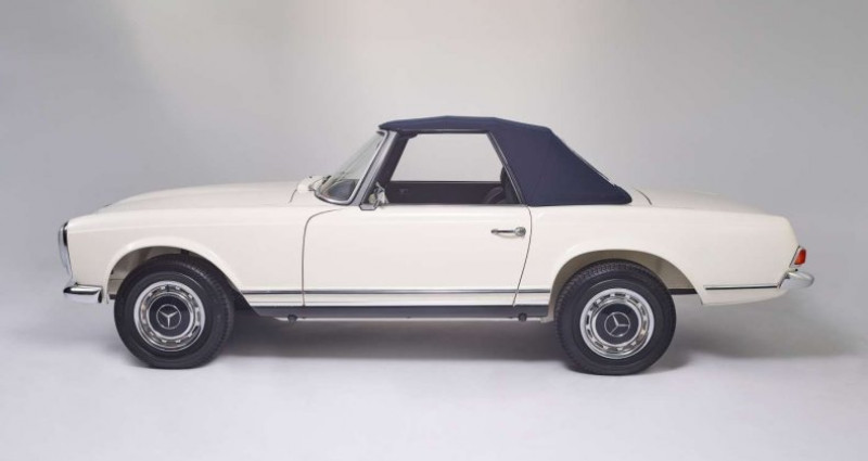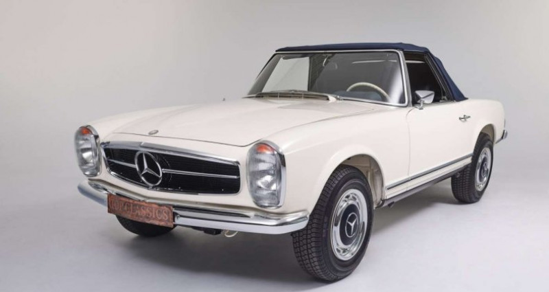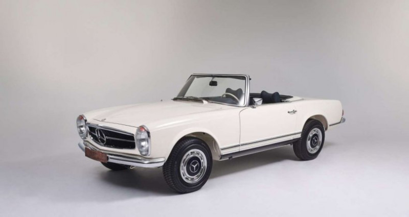 0 Nous vous proposons ce Mercedes 280 SL couleur blanc Ce modèle est en boite mécanique, 4 vitesses. Cette pagode a fait l’objet d’une restauration complète dans nos ateliers. Tout a été revu de A à Z pour garantir un maximum de fiabilité. L’intérieur,… > complètement neuf, a été refait en cuir bleu aux formes et motifs d’origine. Nos restaurations, entièrement effectuées dans nos ateliers, sont complètes : carrosserie, châssis, moteur, pompe à injection , boite, pont, faisceau, intérieur, instruments de bord, chrome … Le soft top totalement neuf est de couleur bleu. Voir toutes les annonces du modèle Mercedes-Benz SL
