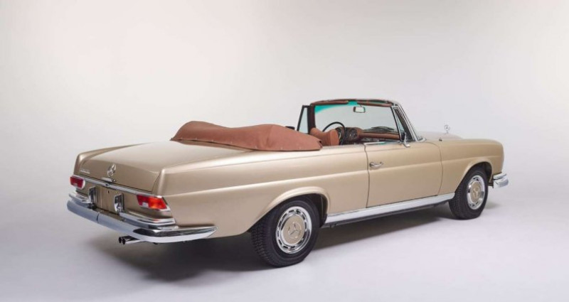 1969 Cabriolet / roadster Découvrez le mariage parfait entre luxe, sophistication et plaisir de conduite avec cette Mercedes 280 SE Cabriolet de 1969. Ce magnifique cabriolet incarne l’élégance intemporelle et le savoir-faire de Mercedes-Benz, et il est proposé dans une combinaison de couleurs exquise : Tunis Beige pour l’extérieur et un intérieur en cuir marron chaleureux, vous offrant une expérience de conduite empreinte de confort et de raffinement. Description du véhicule… > : Extérieur : Ce cabriolet Mercedes-Benz 280 SE de 1969 arbore une teinte extérieure rare et élégante, le Tunis Beige. Cette couleur douce et délicate met en valeur les lignes classiques de la carrosserie W111, rappelant le charme intemporel des voitures de cette époque. Le cabriolet est synonyme de liberté, permettant aux passagers de profiter du soleil et du vent tout en roulant avec style. Intérieur : Ouvrez la porte et laissez-vous séduire par l’intérieur en cuir marron de première qualité. L’attention portée aux détails est omniprésente, avec des finitions en bois noble et une ambiance raffinée qui reflète le savoir-faire artisanal de Mercedes-Benz. Les sièges en cuir enveloppants assurent un confort optimal, invitant les occupants à voyager avec élégance. Performances : Sous le capot de cette Mercedes 280 SE Cabriolet, réside un moteur performant qui allie puissance et douceur. Le moteur six cylindres en ligne assure une conduite souple et agréable, tandis que la réputation de Mercedes-Benz en matière d’ingénierie de précision garantit une expérience de conduite exceptionnelle, aussi bien sur les routes sinueuses que sur les autoroutes. État et entretien : Cette Mercedes 280 SE Cabriolet de 1969 a été soigneusement restaurée d’origine par les équipes expérimentées de Top Classics. Elle affiche donc un état neuf tant sur le plan esthétique de mécanique En tant que client de Top Classics, vous bénéficiez également d’une garantie de 24 mois, offrant une tranquillité d’esprit supplémentaire pour votre investissement. Vous pourrez ainsi profiter de cette Mercedes 280 SE (W111) en toute sérénité. Ne manquez pas l’opportunité de posséder cette Mercedes 280 SE (W111) de 1969 entièrement restaurée d’origine. Contactez-nous dès aujourd’hui chez Top Classics pour obtenir plus d’informations sur ce véhicule exceptionnel. Notre équipe expérimentée se fera un plaisir de répondre à toutes vos questions et de vous aider à réaliser votre passion automobile. Renseignements sur demande par mail ou téléphone Voir toutes les annonces du modèle Mercedes-Benz SE