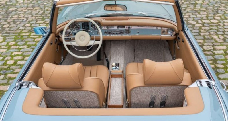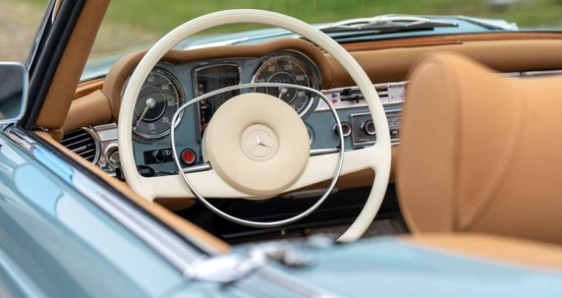 1970 Cabriolet / roadster TOP CLASSICS, spécialiste MERCEDES CLASSIC vous propose parmi sa collection de Mercedes 280 SL. Ce modèle est en boite automatique standard, 4 vitesses. Cette pagode a fait l’objet d’une restauration complète dans nos ateliers. Tout a été revu de A à Z pour garantir un maximum de… > fiabilité. L’intérieur, complètement neuf, a été refait en cuir nature aux formes et motifs d’origine. Nos restaurations, entièrement effectuées dans nos ateliers, sont complètes : carrosserie, châssis, moteur, pompe à injection , boite, pont, faisceau, intérieur, instruments de bord, chrome … Le soft top totalement neuf est de couleur noire. Pour plus de photos et de détails sur nos projets de restauration, consultez notre site internet « topclassics » Découvrez l’expérience Top Classics, votre voiture dans un état neuf, garantie 2 ans, immatriculée en carte grise collection et livrée à domicile sur toute la France métropolitaine. Voir toutes les annonces du modèle Mercedes-Benz SL