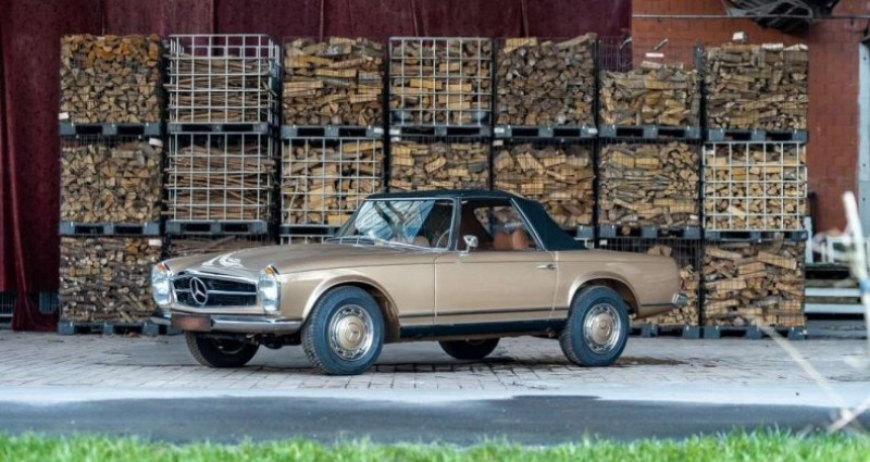 1969 Cabriolet / roadster TOP CLASSICS, spécialiste MERCEDES CLASSIC, vous propose parmi sa collection de 280 SL ce magnifique modèle de 1969, or « DB 467 sand beige metallic », intérieur « old cognac », complétement restauré. Ce modèle est en boite automatique standard, 4 vitesses. Cette pagode a fait l’objet d’une restauration complète dans nos ateliers. Tout a été revu de A à Z pour… > garantir un maximum de fiabilité. L’intérieur, complètement neuf, a été refait en cuir « old cognac » aux formes et motifs d’origine. Nos restaurations, entièrement effectuées dans nos ateliers, sont complètes : carrosserie, châssis, moteur, pompe à injection , boite, pont, faisceau, intérieur, instruments de bord, chrome … Le soft top totalement neuf est de couleur noire. Pour plus de photos et de détails sur nos projets de restauration, consultez notre site internet « topclassics » Découvrez l’expérience Top Classics, votre voiture dans un état neuf, garantie 2 ans, immatriculée en carte grise collection et livrée à domicile sur toute la France métropolitaine. Voir toutes les annonces du modèle Mercedes-Benz SL
