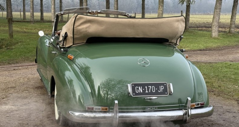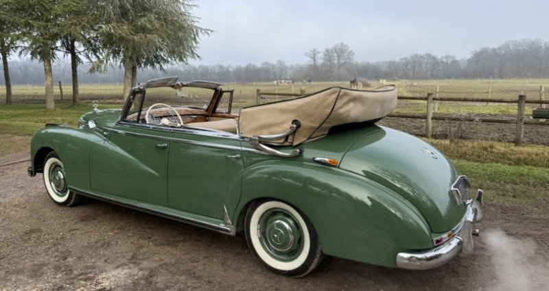 Cette splendide Mercedes 300 B Adenauer cabriolet a été livrée neuve à son premier propriétaire le 23 juin 1955 aux Etats-Unis et importée par la suite en Europe. Un épais dossier retrace la vie de la voiture avec différents détails dont ceux de sa restauration effectuée de 2013 à 2014. La peinture a été refaite en conservant la teinte d'origine ainsi que la mécanique, la suspension et la sellerie. Sa condition actuelle est exceptionnelle et le fonctionnement général excellent. Construite à 57 exemplaires, elle a sa place au sein d'une collection d'autos rares et recherchées. Ce modèle est réservé à un véritable connaisseur, collectionneur de beaux objets rares atypiques en parfaite condition. Visible près de Fontainebleau chez Hervé Chauvin Collection Plus d'informations sur notre site.