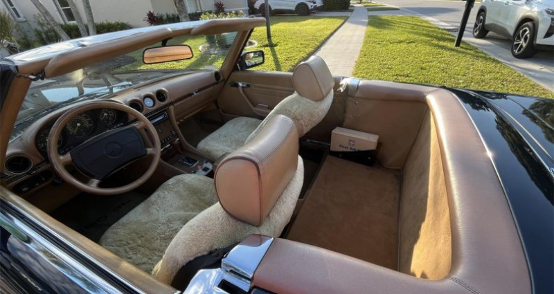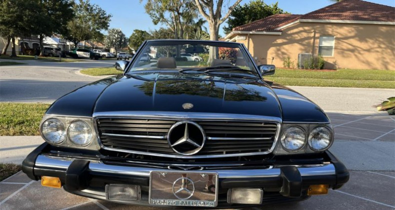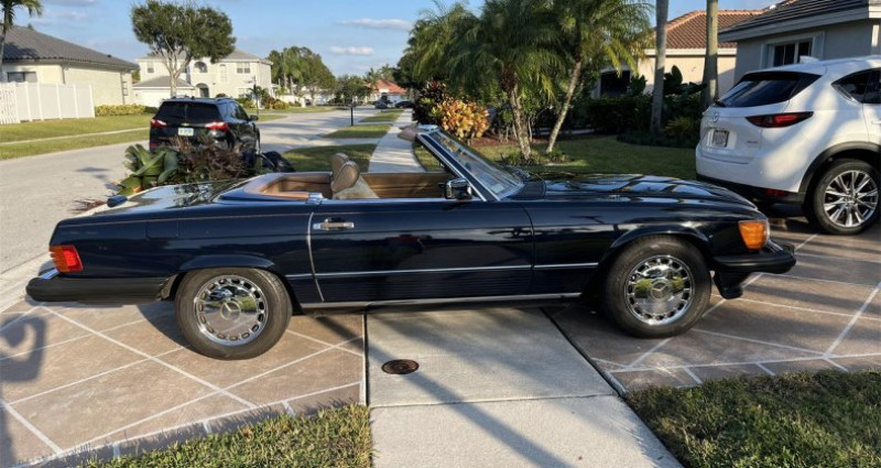 Cet automobile de collection possède une peinture originale de bleu sombre légèrement marquée. L'intérieur est en cuir camel et usé, tandis que le couvercle moteur est du même bleu plus clair que la teinte de la capote originale, qui présente une petite déchirure à droite sur le bord de la coussinette. La roue avant droite porte un piquet, sur des roues 15 trous d'accessoires ajoutées par un concessionnaire. La vitre originale, les fenêtres électriques et les verrouillages à clé fonctionnent pour les portes et le coffre. L'air conditionné, le contrôle de vitesse et l'antenne de radio fonctionnent en bon état, il y a un audio Kenwood am/fm et il est prêt à diffuser vos chansons préférées des années 80 ! Les pneus ont été changés environ 1900 milles il y a, et la mécanique a été révisée, avec remplacement du corps de l'accéléromètre et des pneus à Star Motors à Kansas City. Le propriétaire précédent a remplacé la chaîne de distribution à environ 175 000 miles, ce qui est supposé avoir été fait par Star Motors également. Après une révision et un redémarrage, la voiture a été conduite en Floride sans aucune pannes, il n'y a pas eu le moindre hiccup, elle a purrée tout le chemin. La transmission a été reconstruite avec des pièces MB, les freins, les disques de freins, les goulots souples, le radiateur, la serpentine et les montants moteur et transmission ont été remplacés, il y a environ 400 milles. La voiture a été conservée dans un garage, sous une protection, pour les 13 dernières années, et a vu peu ou pas de pluie. Elle n'a été conduite qu'en jour de soleil et en capot ouvert, sans trou de ruste, à l'exception des petites marques mentionnées, la carrosserie est en excellent état, elle est prête à être aimée comme nous l'avons fait, garantie de faire sourire chaque fois que vous l'emmenez derrière le volant.. Provenance : Florida, USA. Disponibilité : 7 semaines, clés en main. 25 000 € tout compris (import, taxes, procédure d'immatriculation). Annonce publiée le 18/11/2025
