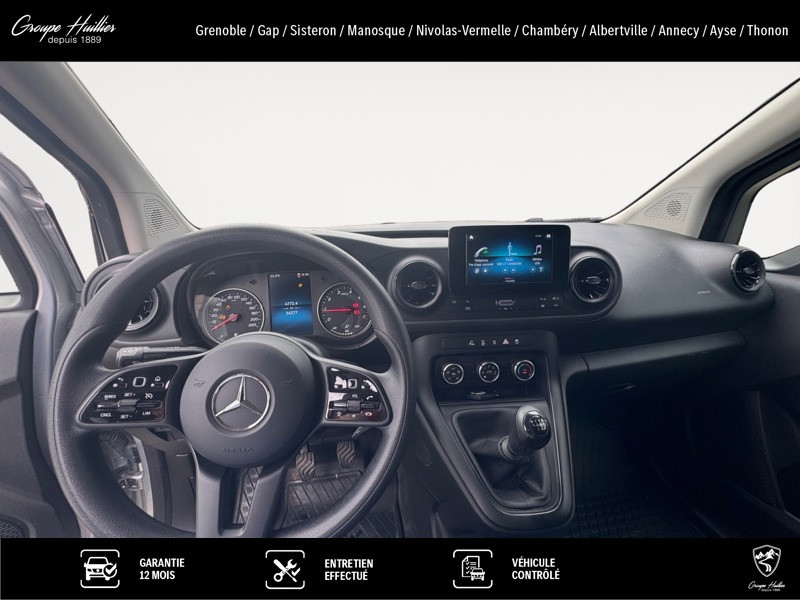 113 Fourgon PRO Standard - 19 200 HT, essence, gris foncé, 26/01/2022, Essence, Roue de secours, Airbag conducteur et passager, Pack Intégration pour smartphone, Filtre à particules, Phares antibrouillard à LED, Empattement 3 081 mm, ATTENTION ASSIST, Jantes acier 16, Tissu Caluma noir, Fourgon, Moteur M 200.73 13 LA 96 kW (131 ch), Type de garnitures de sièges « tissu », Panneau latéral gauche, Boîte de vitesses mécanique à 6 rapports, Eclairage de l habitacle à LED, Eclairage compartiment de chargement à LED, Langue du combiné d instruments : français, Capteur de luminosité et détecteur de pluie, Volant réglable en hauteur et en inclinaison, Caméra de recul, Sans miroir de courtoisie dans le pare-soleil conducteur, Poignées de porte ds couleur du véhicule, Volant multifonctions, Prééquipement pour offres digitales, Lève-vitre AV él. avec fonction confort, Pneus toutes saisons, Zone climatique 2 (tempéré), Climatiseur, Sans rétroviseur intérieur autobus/autocar, Système de freinage avec ABS et ASR, Siège passager avant double avec dossier fixe, Porte coulissante à droite, Vitres teintées, Variante de poids 1.973 kg, Rétro. ext. rabattable et réglable électriquement, Système multimédia MBUX avec DAB, Refrigerant R-1234yf, Aide au démarrage en côte, Pare-chocs peints, Freinde stationnement, Assistance en cas de panne, Phares LED hautes performances, Plancher à revêtement en plastique dans le compartiment de chargement, Démarrage via clé de contact, Autoradio numérique (DAB), PRO, Protection de la glissiere de porte coulissante,couleur carrosserie, Porte arrière deux battants 180 degres sans fenetre, Aide au stationnement arrière, Jantes design 40,6 cm (16 ) à 5 branches doubles, Mercedes-Benz MobiloVan avec carnet de maintenance en ligne et garantie anticorrosion, Pneus sans marque imposée, Planche de bord en plastique noir, Pare-brise athermique, Combiné d instruments avec visuel couleur, Sans prise de charge, TEMPOMAT