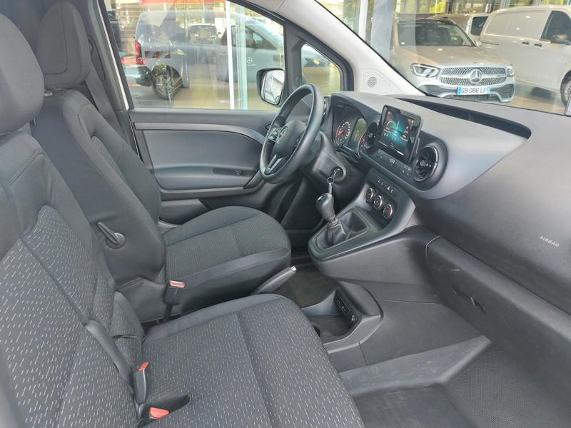 110 CDI Fourgon PRO Standard, diesel, blanc, 24/01/2023, Système multimédia MBUX avec DAB, Banquette passager avant à 2 places, Rétroviseurs extérieurs chauffants à réglage élec., Porte coulissante à droite, Phares antibrouillards halogènes, Aide au démarrage en côte, Eclairage de l habitacle à LED, Plancher à revêtement en plastique dans le compartiment de chargement, Climatiseur, Poignées de porte ds couleur du véhicule, Lève-vitre AV él. avec fonction confort, Porte arrière deux battants 180 degres sans fenetre, Omission Pack Chrome extérieur, Protection de la glissiere de porte coulissante,couleur carrosserie, Phares LED hautes performances, Pack Intégration pour smartphone, Roue de secours, Vitres teintées, Empattement 3 081 mm, Cloison de séparation continue, Jantes acier 16, Autoradio numérique (DAB), Volant revêtu de mousse, Boîte de vitesses mécanique à 6 rapports, Jantes design 40,6 cm (16 ) à 5 branches doubles, TEMPOMAT, Moteur OM 608.9 DE 15 LA 70 KW (95 ch), Variante de poids 2.027 kg, Type de garnitures de sièges « tissu », Mercedes-Benz MobiloVan avec carnet de maintenance en ligne et garantie anticorrosion, Version standard, Aide au stationnement arrière, Caméra de recul, Volant multifonctions, Tissu Caluma noir, Capteur de luminosité et détecteur de pluie, Protection du soubassement en matière plastique, Sans compartiment de rangement entre sieges AV