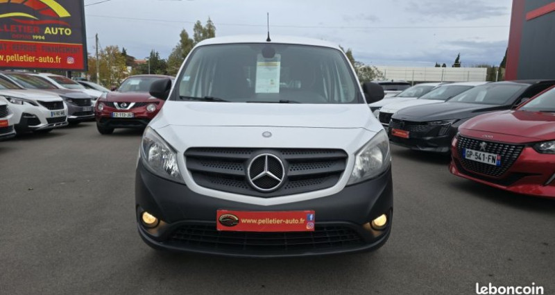 Mercedes Citan FGN 111 CDI EXTRA LONG CA 5 PLACES monospace, blanc, 5 cv, 5 portes, première mise en circulation le 27/08/2015, garantie 3 mois. 5 places OPTIONS ET ÉQUIPEMENTS : Audio - Télécommunications : - Prédisposition radio : cablage + antenne - Prééquipement radio avec HP Extérieur : - Eclairage pour conduite de jour - Peinture Blanc Arctique - Pneumatiques été - Porte AR à 2 battants 180° sans fenetre - Accélérateur de freinage d?urgence - porte latérale Intérieur : - Boite à gants - Indicateur du point de passage des rapports - Siège conducteur - Vitrage athermique intégral - chauffage stationnaire - fermeture centralisée - filtre à pollen - ordinateur de bord - vitres électriques Pack : - ASR - Baguettes latérales - Boîte de vitesses mécaniques 5 rapports - Cache moyeu - Cache moyeux - Plafonniers dans compart. charge/passagers - Pneus 195/65 R15 - Pneus 195/65 R15 renforcés - Porte coulissante droite - Portes AR à double battants (ouverture 180 degrés) - Rangement au-dessus du pavillon - Siège passager - Système de freinage avec ABS - Trousse de premier secours - côté passager AV ouverte - Éclairage espace de chargement / coffre à bagages - ASR - jantes : classiques - nombre de rapports : 6 vitesses Sellerie : - Tissu Lima Noir Spécifique VUL : - Cloison de séparation tôlée - Cloison entière Sécurité : - BAS - Roues de secours - ABS - Aide au demarrage en pente - ESP - airbag conducteur Autres équipements et informations : - Brake Assist - Catégorie de tonnage 2.200 kg - Cloison intérieure complète - EBV - Essuie-lave-glace FATBLADE - Réglage en hauteur de la ceinture de sécurité chauffeur/passager - Classe Crit'air : 2 - Puissance kilowatt : 81 kw - feux de circulation diurne - puissance réelle : 110 ch - émission CO2 : 123 g/km Référence annonce : 118VO010662