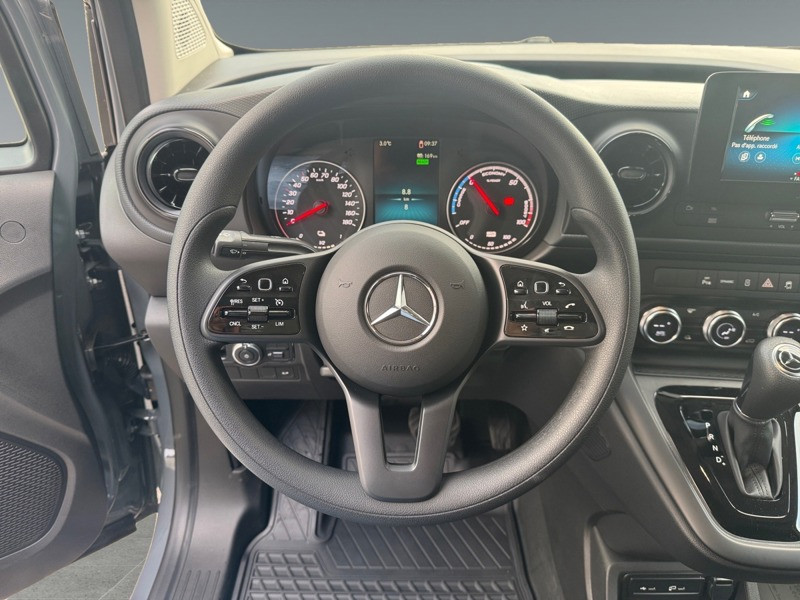 e Fourgon PRO Standard, électrique, gris, 30/04/2025, Catégorie de tonnage 2.240 kg, Banquette passager avant à 2 places, Extra numérique: services à distance et nav., Système multimédia MBUX avec DAB, Porte coulissante à droite, Batterie haute tension (45 kWh), Phares antibrouillards halogènes, Aide au démarrage en côte, Eclairage de l habitacle à LED, Pack de maintenance, Espace de rangement sur la planche de bord, Poignées de porte ds couleur du véhicule, Lève-vitre AV él. avec fonction confort, Mercedes-Benz MobiloVan avec carnet de maintenance en ligne et garantie anticorrosion, Frein de stationnement électrique, Câble de charge (3x32 A, 22 kW) 5m de long, Sans filtre à particules, Rétroviseurs extérieurs chauffants à réglage électrique, Démarrage KEYLESS-GO, Vitres teintées, Jantes design 40,6 cm (16 ) à 5 branches doubles, sans catalyseur ECO 90g, AEJ X3/1, Omission Pack Chrome extérieur, Protection de la glissiere de porte coulissante,couleur carrosserie, Régulateur et limiteur de vitesse TEMPOMAT, sans kit pluie, Phares LED hautes performances, Préclimatisation, Sans filtre à carburant avec purgeur, Capteur de luminosité et détecteur de pluie, Protection du soubassement en matière plastique, Sans compartiment de rangement entre sieges AV, Volant multifonction, Caméra de recul, Sans fonction Stop/Start ECO, Habillage zone chargement jusqu au toit (bois), Type de garnitures de sièges « tissu », Double porte arrière à 180 degrés, Boîte automatique pr propulsion électrique, Prise de force MB 60 2b avec bride, position basse, régime moyen, Version standard, Climatiseur automatique THERMOTRONIC, Aide au stationnement arrière, Cloison de séparation continue, Jantes acier 16, CODE INTERNE AC1A2, Autoradio numérique (DAB), Volant revêtu de mousse, TIREFIT, Pack intégration smartphone, Plancher en bois, Charge AC 22 kW/charge DC 75 kW, Tissu Caluma noir