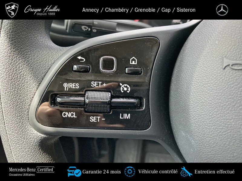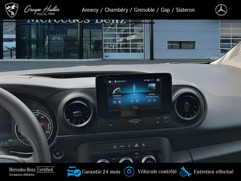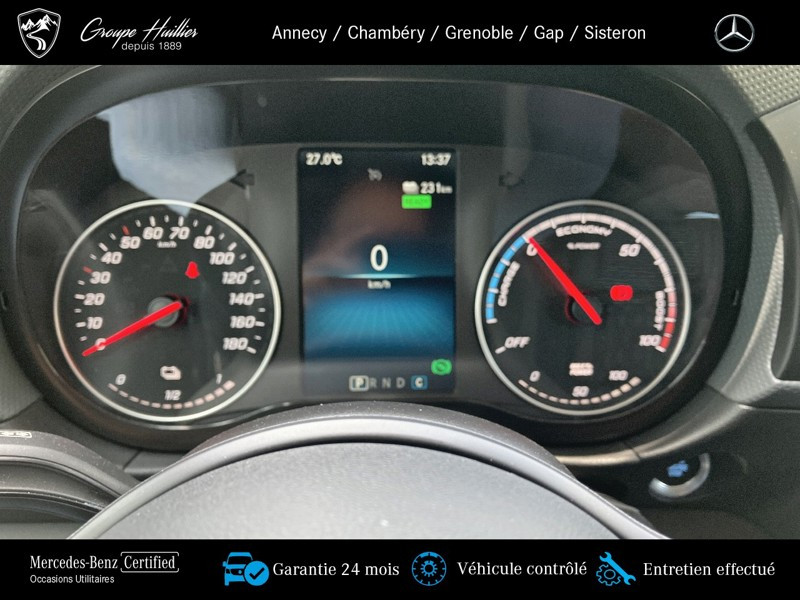 e Fourgon PRO Standard, électrique, blanc, 29/08/2023, Assistance en cas de panne, Frein de stationnement électrique, Aide au démarrage en côte, Combiné d instruments avec visuel couleur, Pare-brise athermique, Plancher à revêtement en plastique dans le compartiment de chargement, Phares LED hautes performances, Mercedes-Benz MobiloVan avec carnet de maintenance en ligne et garantie anticorrosion, Aide au stationnement arrière, Porte arrière deux battants 180 degres sans fenetre, Protection de la glissiere de porte coulissante,couleur carrosserie, Climatisation automatique THERMOTRONIC, PRO, Autoradio numérique (DAB), AEJ X2/1, Catégorie de tonnage 2.240 kg, Pneus sans marque imposée, TEMPOMAT, Zone climatique 2 (tempéré), Lève-vitre AV él. avec fonction confort, Prise de force MB 60 2b avec bride, position basse, régime moyen, Volant multifonctions, Pneus été, Câble de charg. mode 3 (type 2, 3x32 A, 22 kW) 5 m, Système multimédia MBUX avec DAB, Phares antibrouillards halogènes, Porte coulissante à droite, Tissu Caluma noir, Vitres teintées, Jantes acier 16, Rétroviseurs extérieurs chauffants à réglage élec., ATTENTION ASSIST, Empattement 3 081 mm, Boîte automatique pr propulsion électrique, Démarrage KEYLESS-GO, Pack Intégration pour smartphone, Espace de rangement sur la planche de bord, Fourgon, Prééquipement pour Remote et Navigation Services, AEJ X2/2, Banquette passager avant à 2 places, Moteur électrique 90 kW, Cloison de séparation continue, Capteur de luminosité et détecteur de pluie, Volant réglable en hauteur et en inclinaison, Système de freinage avec ABS et ASR, TIREFIT