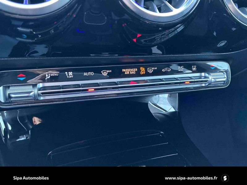ABS (antiblocage de roues) et ASR (antipatinage) / ADAPTIVE BRAKE avec fonction Hold, aide au démarrage en côte, pré-remplissage et séchage des freins par freinage en cas de pluie / Affichage de l'état des ceintures AR (bouclées/non bouclées) sur le combiné d'instruments / Aide au parking active avec PARKTRONIC / Airbags latéraux pour le conducteur et le passager AV (airbags combinés thorax et bassin) / Assistant de stabilisation en cas de vent latéral / Assistant limitation de vitesse / ATTENTION ASSIST: Système de détection de somnolence / Avertisseur sonore pour piétons / Baguettes de ligne de ceinture et entourages de vitres chromés / Bas de caisse dans le ton carrosserie / Boîte de vitesse automatique 8G-DCT / Buses de ventilation noirs avec cerclage chromé / Câble de charge pour boîtier mural et bornes de recharge publiques, 5 m, droit, 11 kW / Câble de charge pour prise secteur, 5 m, droit / Calandre diamant avec pastilles noires et lamelle avec insert chromé / Capot moteur actif pour la protection des piétons / Certification EURO-NCAP / Chargeur embarqué 3,7 kW AC / Ciel de pavillon en tissu noir / Connexion Bluetooth pour téléphone portable / Désactivation automatique de l'airbag passager AV / Direction paramétrique Sport / Double porte-gobelets / DYNAMIC SELECT / DYNAMIC SELECT avec 4 modes de conduite (ECO - sauf boîte mécanique, Confort, Sport et Individual) / Ecran média 10" / Essieu AR à bras combinés / Essuie-glaces avec détecteur de pluie / Feux de stop adaptatifs / Filet de rangement au dos des sièges AV / Fixations iSize pour siège-enfant avec sangle Top Tether aux places extérieures AR / Fonction de démarrage sans clé KEYLESS-GO / Fonctionnalités élargies MBUX / Freinage d'urgence assisté actif / Frein de stationnement électrique avec fonction Start Assist / Frein multicollision / Garniture en Tissu/Similicuir ARTICO Noir / Hayon Easy-Pack à ouverture et fermeture automatiques / Inserts décoratifs façon Carbone / Instrumentation digitale avec écran 7" (18 cm) / Interface USB-C dans le vide-poches et 2 interfaces USB-C sur la console centrale AR / Jantes alliage 45,7 cm (18") multibranches Argent vanadium, pneus 225/45 R18 / Jupe AR avec insert décoratif chromé / Jupe AV avec insert chromé / Kit anti-crevaison TIREFIT / Manuel d'utilisation en français / MBUX système multimedia / Module de communication LTE pour l'utilisation des services Mercedes connect me / Navigation par disque dur / Pack Advantage / Pack Progresive / Pack Rétroviseurs / Pack Standard Europe / Pack Visibilité / Pare-soleil avec miroir de courtoisie éclairé / Pavé tactile TOUCHPAD / Prééquipement pour les services à distance et de navigation / Prééquipement pour Live Traffic Information / Prééquipement pour service de partage de clé / Préinstallation pour radio digitale / Prise 12 V dans le vide-poches de la console centrale / Prise de recharge / Progressive Line / Projecteurs LED hautes performances / Radio digitale / Régulateur de vitesse TEMPOMAT avec limiteur de vitesse / Services à distance et pour la charge Plus / Sièges AV Confort / Sièges AV confort avec réglages de la hauteur et de l'approche du siège, de l'inclinaison du dossier, de l'inclinaison de l'assise, de la profondeur de l'assise (siège conducteur uniquement) / Sorties d'echappement chromées (non fonctionnelles) / Système d'appel d'urgence Mercedes-Benz / Système de commande vocale et assistant personnel activable grâce à "Hey Mercedes" / Tapis de sol en velours / Train de roulement confort / Trousse de premiers secours et triangle de signalisation / Volant sport multifonction en cuir avec boutons tactiles Touch-Control, éléments chromés et surpiqûres noires
